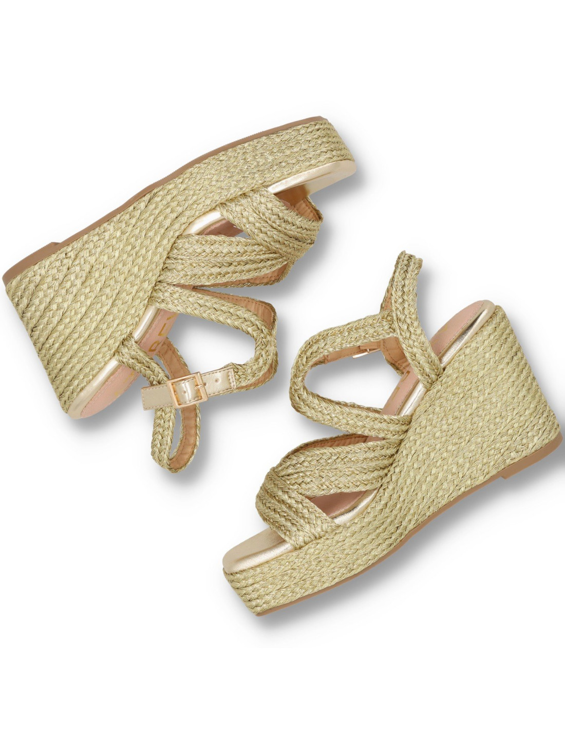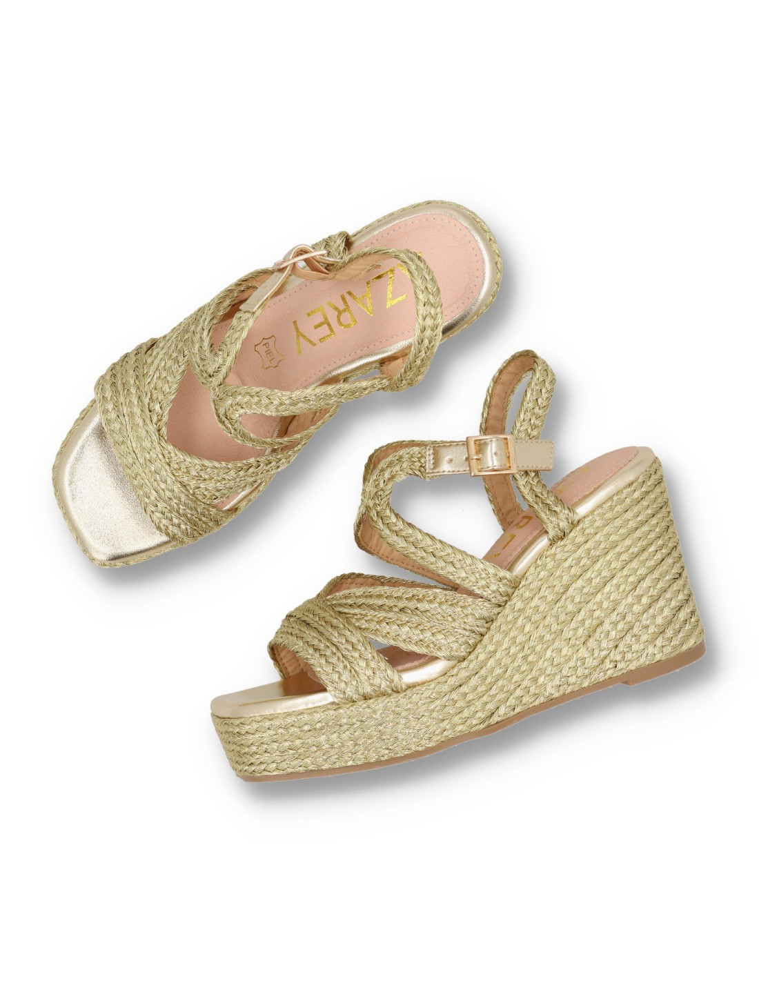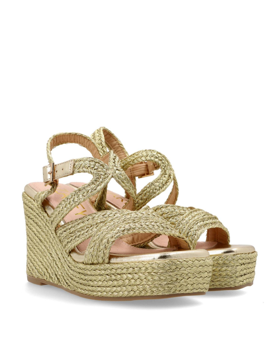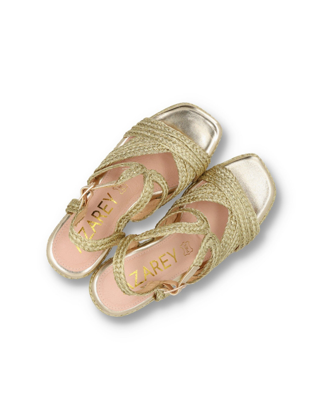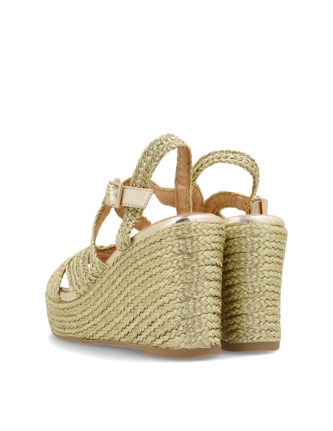 Alpargtas para mujer 494J579 de Azarey. De rafía en distintos tonos, planta interior de piel acolchada para una pisada comoda y confortable. Cuña de unos 10cm y plataforma delantera de unos 3cm. Talón con hebilla ajustable.