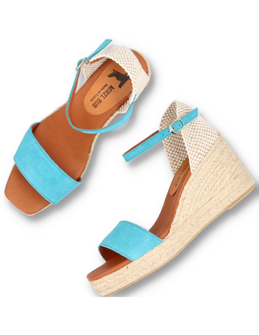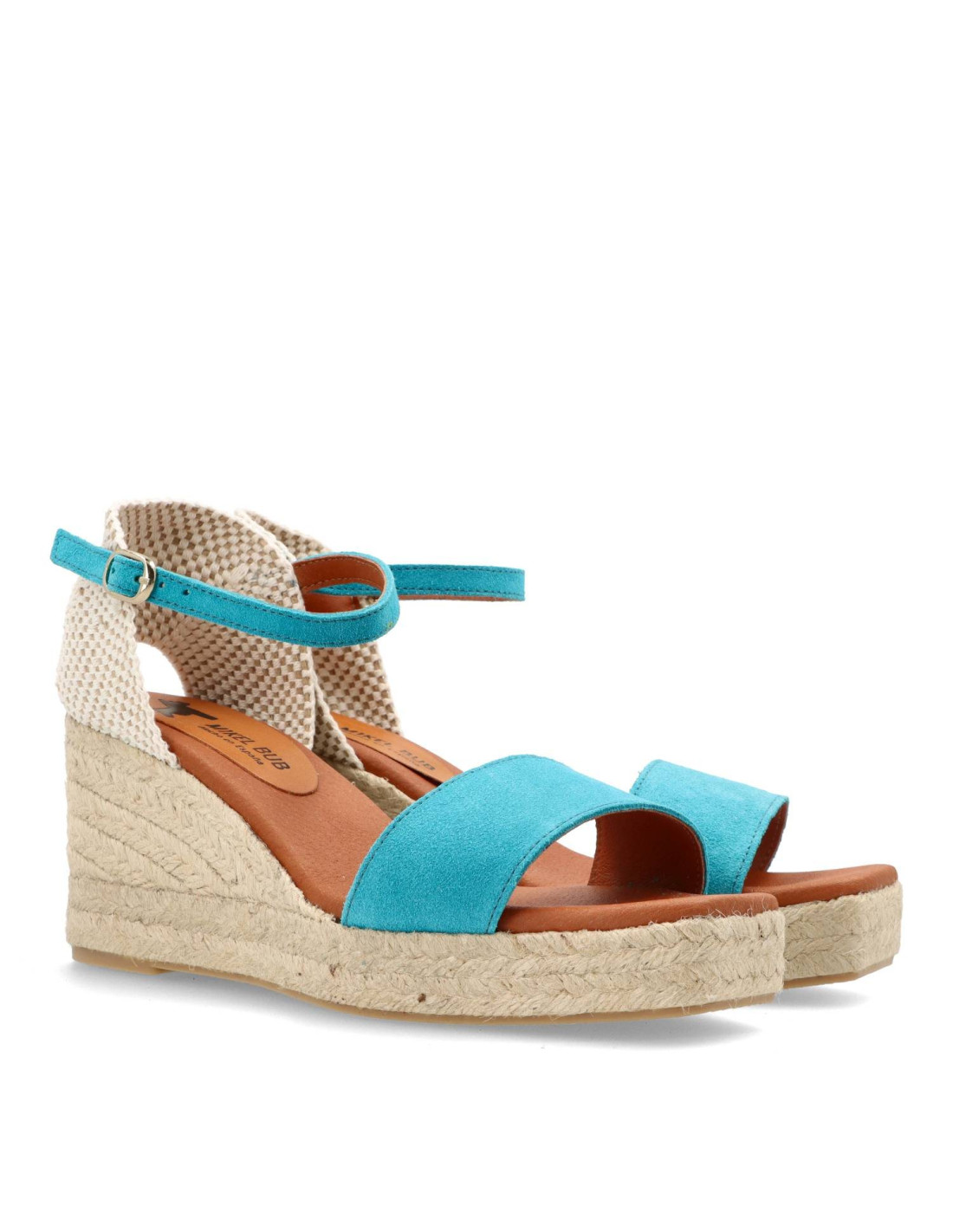 Alpargatas de cuña para mujer 010 de MIKEL BUB. Estas espadrilles confeccionadas artesanlamente en piel de ante 100%vacuno y planta de gel forrada en piel. Talón pulsera para un mejor ajuste, su suela de yute natural incorpora una plataforma de 1 cm y una cuña de 8 cm, proporcionando estabilidad y estilo. HECHO EN ESPAÑA