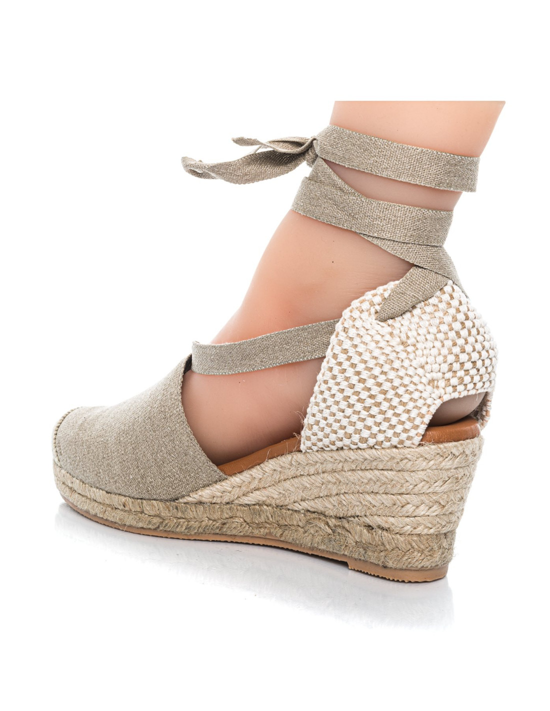 Alpargatas de mujer modelo 5000-v25 de RAYO TRENDS. Alpargatas de cuña en yute natural de unos 6cm de altura. Confeccionada en loneta Lino y plantilla interior de memory gel, forrada de piel. Talón atado con cinta al tono. HECHO EN ESPAÑA.