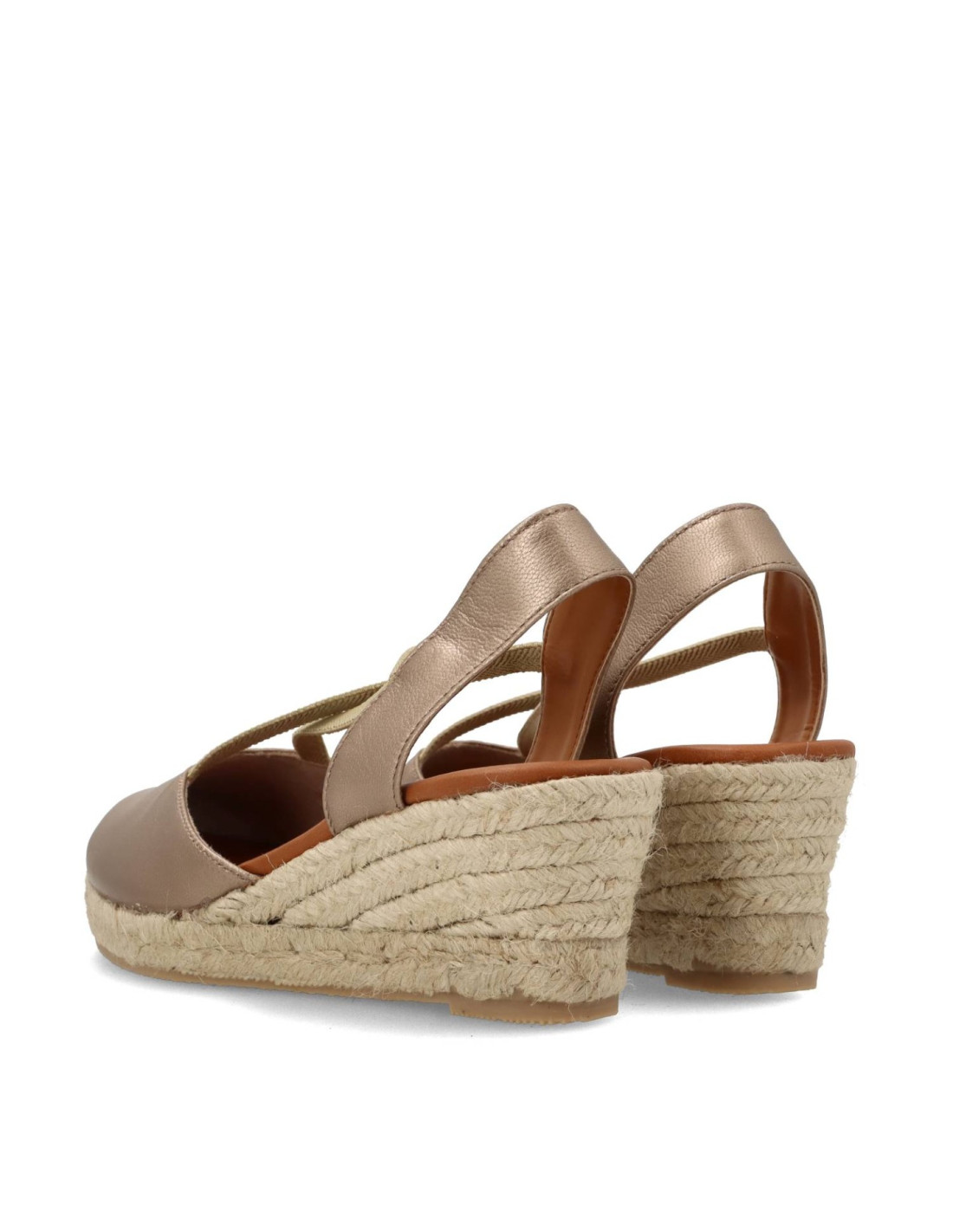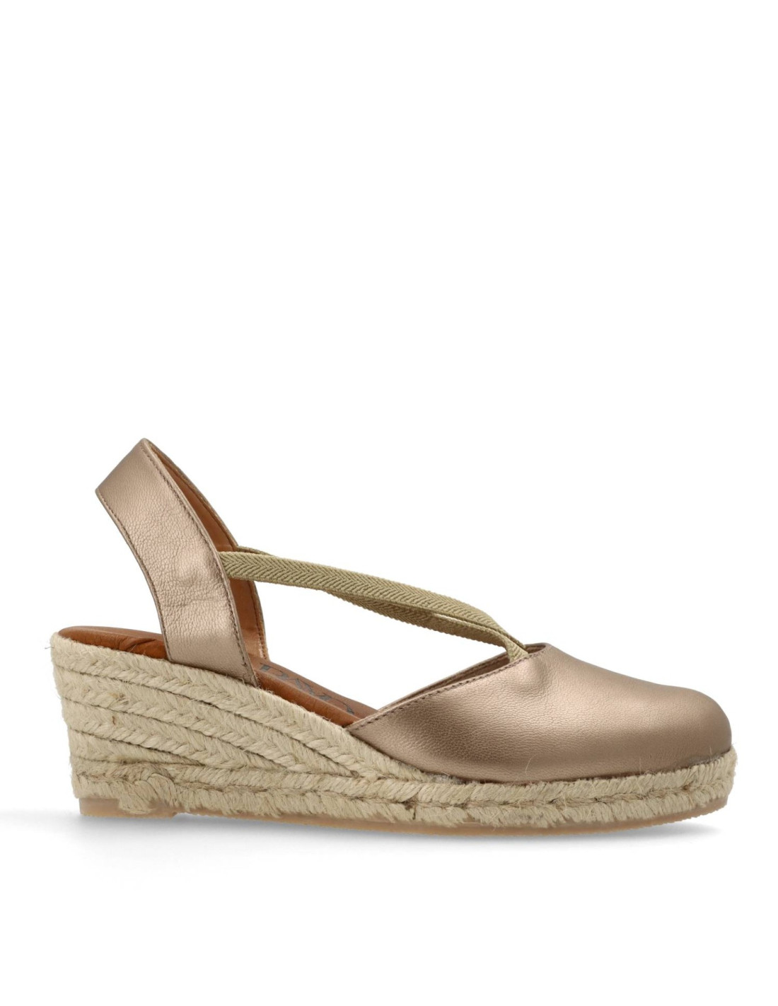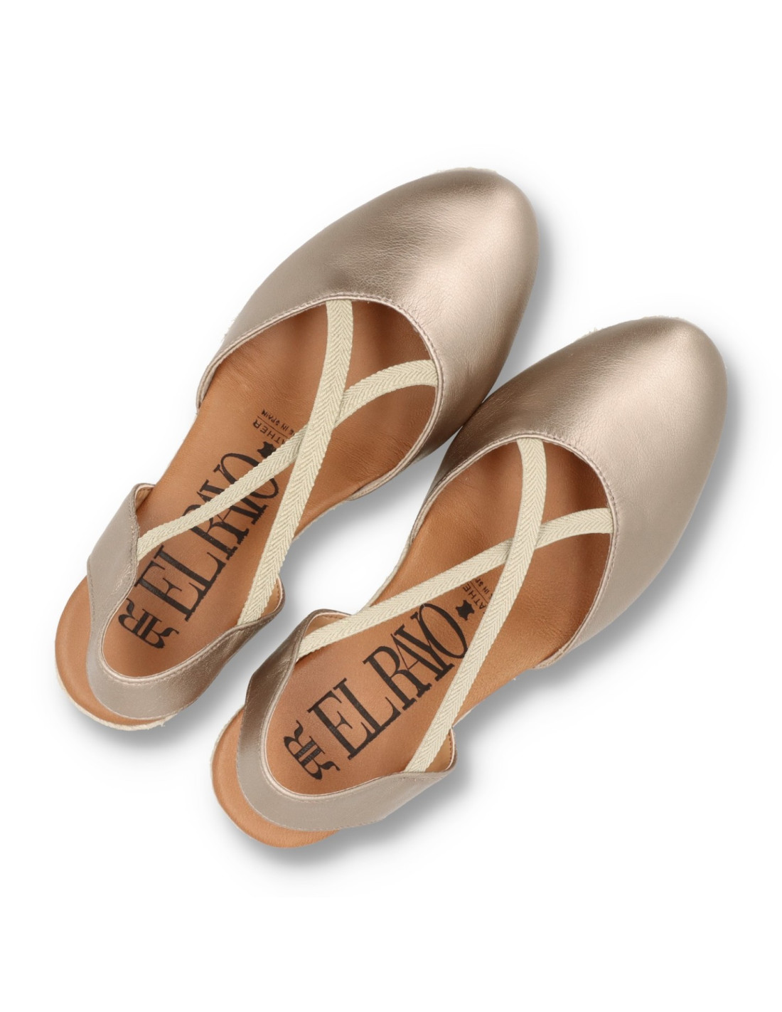 Alpargata de mujer modelo 5006-P25 de RAYO NATURE. Alpargata de cuña de yute natural de unos 6cm de altura, confeccionas en piel 100%vacuno acabado metalizado Caldera,lleva planta de gel forrada de piel para que sean aún más comodas.Si quieres un toque elegante y comodo en tus looks de verano, sin duda son estas alpargatas.FABRICADO EN ESPAÑA.
