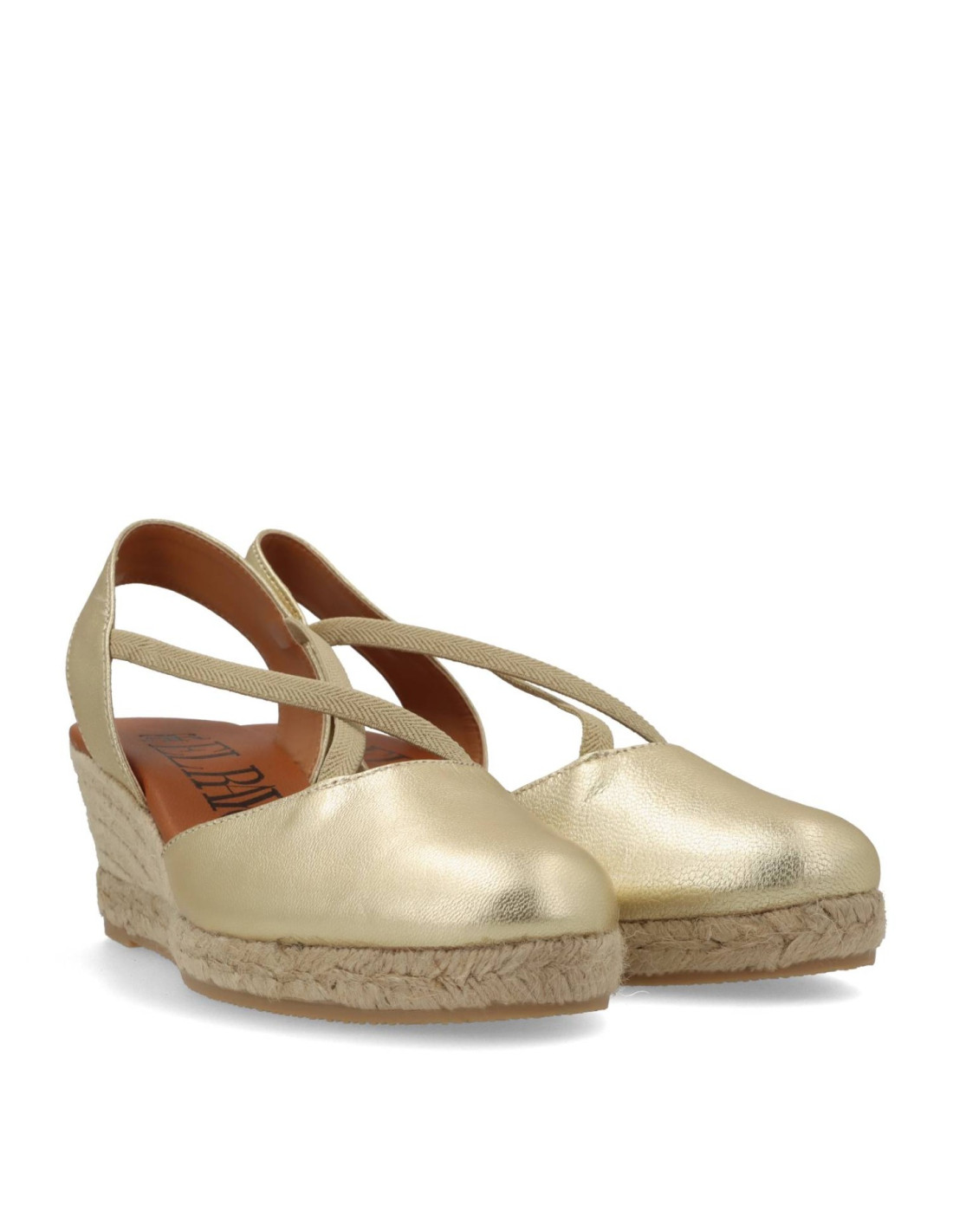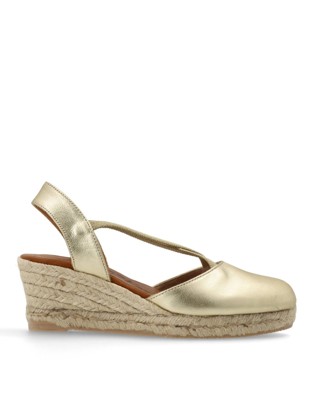 Alpargata de mujer modelo 5006-M de RAYO NATURE. Alpargata de cuña de yute natural de unos 6cm de altura, confeccionas en piel 100%vacuno acabado metalizado Platino,lleva planta de gel forrada de piel para que sean aún más comodas.Si quieres un toque elegante y comodo en tus looks de verano, sin duda son estas alpargatas.FABRICADO EN ESPAÑA.