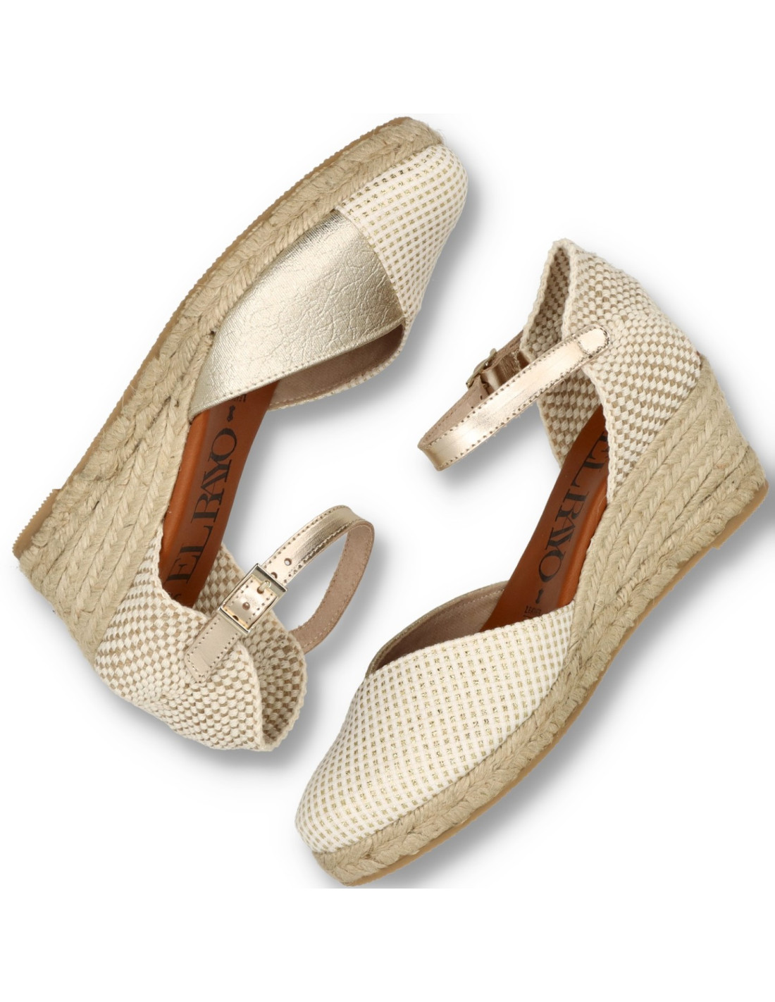 Alpargatas con cuña para mujer 5008-SING de RAYO NATURE. Alpargatas con cuña de yute natural de unos 6cm de altura. Planta de gel forrada de piel que aporta un plus de comodidad. Confeccionada en piel 100%vacuno y tejido fantasia. HECHO EN ESPAÑA