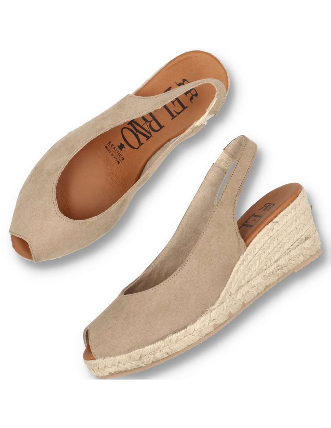 Alpargatas de yute para mujer 5018-A de RAYO NATURE. Alpargata de corte salón con una cuña de unos 6cm de altura y con planta de gel forrada de piel. Un modelo clasico fabricado en Ante sintético color Taupe. Combinable con cualquier look veraniego, sobre todo para ir comoda. FABRICADO EN ESPAÑA.