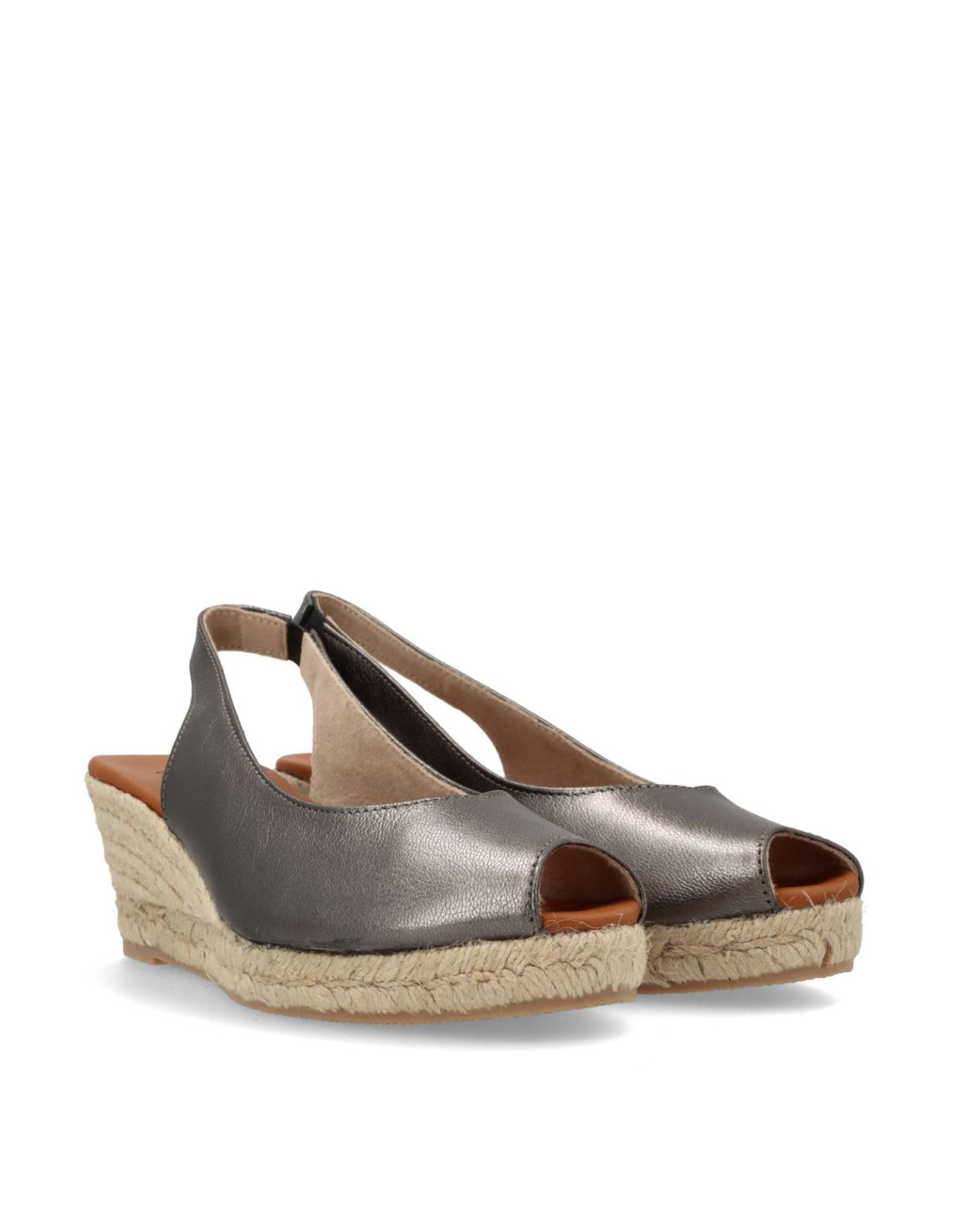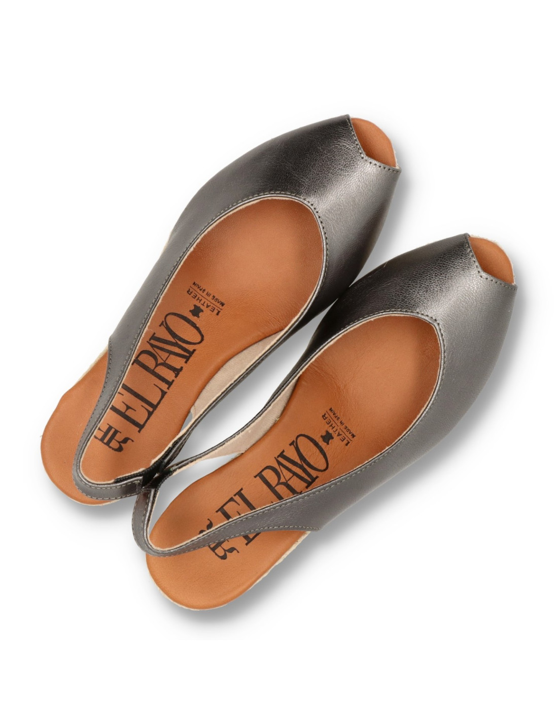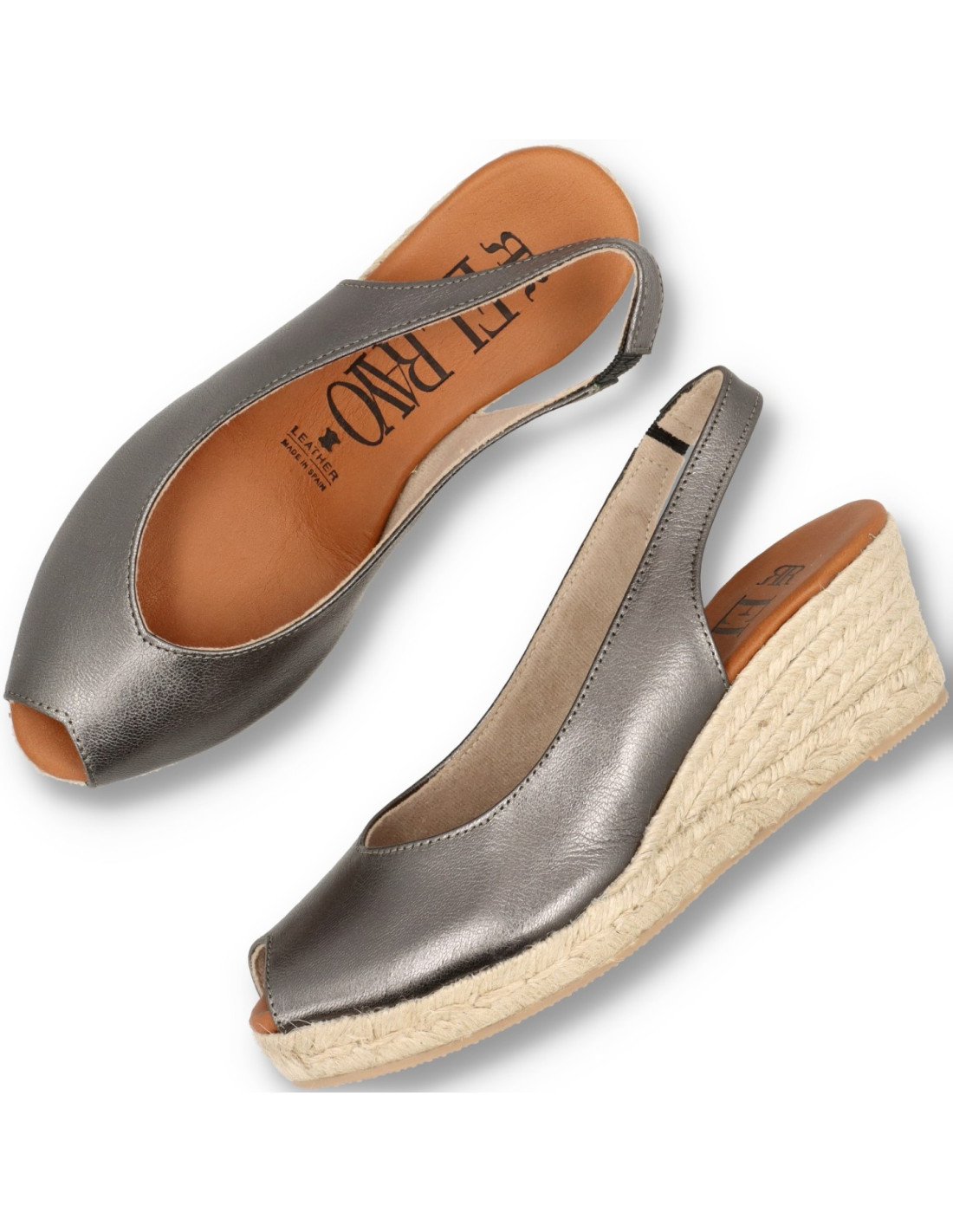 Alpargatas de yute para mujer 5018-M de RAYO NATURE. Alpargata de corte salón con una cuña de unos 6cm de altura y con planta de gel forrada de piel. Un modelo clasico fabricado en piel 100%vacuno acabado metalizado color Plomo. Combinable con cualquier look veraniego, sobre todo para ir comoda. FABRICADO EN ESPAÑA.