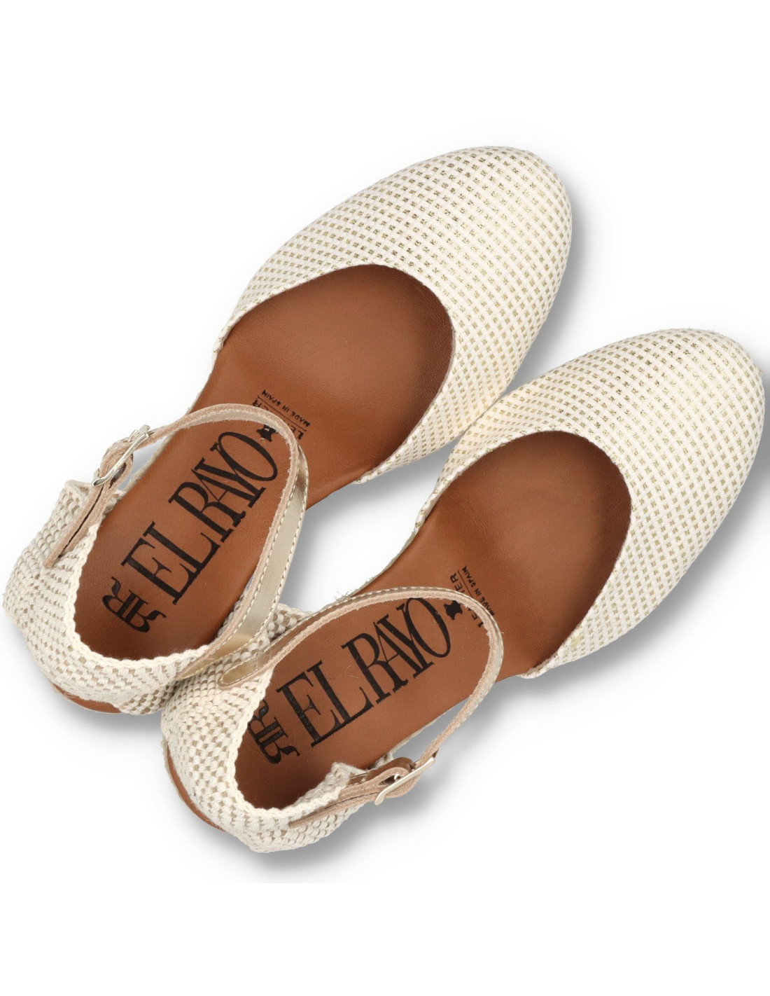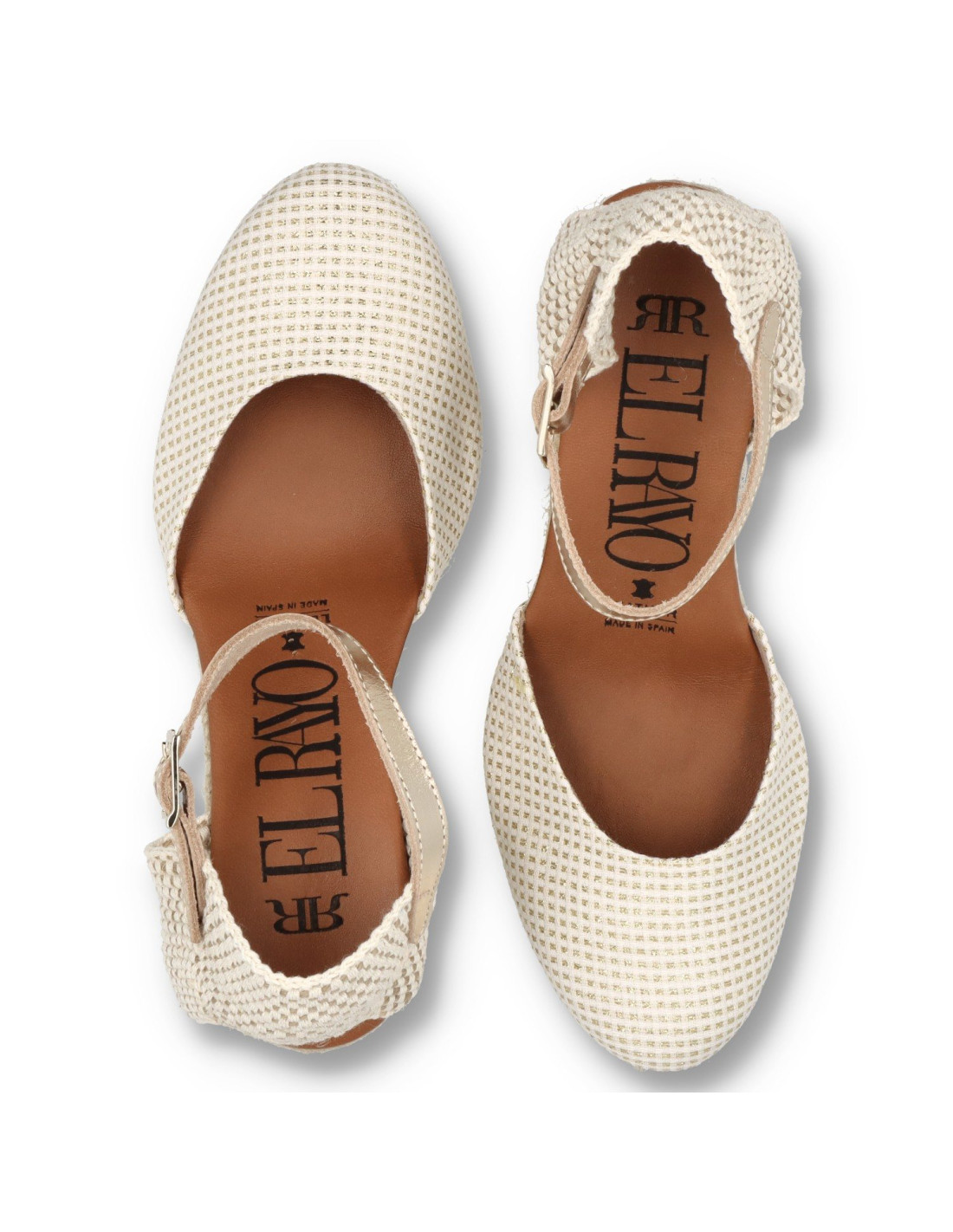 Alpargatas de cuña 6002-SV25 de RAYO NATURE. Cuñas de esparto natural para mujer de unos 10cm de altura con plataforma delantera de unos 2cm. Fabricadas en tejido fantasia y talón pulsera tira de piel. En el interior tiene la planta de gel forrada de piel para una comodidad total de cara a la temporada de verano. FABRICADAS EN ESPAÑA