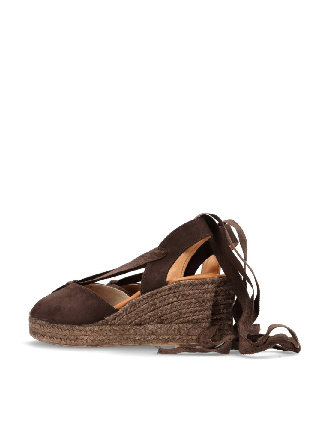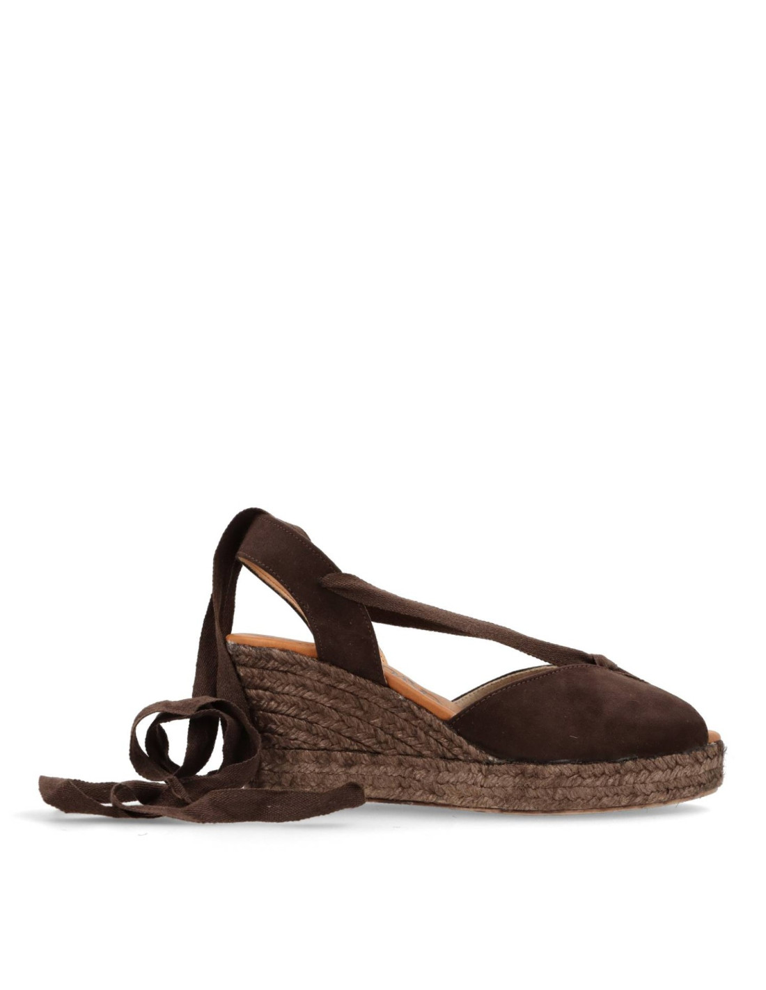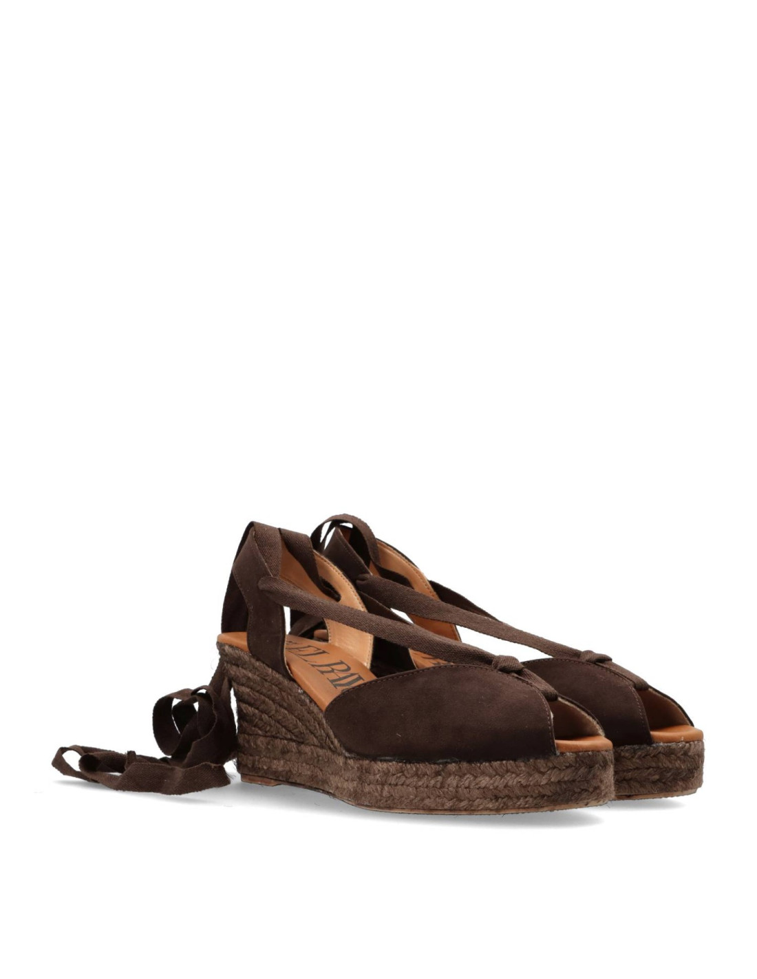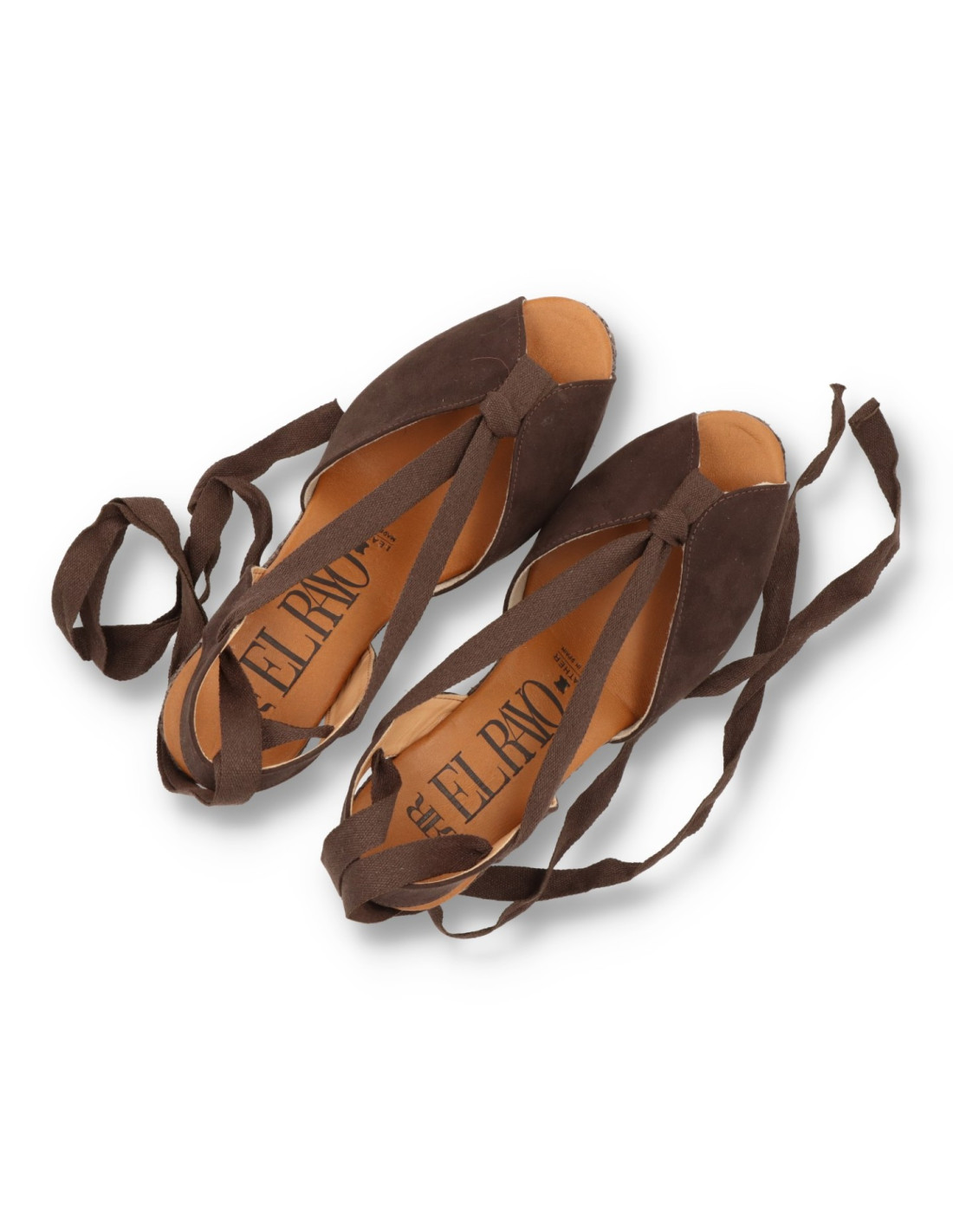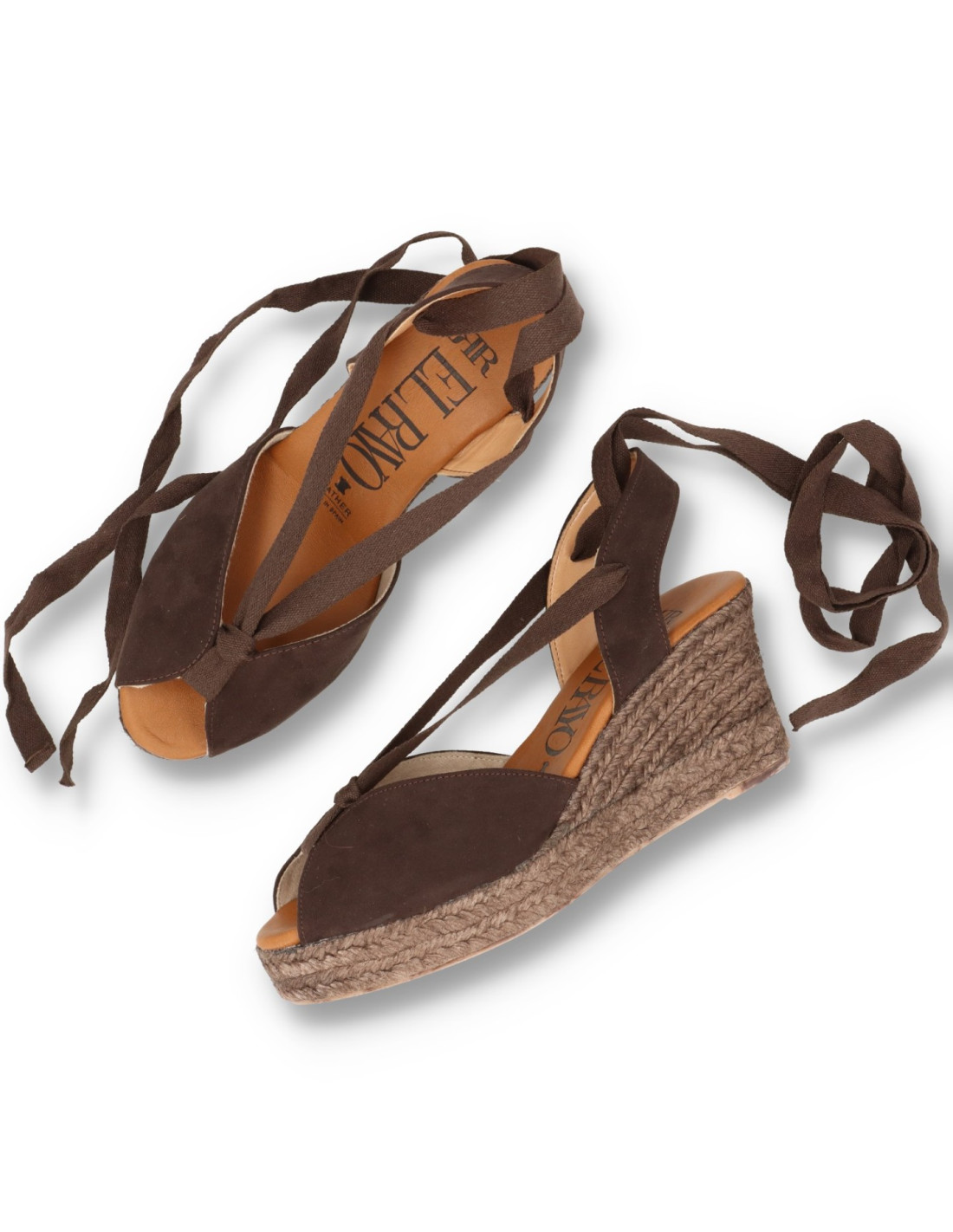 Alpargatas con cuña de mujer 6012 de RATO NATURE. Espadrilles clasicas de Piel 100%serraje en color Marrón con talón de cinta atada.Plantilla de gel forrada de piel, cuña de yute al tono de unos 8cm de altura y 2cm plataforma delantera.HECHO EN ESPAÑA
