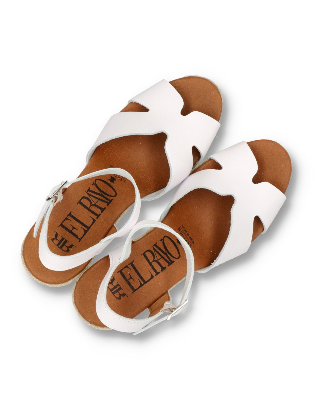 Alpargatas de cuña para mujer 7011 de RAYO NATURE. Alpargatas toda de piel 100%vacuno, con planta de gel forrada de piel. Talón pulsera con hebilla ajustable, cuña de yute natural de unos 8cm de altura y 2 cm en la parte delantera. HECHO EN ESPAÑA.