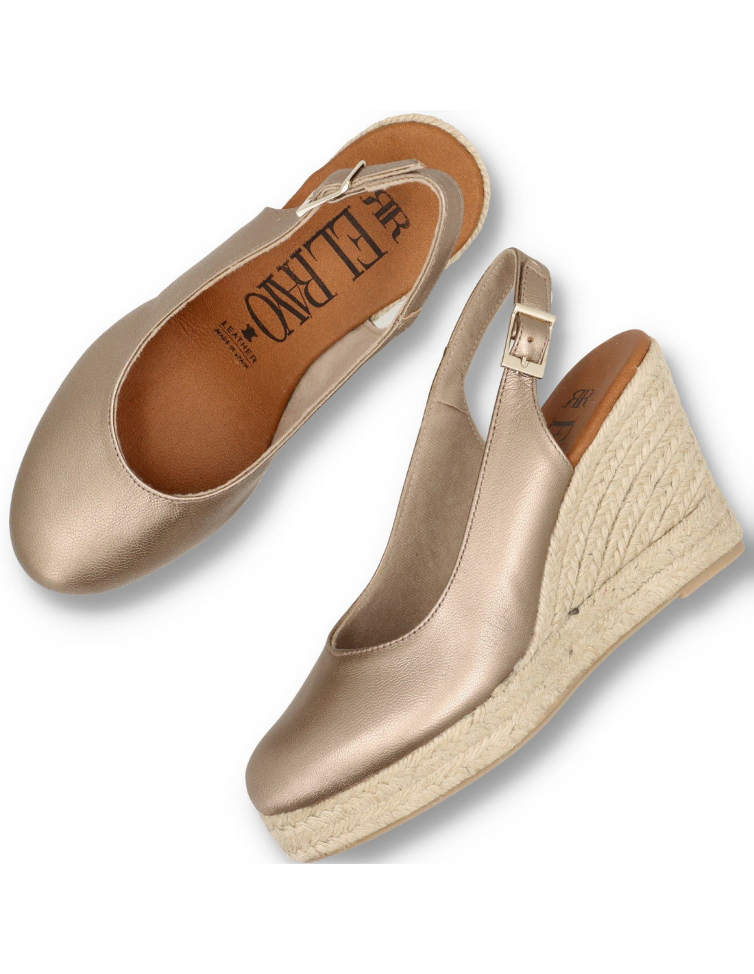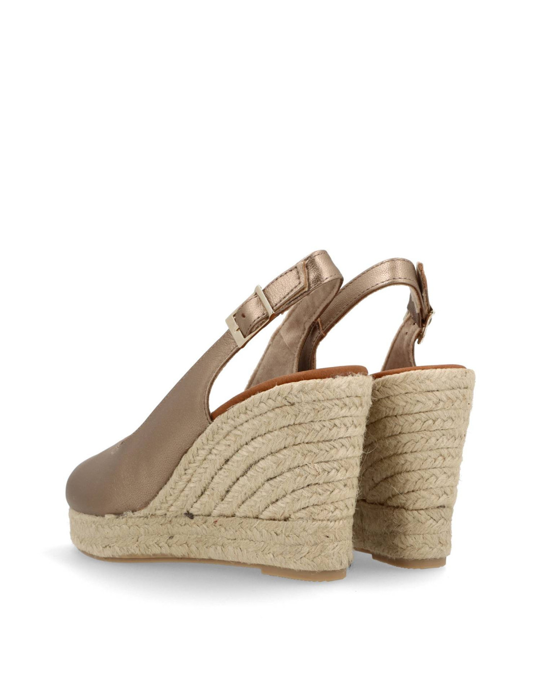 Alpargtas de yute para mujer 7014 de RAYO NATURE.Fabricadas en piel 100%vacuno, acabado metalizados. Interior con planta de gel forrada en piel, para una pisada confortable. Cuña de yute natural de unos 10cm de altura y 2cm en la parte delantera.HECHO EN ESPAÑA.
