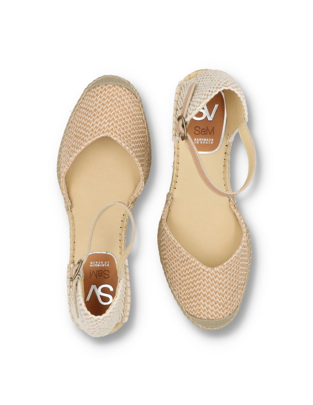 Alpargatas de yute para mujer 219-379 de SV. Estas alpargatas con cuña de yute natural de unos 8cm de altura y 2cm de plataforma. confeccionadas en rafia y plantilla acolchada de microfibra, con talón pulsera con hebilla ajustable. Ideales para ir comoda con tus looks frescos de verano. HECHO EN ESPAÑA