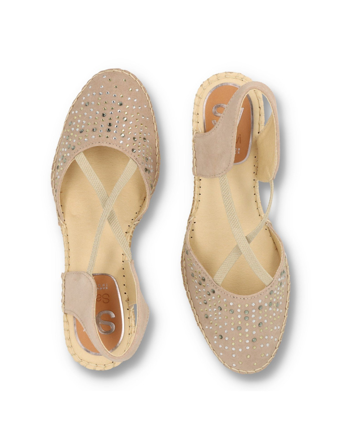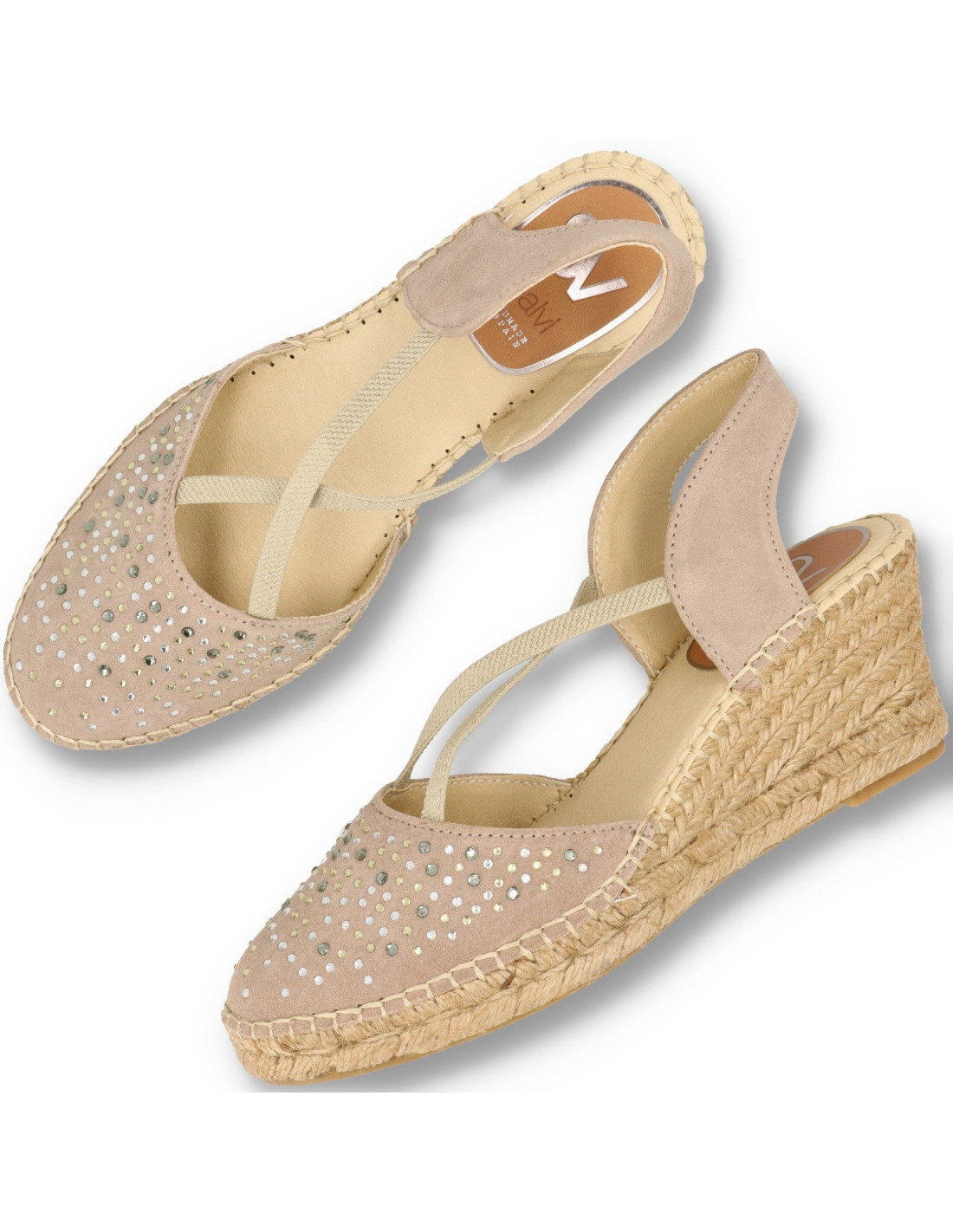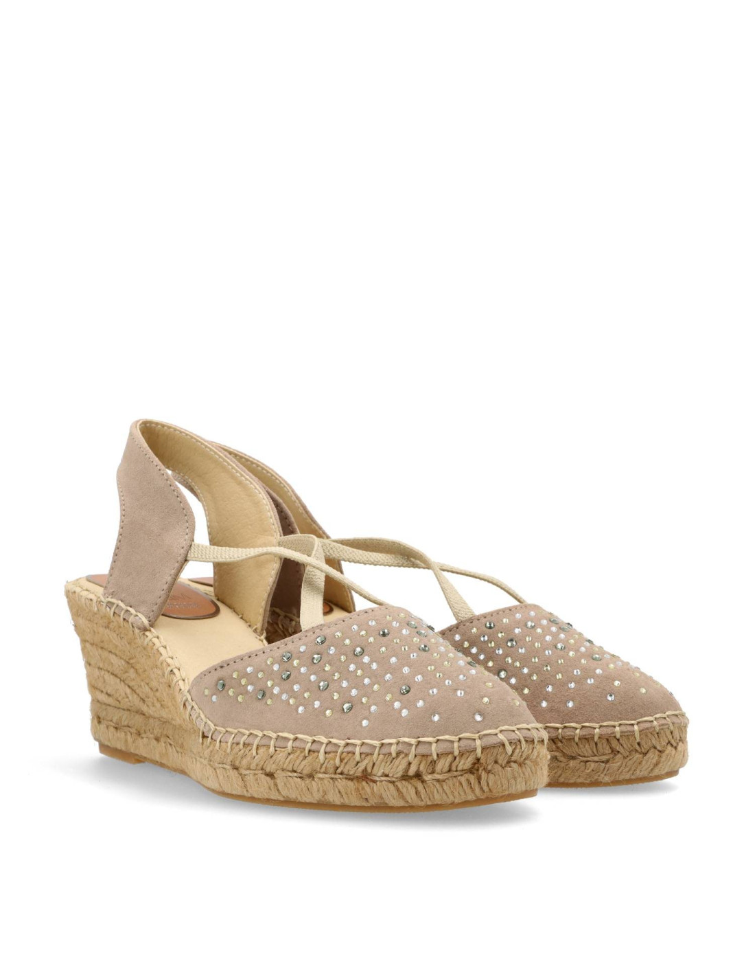 Alpargtas de yute para mujer 320-016 de SV. Alpargatas con cuña de yute natural de unos 8cm de altura. Confeccionadas en piel 100%vacuno acabado ante, con detalle de pedreria. Forro y planta de microfibra acolchada. Calzado con acabado artesanal, confortable y practico. Fácil de combinar en tus looks de verano. HECHO EN ESPAÑA