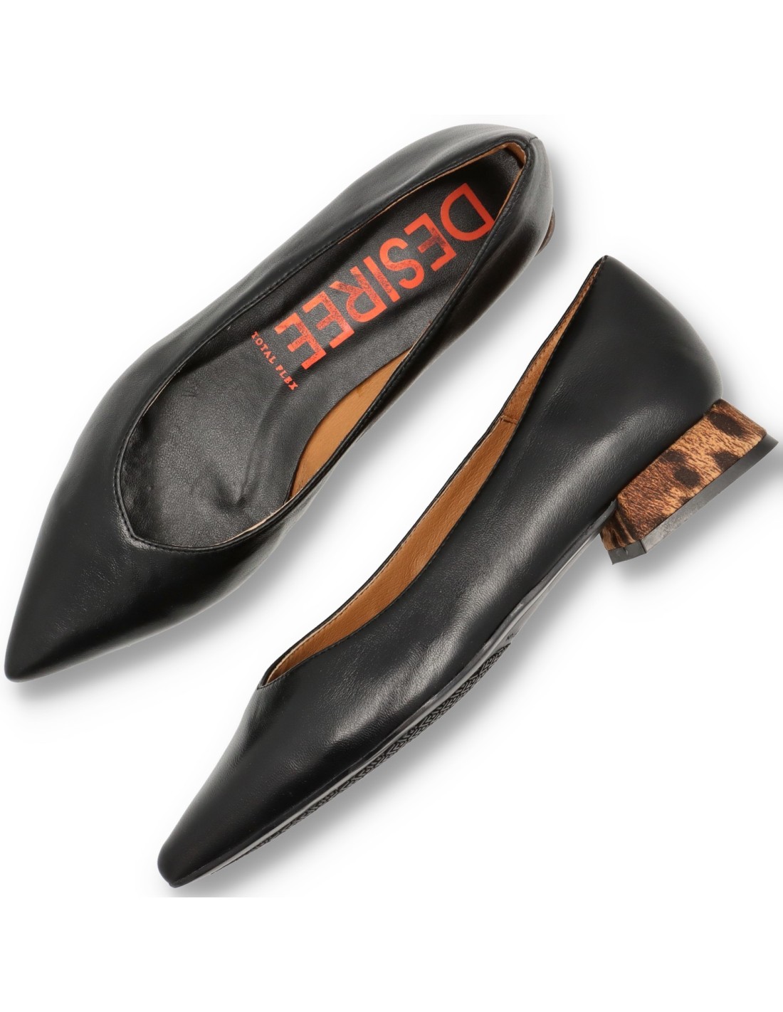 Bailarinas de tacón para mujer VIENA-2 de Desiree. De piel 100%vacuno con forro tambien de piel y planta acolchada. Tacón ancho y comodo forrado en tejido leopardo de unos 2cm de altura. Suela de goma atideslizante.HECHO EN ESPAÑA