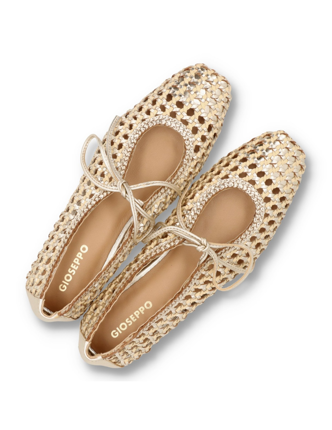 Bailarinas con tacón para mujer 79106-WORDEN de Gioseppo. Bailarinas de piel metalizada con trenzado hecho a mano. Punta cuadrada. Tacón metalizado. Cuentan con planta acolchada y tira de sujeción en el tobillo. Altura tacón: 1,5 cm. Este modelo destaca por su flexibilidad y ligereza al prescindir de topes y contrafuertes.