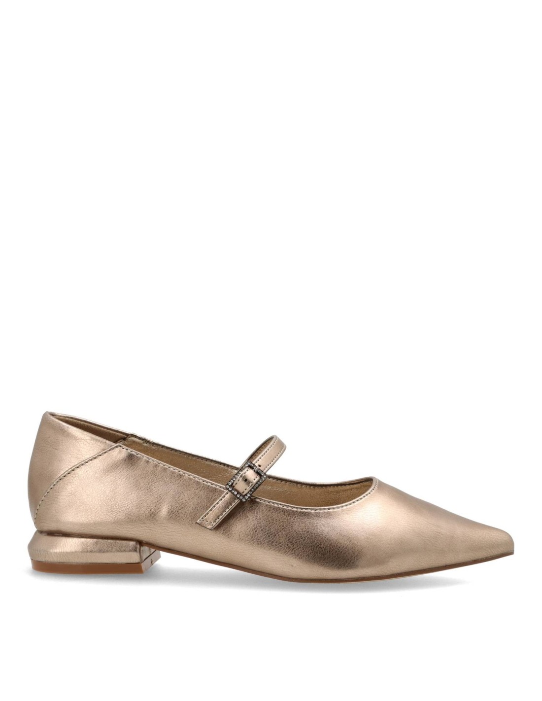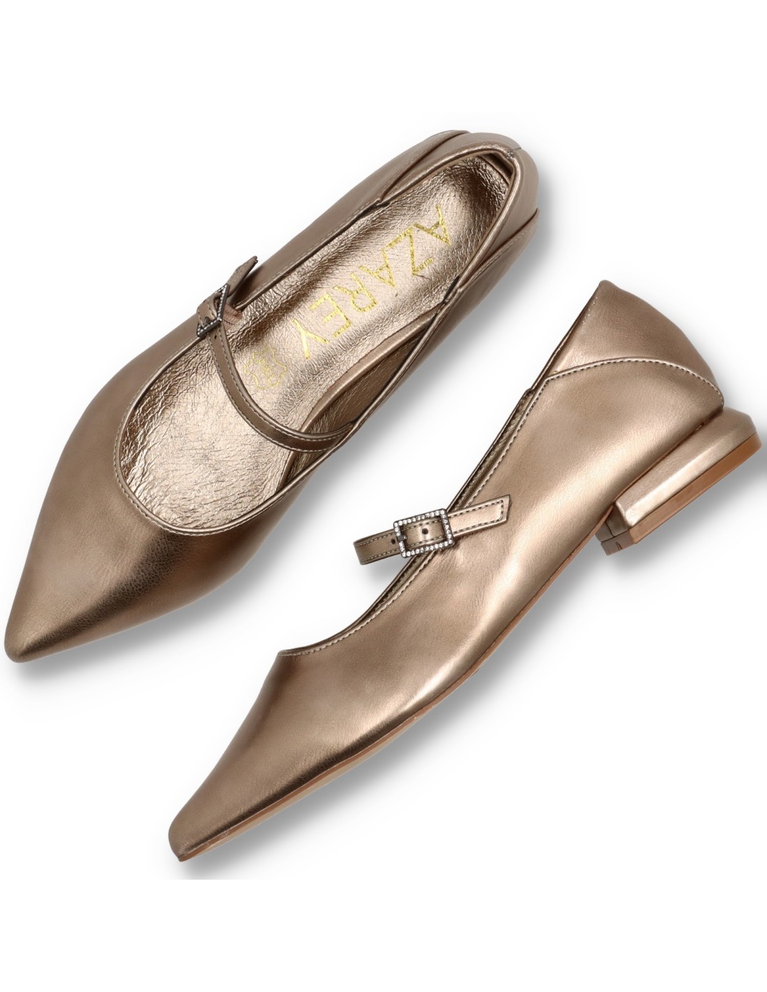 Bailarinas planas de mujer 574H579 de AZAREY. De PU Leather con plantilla interior de piel acolchada. Pequeño tacón de 1cm de altura con tira hebilla ajustable y horma de punta fina.