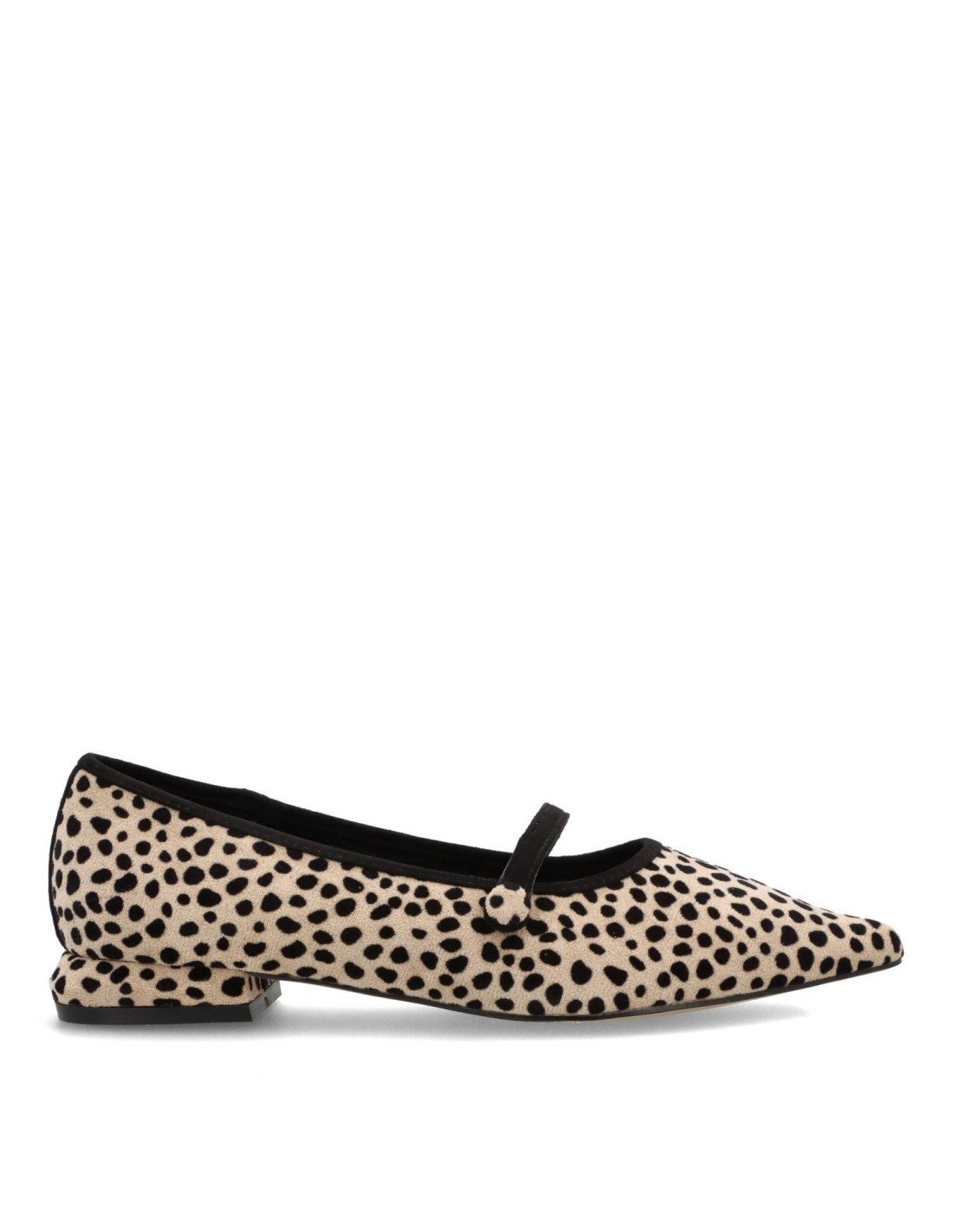 Bailarinas planas de muje 574H943 de AZAREY. Bailarinas planas con pequeño tacón de 1cm de altura, plantilla interior acolchada de piel. Exterior en print animal y detalle de lazo en ante,Horma de punta fina