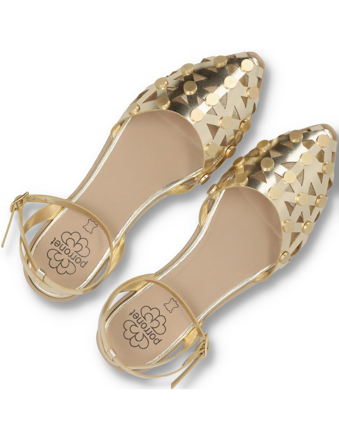 Bailarina plana de mujer 7091 RITA de Porronet. Destaca con estas elegantes bailarinas metalizadas de diseño troquelado, adornadas con sutiles detalles metálicos que añaden un toque moderno y sofisticado. Su plantilla acolchada de piel asegura un confort excepcional, perfecto para llevarlas durante todo el día. La correa ajustable al tobillo aporta estabilidad y estilo, mientras que su suela plana y flexible las convierte en una opción versátil y cómoda para cualquier ocasión. Si dudas entre dos tallas, nuestras clientas recomiendan elegir la talla inferior.