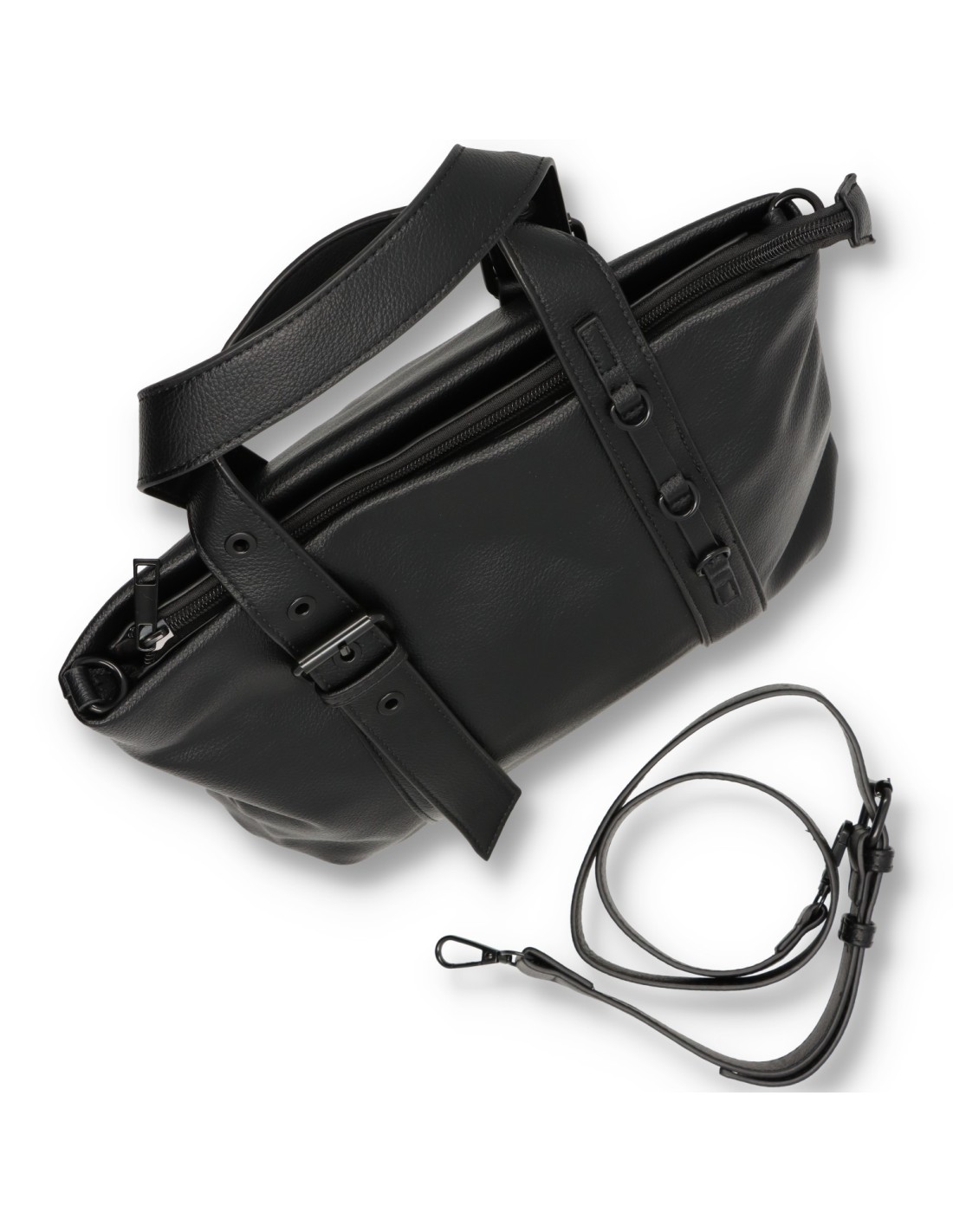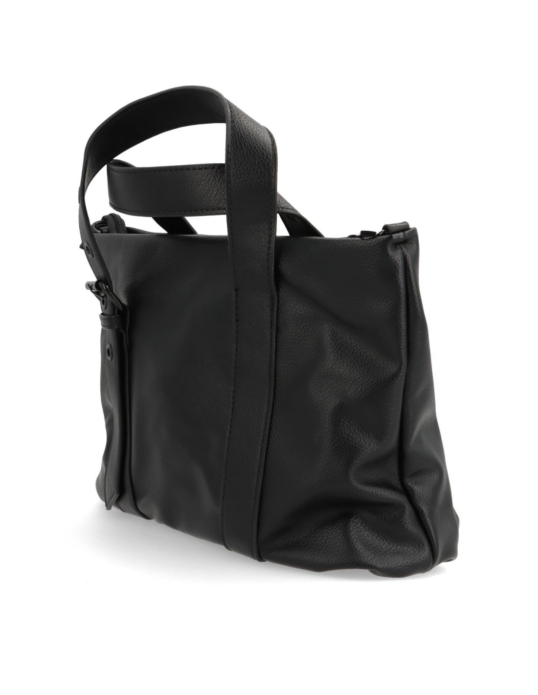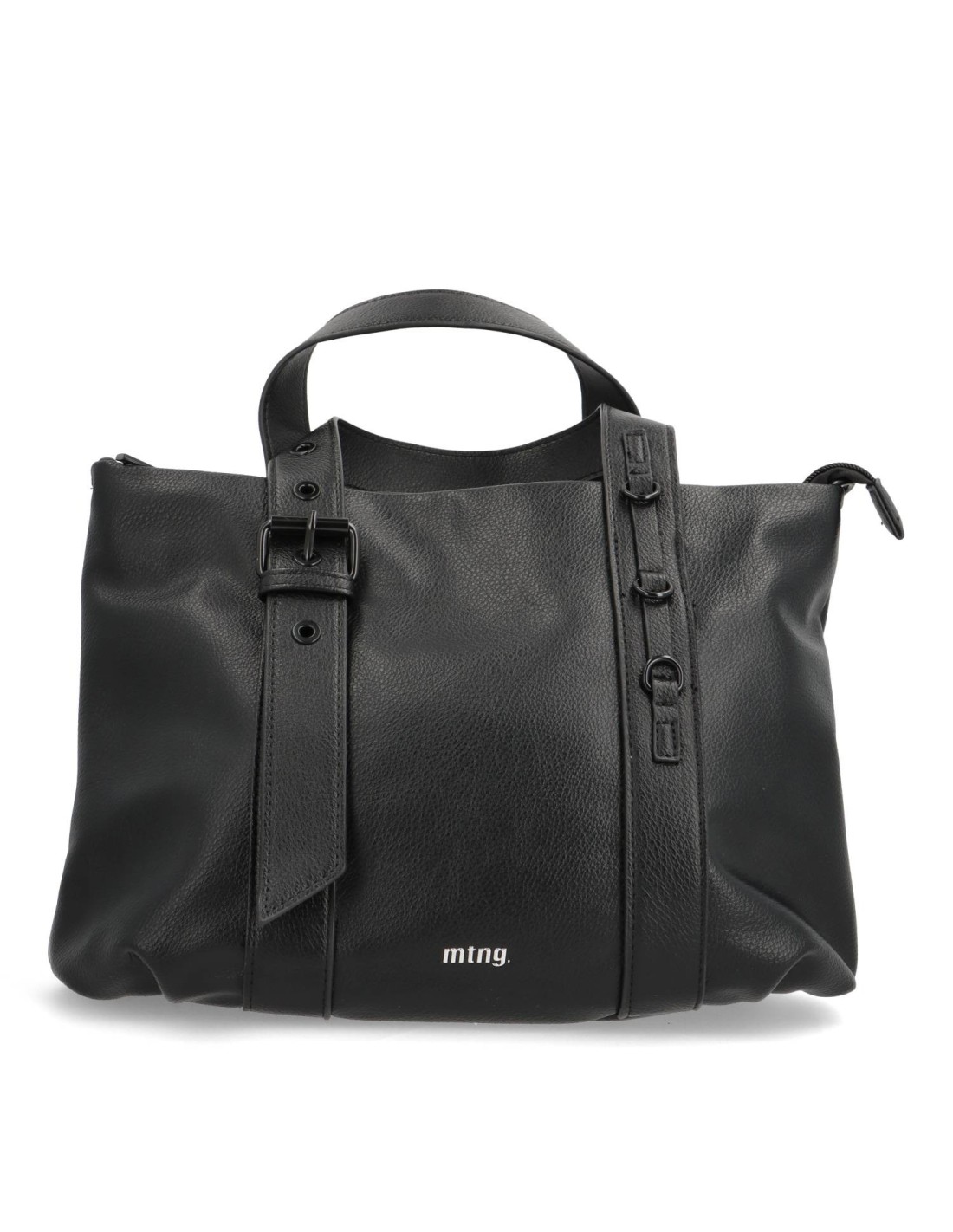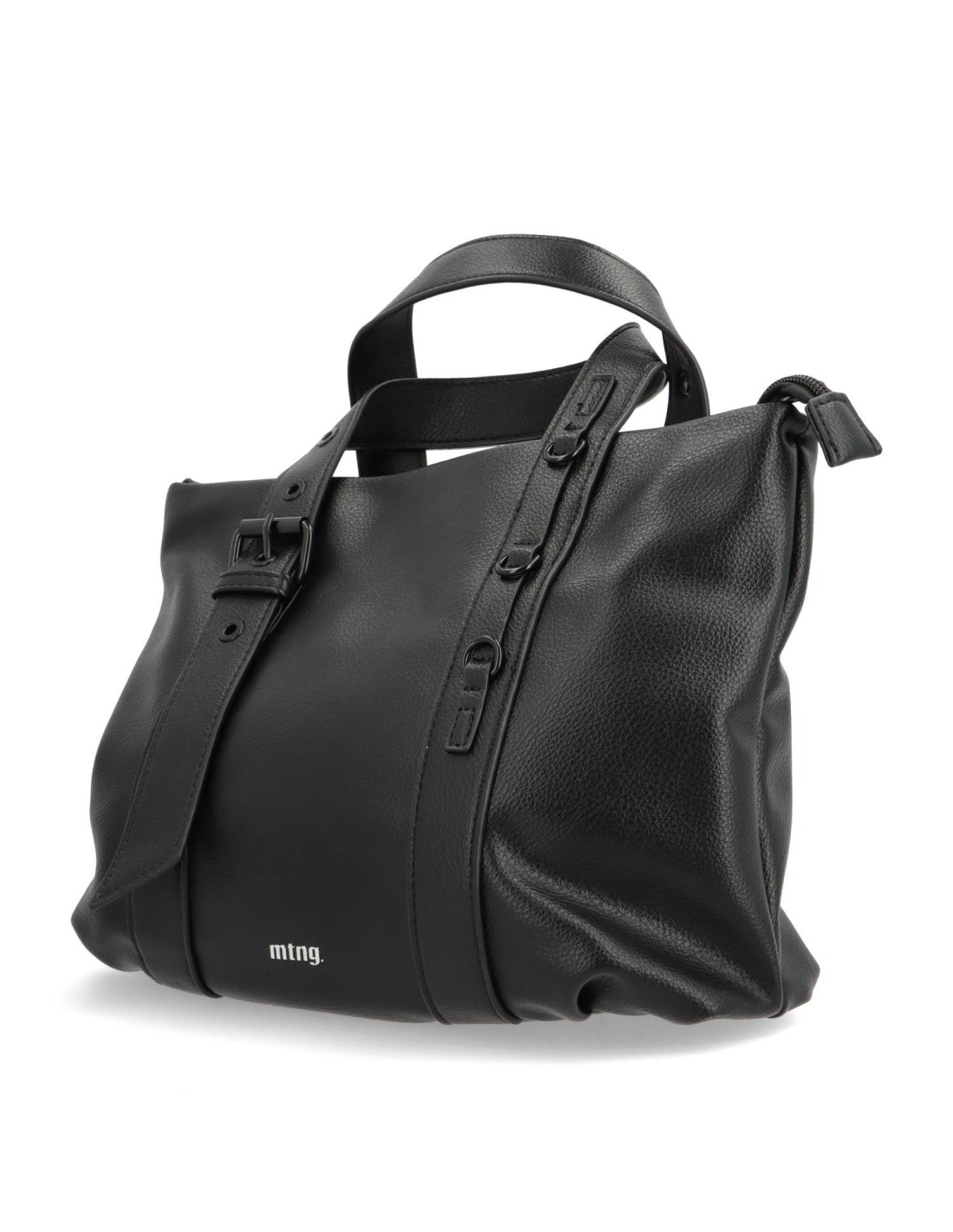Bolso shopper de color negro Mack para mujer de de la marca Mustang. Interior mediano amplio con versatilidad para uso cotidiano. Detalles con hebillas metálicas y asas dobles además de una correa para usarlo como bandolera le da un estilo particular. Su color negro junto a sus acabados son perfectos para combinar con cualquier outfit y estilo.