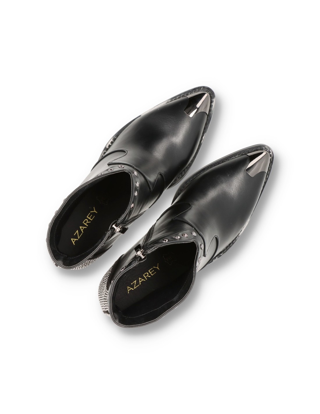 Botín de tacón para mujer 462H650 de AZZAREY. De estilo cowboy en material PU Leather, interior en tejido cálido y plantilla de piel. Detalles de tachas metal en talón y caña. Tacón cubano de unos 5cm de altura y suela felxible.