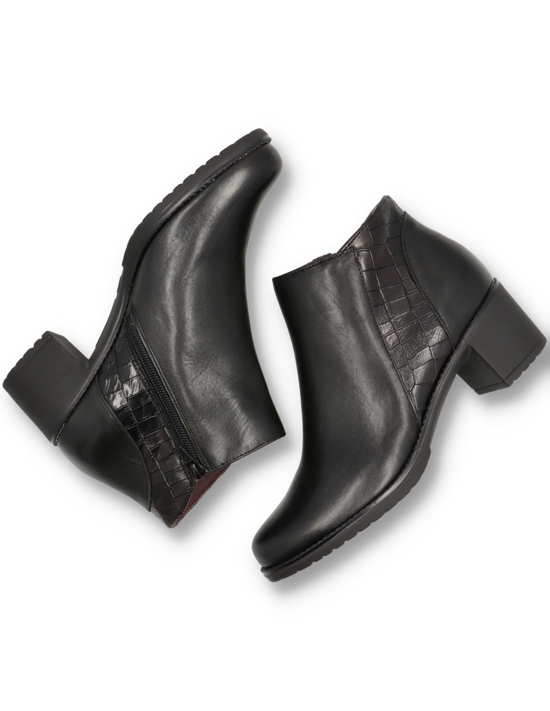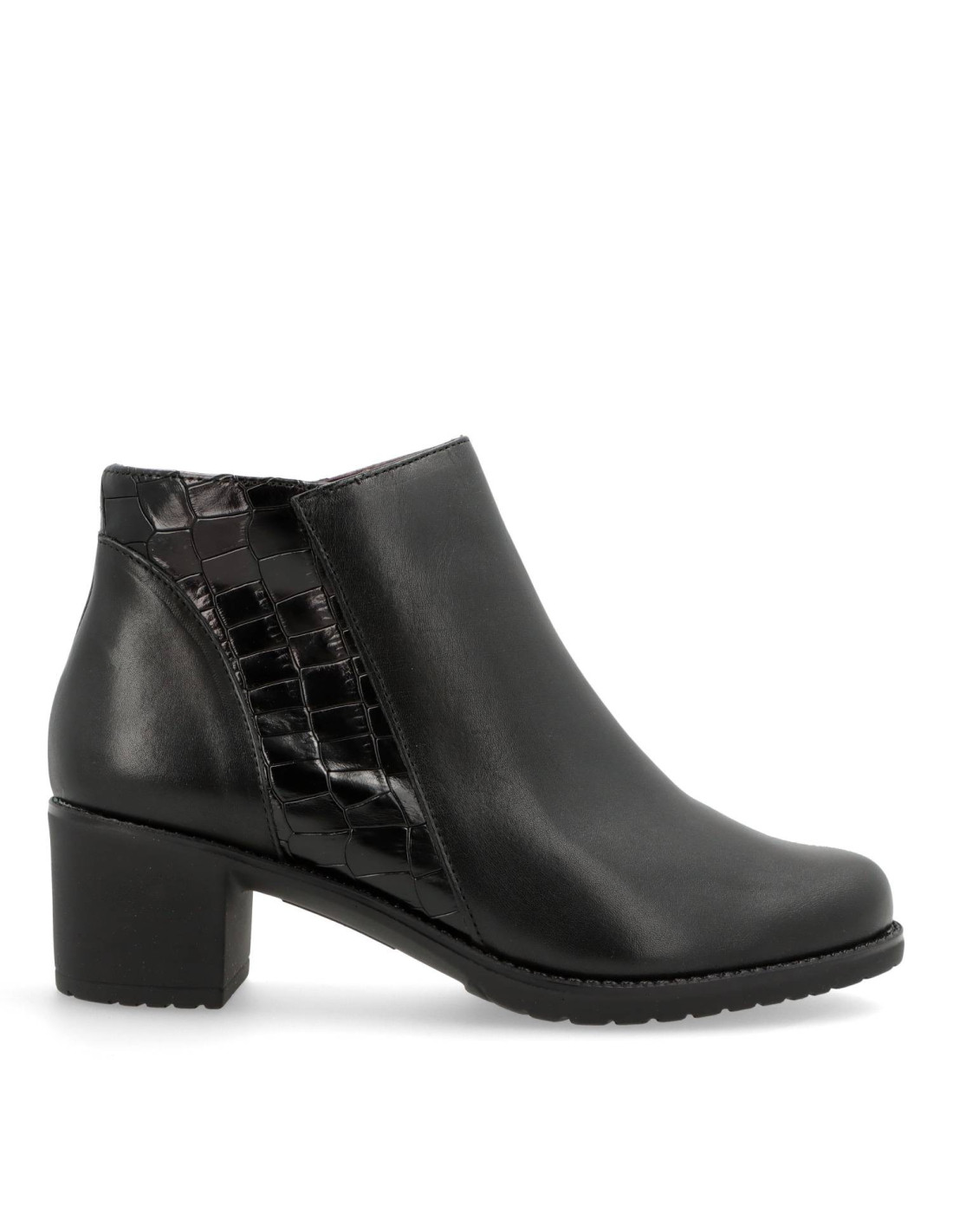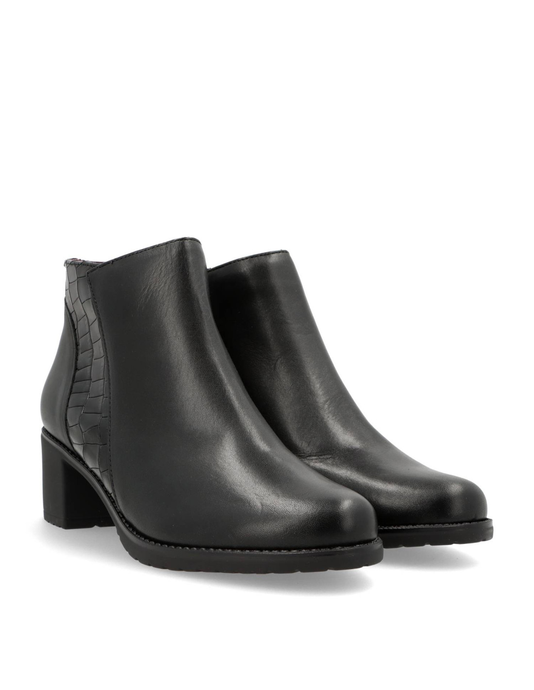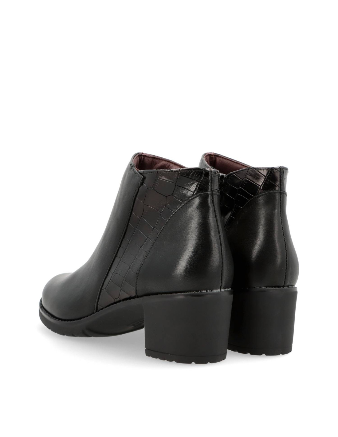 Botín de tacón para mujer modelo 10043 de PITILLOS. De piel 100%vacuno y forro técnico transpirable y absorvente. Plantilla extra-confort extraible. Suela ligera y flexible con tacón de unos 4cm de altura.