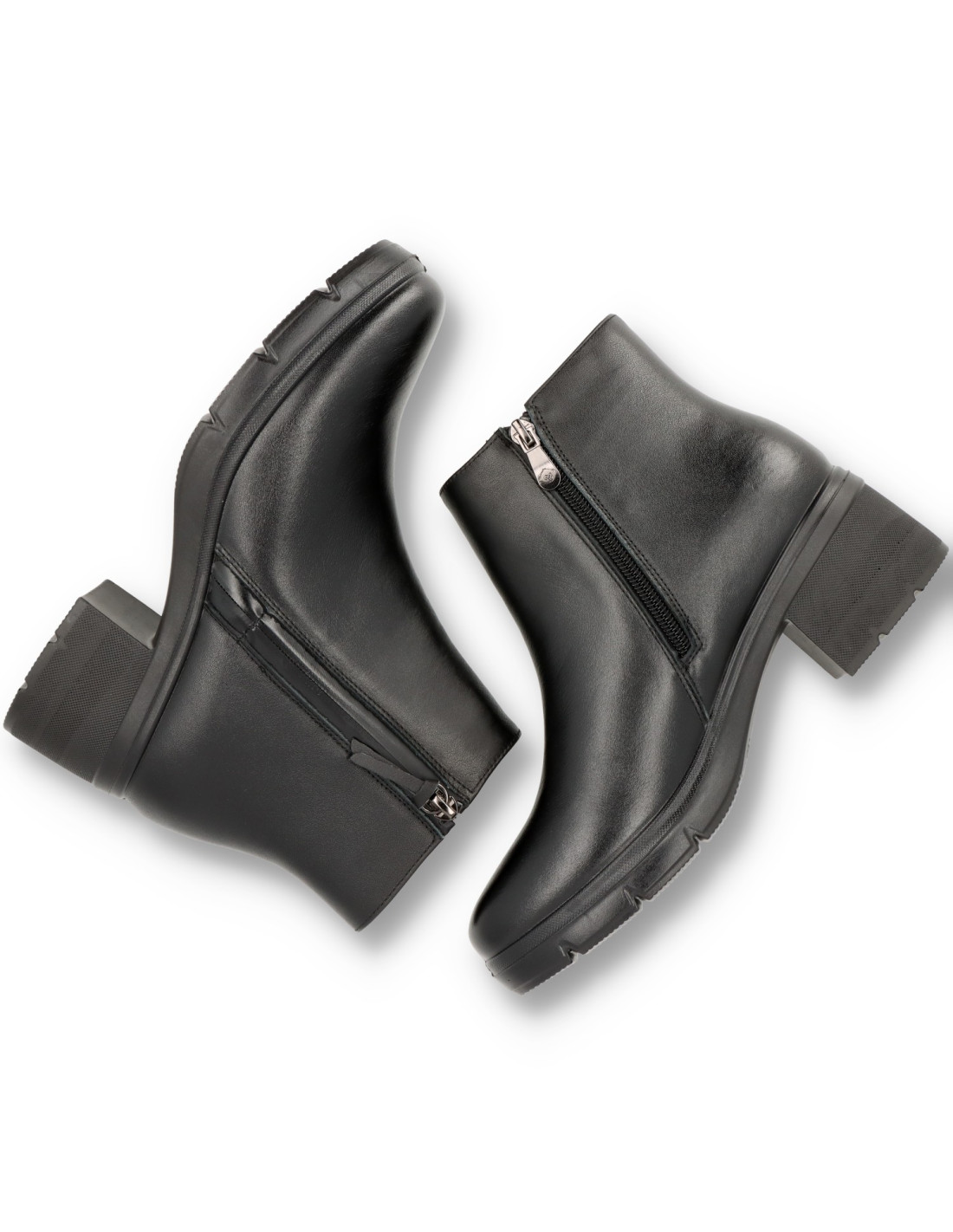 Botín de tacón para mujer MADRID001 THE HAPPY MONK.Botín de piel 100%vacuno, interior en micro fibra con plantilla memory foam extraible. Piso de de goma con tacón de ancho y comodo de unos 3cm de altura, extra light ofrece ligereza y estabilidad para llevar todo el día sin cansancio. Incorpora cremallera interior que facilita su puesta.