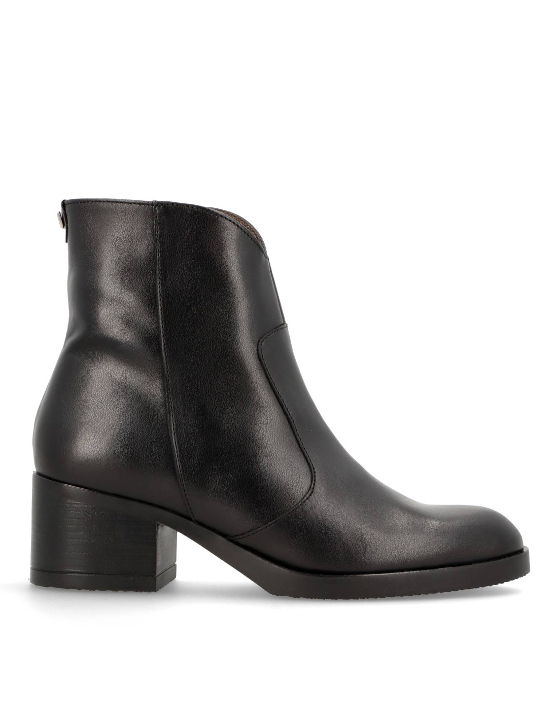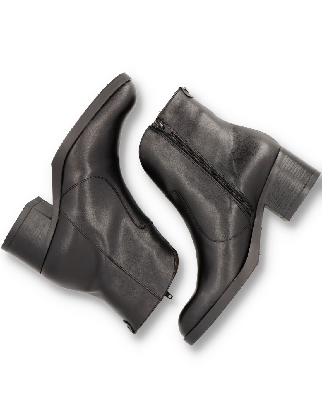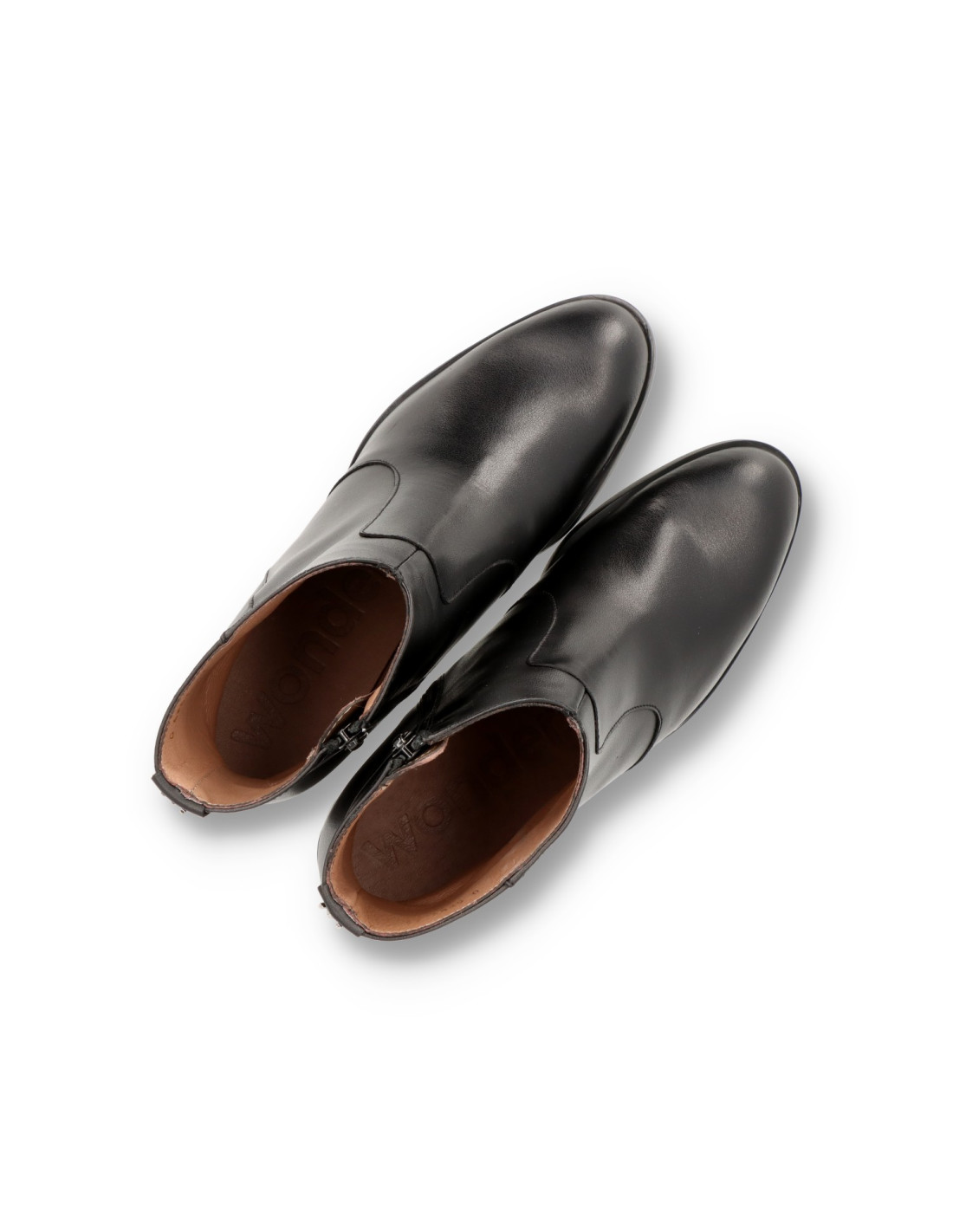 Botín de tacón para mujer G-6253 MELISA de Wonders. Confeccionado en piel natural de primera calidad con acabado liso y natural. Su diseño sobrio y elegante lo convierte en un básico atemporal, perfecto para looks diarios o más refinados. La caña de altura media se adapta suavemente sin oprimir. El cierre con cremallera interior oculta facilita el calce sin alterar la estética.La suela de TPU es ligera y flexible, con un tacón cuadrado de 5 cm que aporta estabilidad. En el interior, la plantilla Memory Gel recubierta de piel asegura una pisada suave y confortable.HECHO EN ESPAÑA