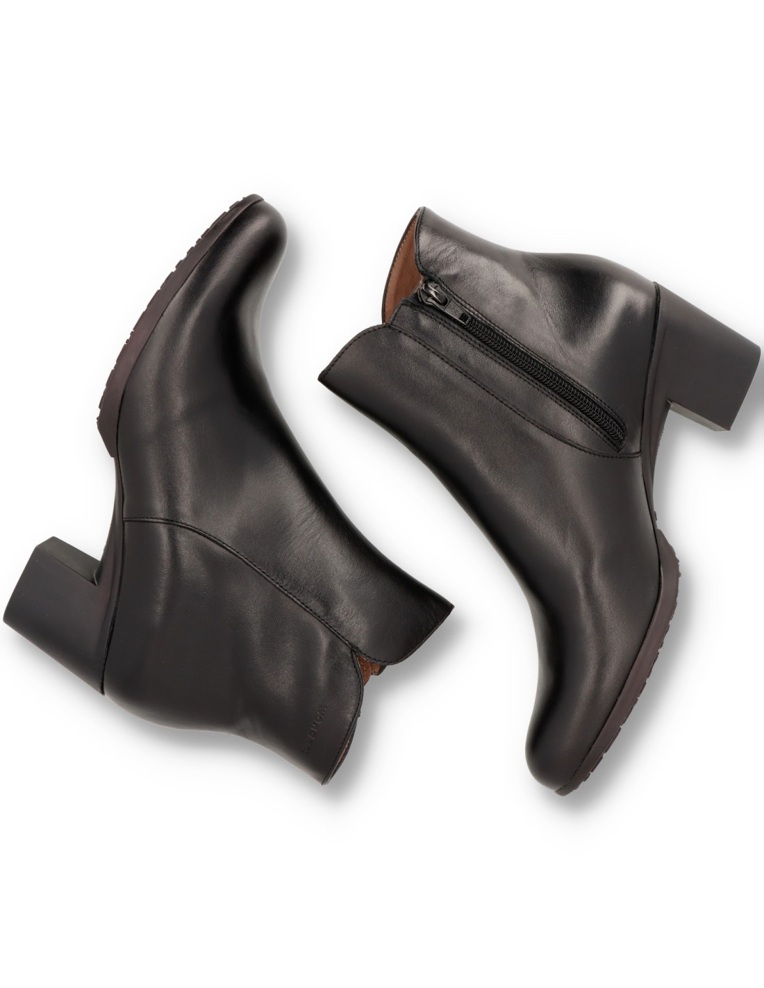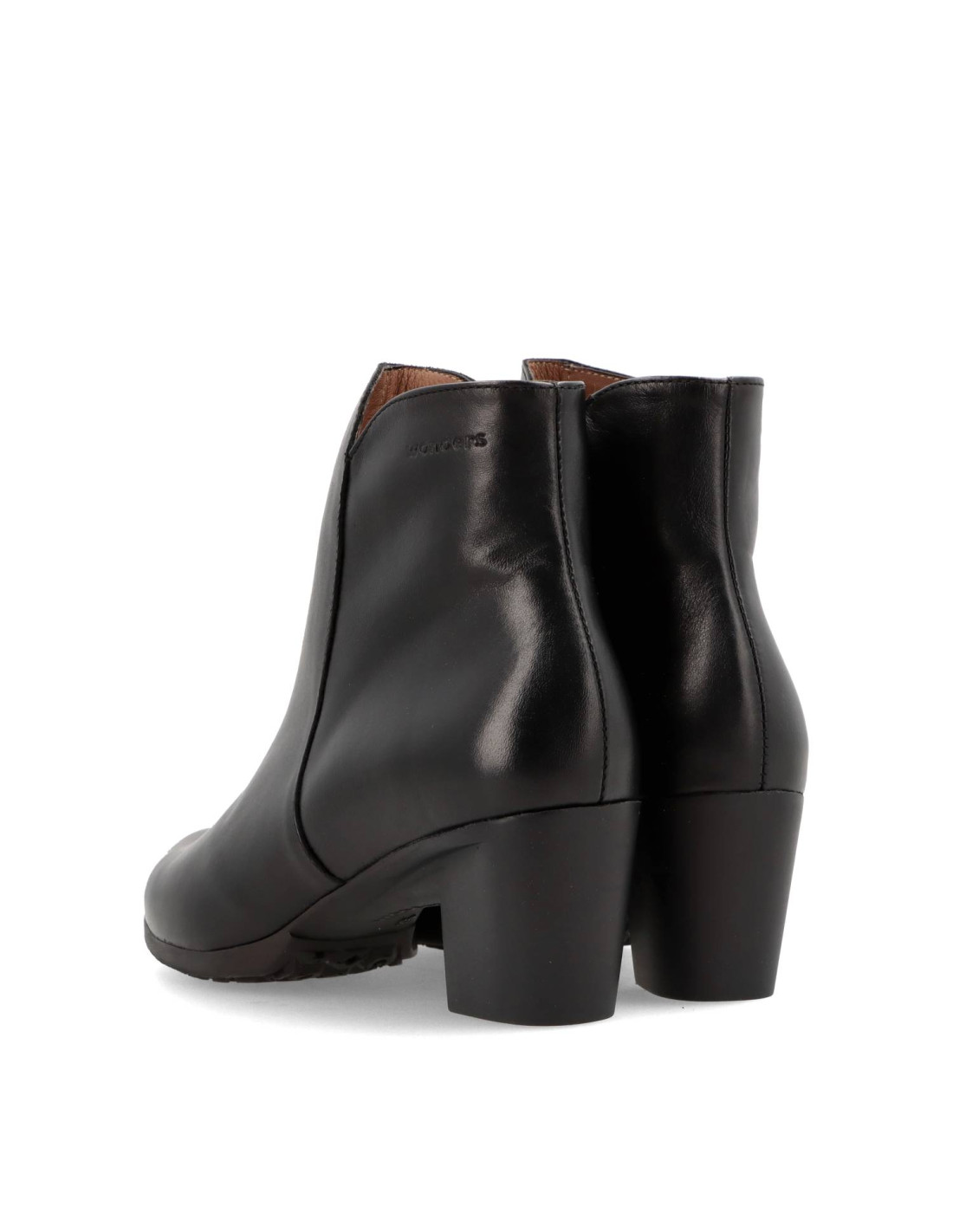 Botín con tacón de mujer G-4722 de wonders. Diseño clasico para este botín de piel 100%vacuno y plantilla interior MemoryGel que asegura una pisada amortiguada en cada paso. Suela ligera de goma antideslizante con tacón de unos 5cm de altura, cierre mediante cremallera. #madewithloveinSpain Wonders apoya la fabricación responsable vía LEATHERWORKINGGROUP.