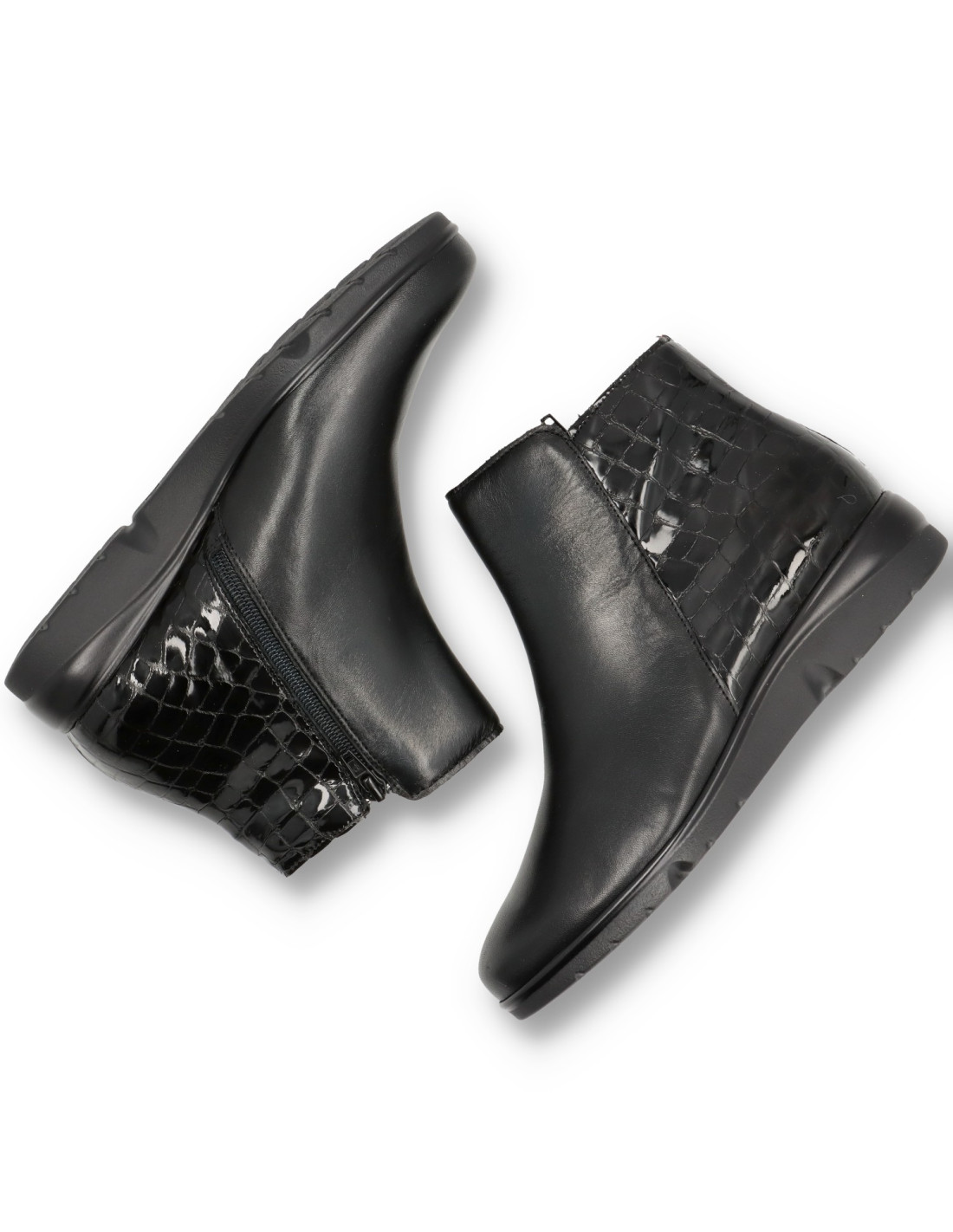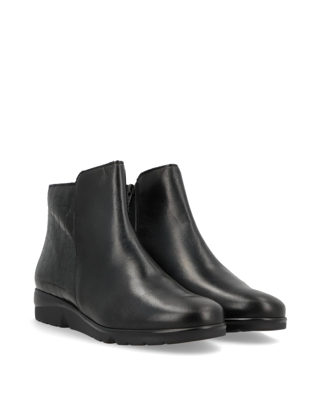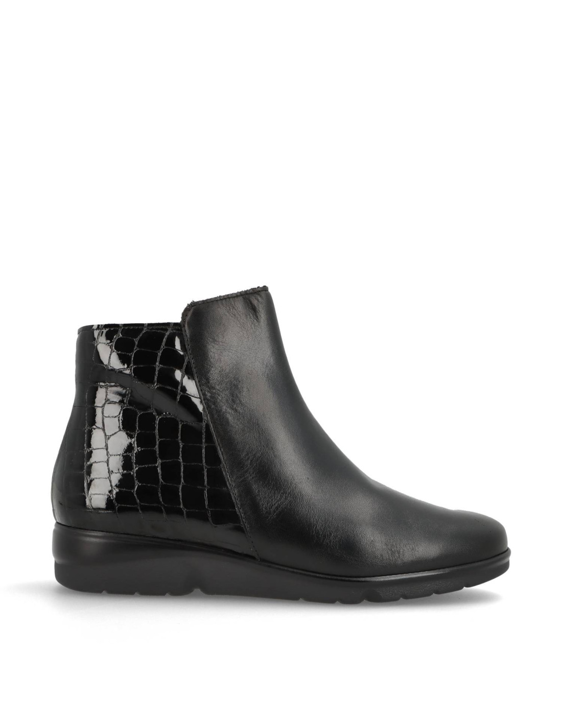 Botín con cuña para mujer modelo 10004 de PITILLOS. De piel 100%vacuno y forro técnico transpirable y absorvente. Plantilla extraible extra-confort. Suela ligera de poliuretano con cuña de unos 3,5cm de altura.
