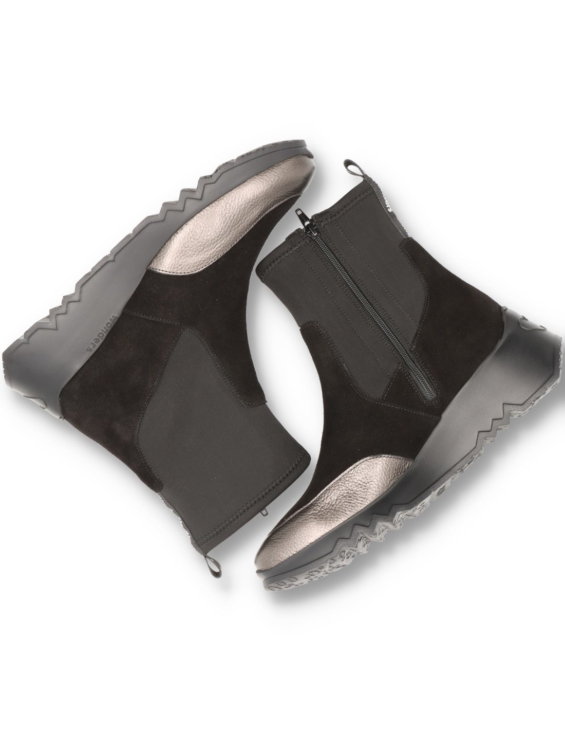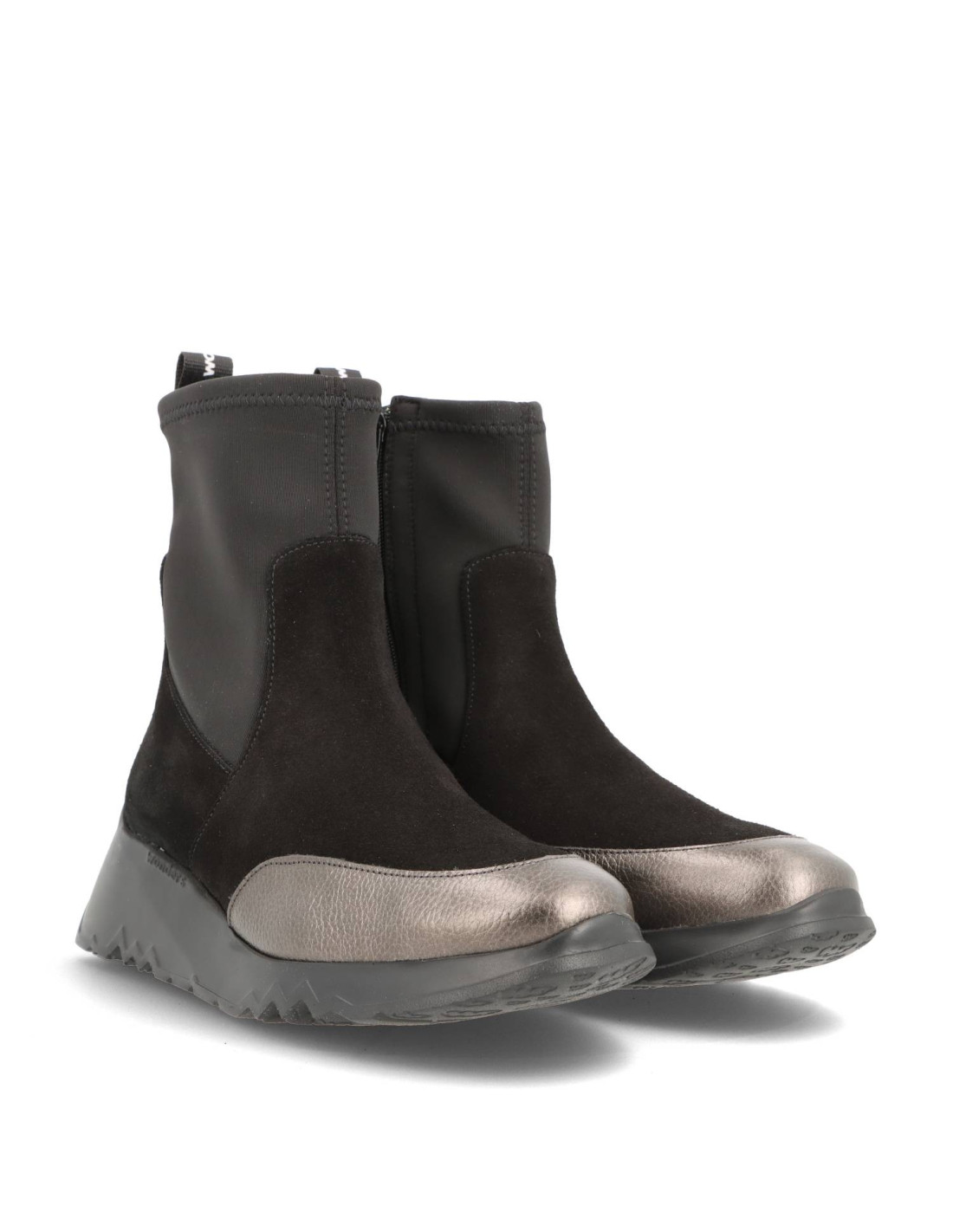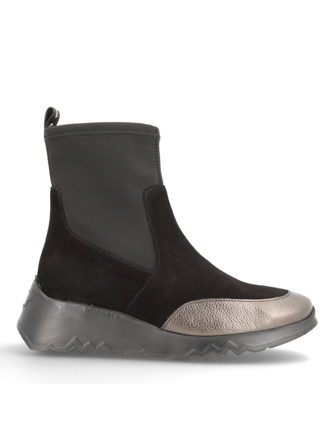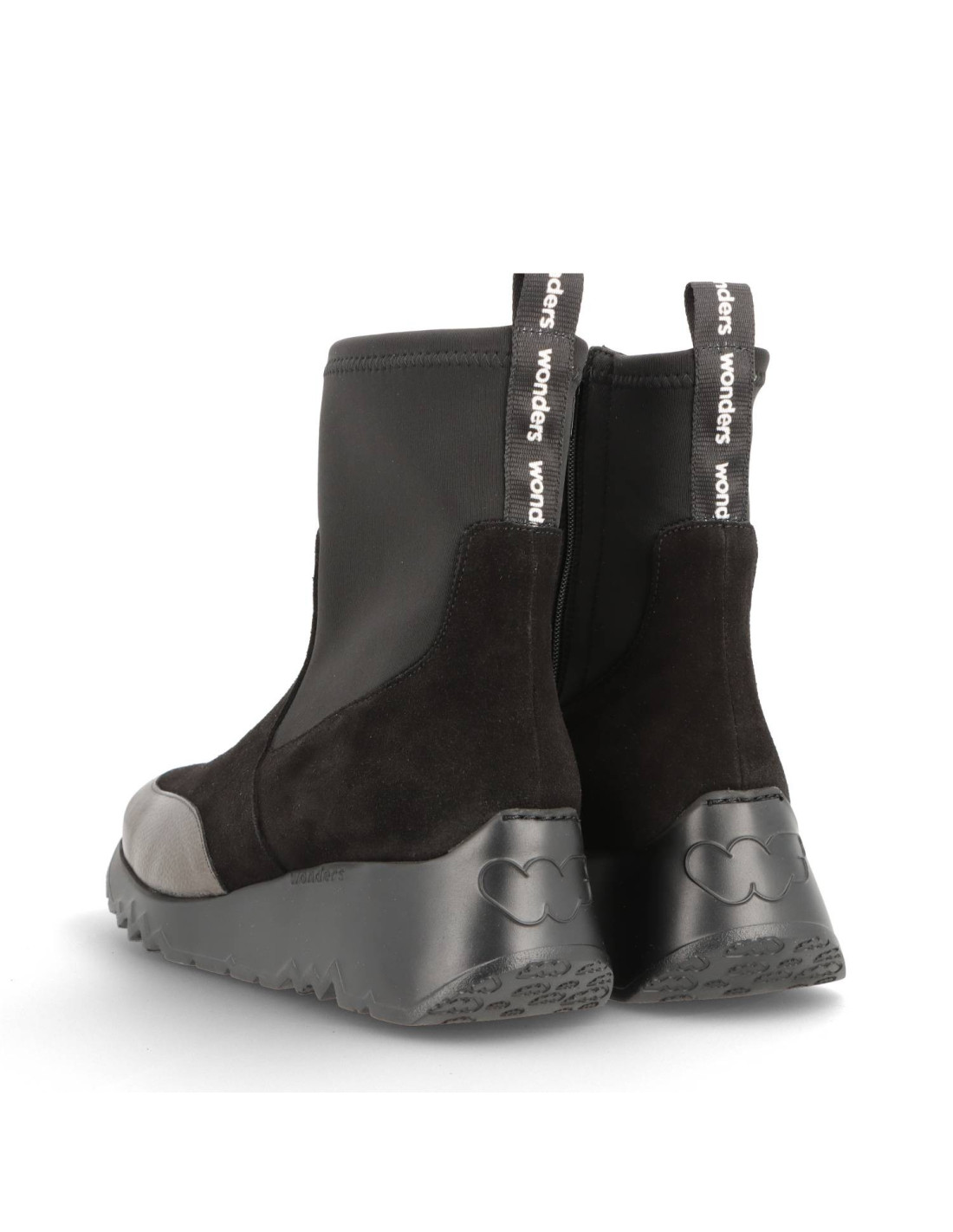 Botín con cuña para mujer E-6752 SINGAPUR de wonders.Botín Deportivo tipo calcetín confeccionado en licra y detalles en piel con una plataforma de 4 cm en su parte más alta. Este modelo minimalista y actual cuenta con un tirador trasero  para asegurar un calce y ajuste perfectos. Su suela desarrollada con tecnología WondersFlyT proporciona una ligereza incomparable y un confort extraordinario. Además, la plantilla interior extraíble de MemoryGel se adapta a la forma del pie, proporcionando una comodidad excepcional en cada paso. Prepárate para la sensación #yeswefly!! Wonders apoya la fabricación responsable vía LEATHERWORKINGGROUP.