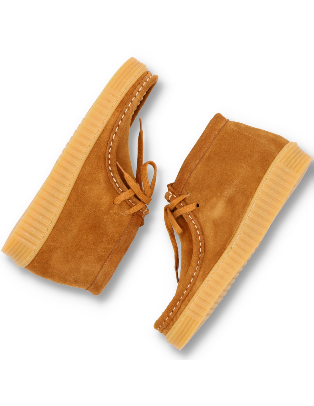 Botín de cordones para mujer 84908WS de R-STAR. Fabricados en piel serraje con bordón y cordones. El forro y las plantillas son de material sintético y llevan piso de goma con 3 cm de grosor en color caramelo.