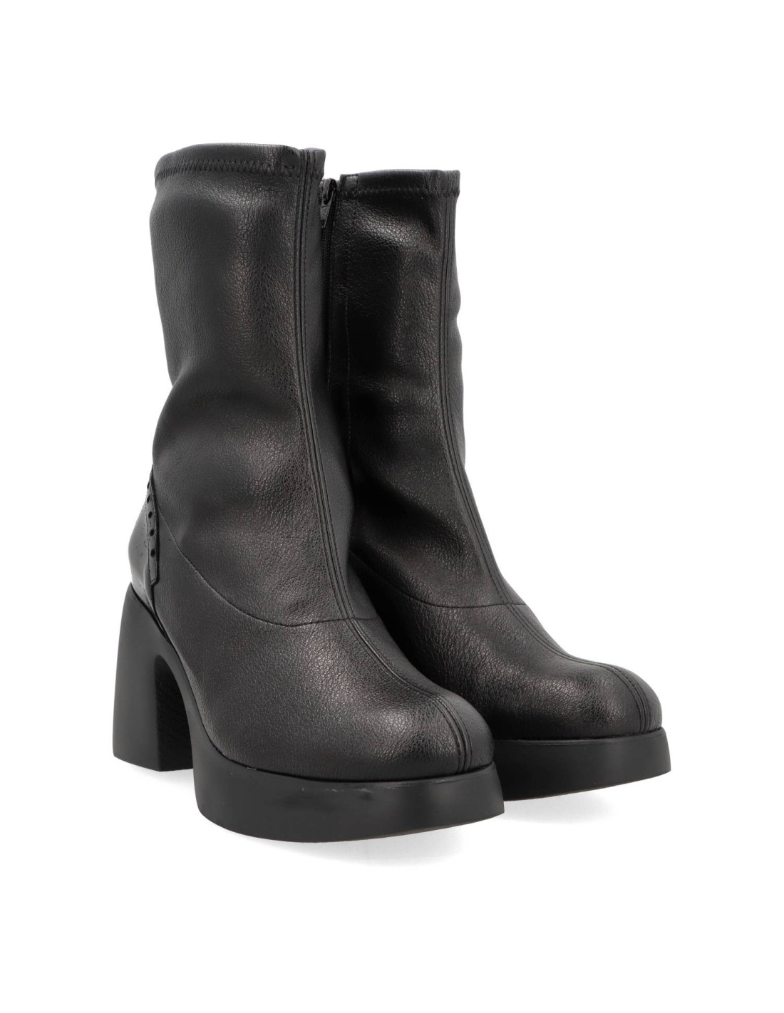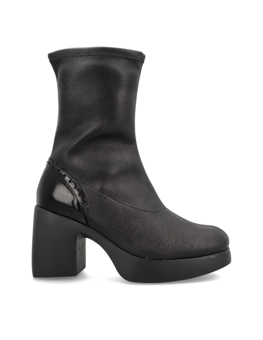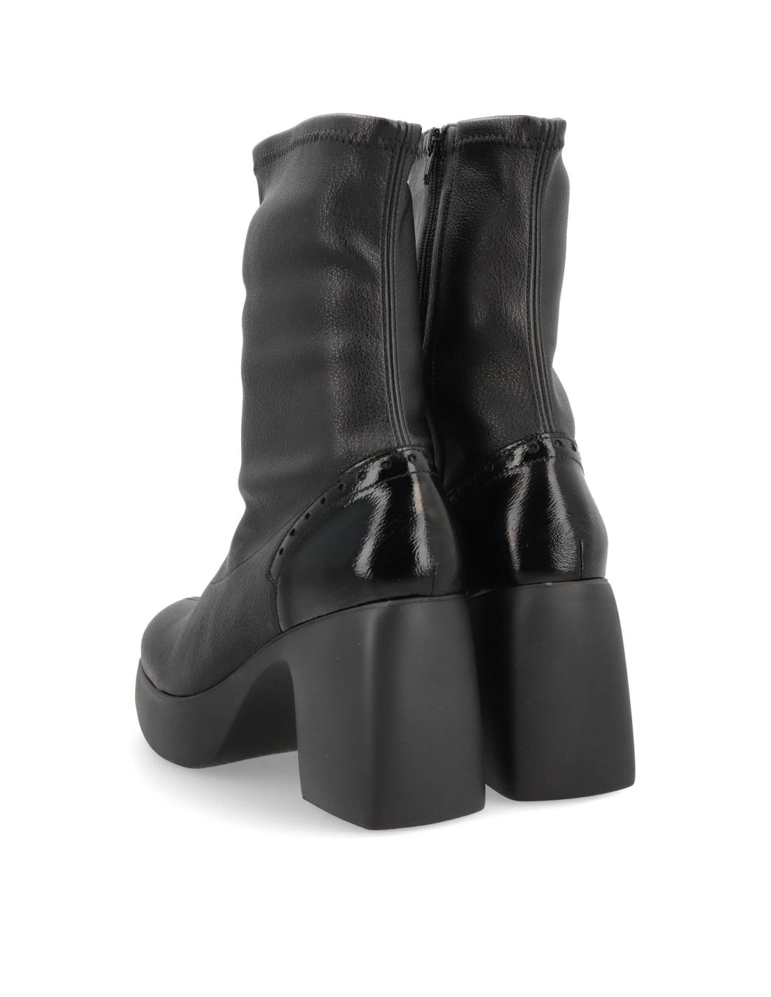 Botín de plataforma para mujer H-4965 PAROS de wonders. Confeccionado en licra efecto napa. Plataforma de unos 3cm y tacón de unos 7cm de altura.
