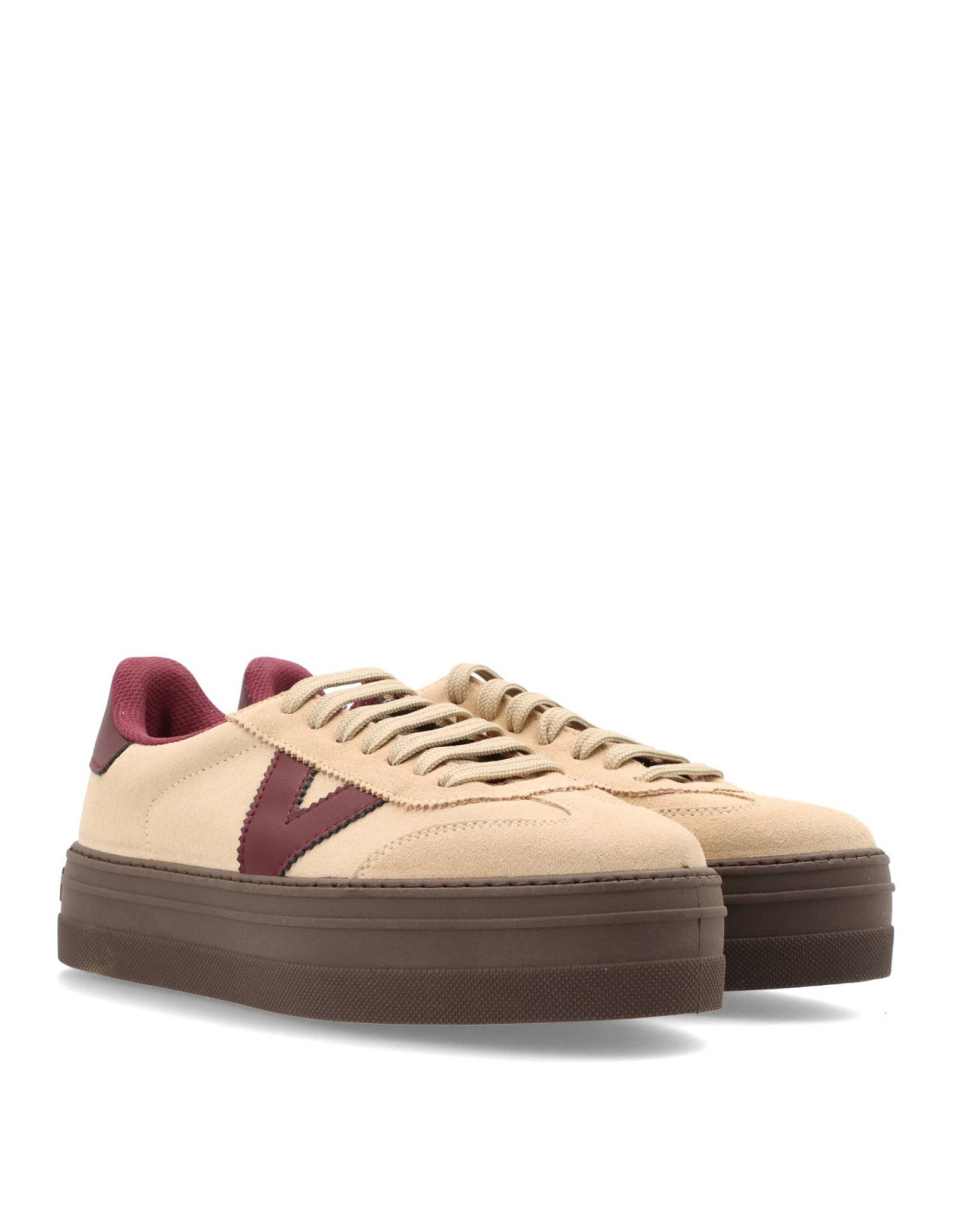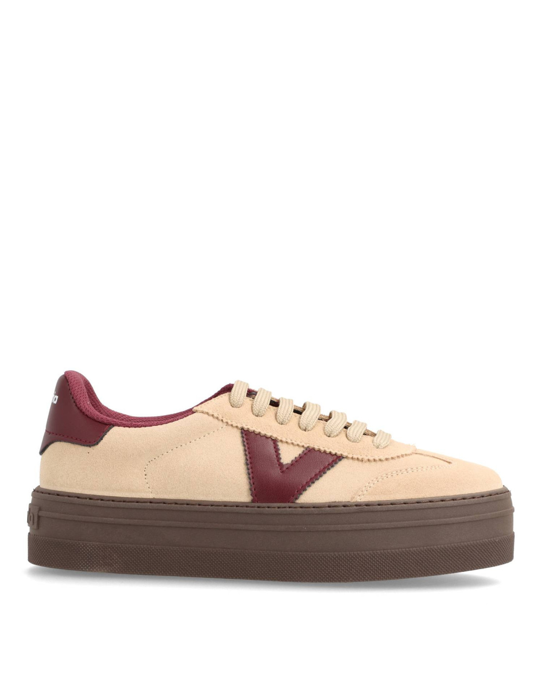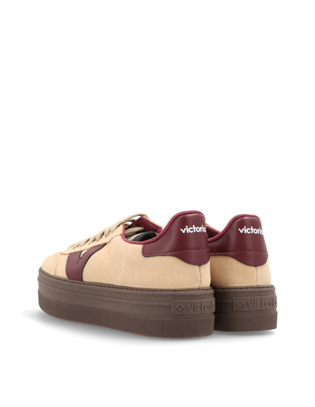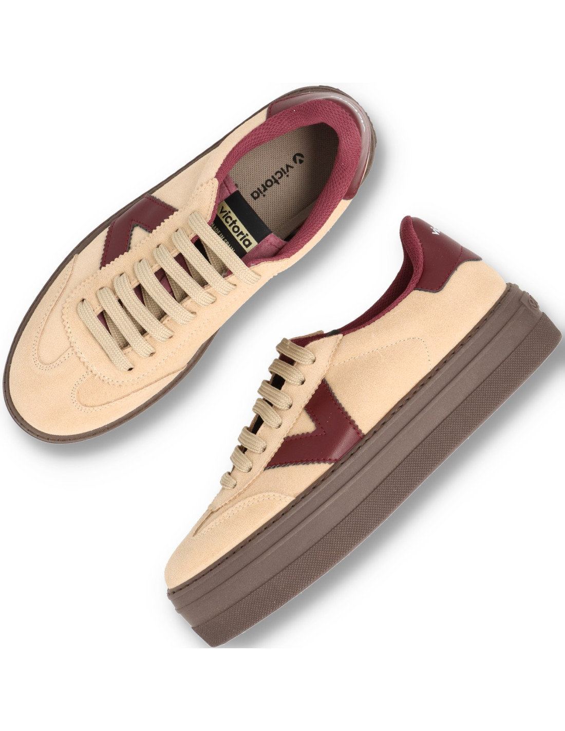 Deportivas de mujer 1092177 BARCELONA de Victoria. Sneakers con cierre de cordones tipo ciclista. De piel de serraje, interior en tejido y planta memory foam. Suela de PVC elaborada a base de aceites vegetales, con plataforma de unos 4cm de altura. HECHO EN ESPAÑA.