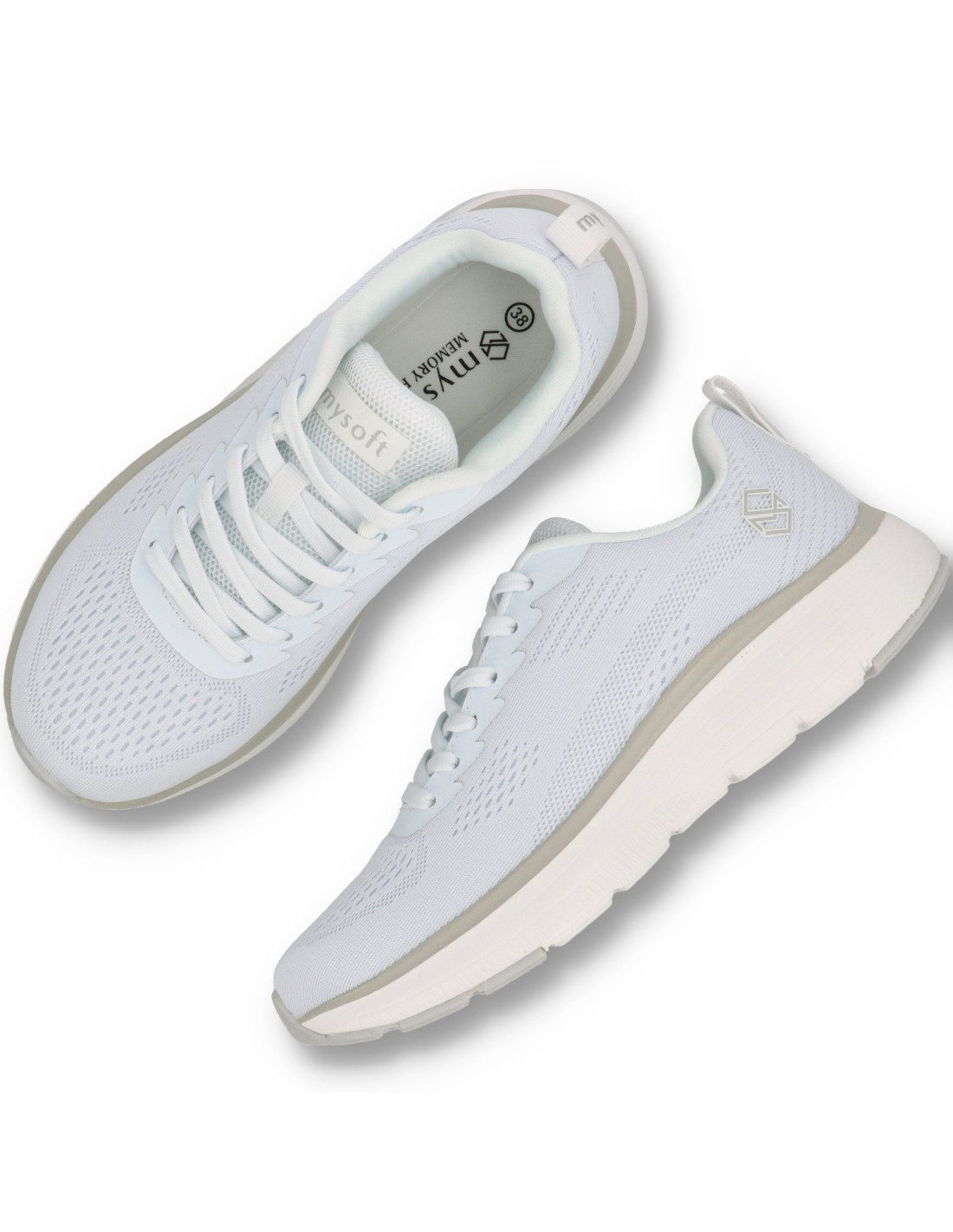 Zapatillas deportivas para mujer 25M272 de Mysoft. sneakers de tejido tipo rejilla, con cierre de cordones. Plantilla interior memory foam extraible, que aporta un plus de comodidad. Suela super ligera y flexible gruesa de unos 2cm.