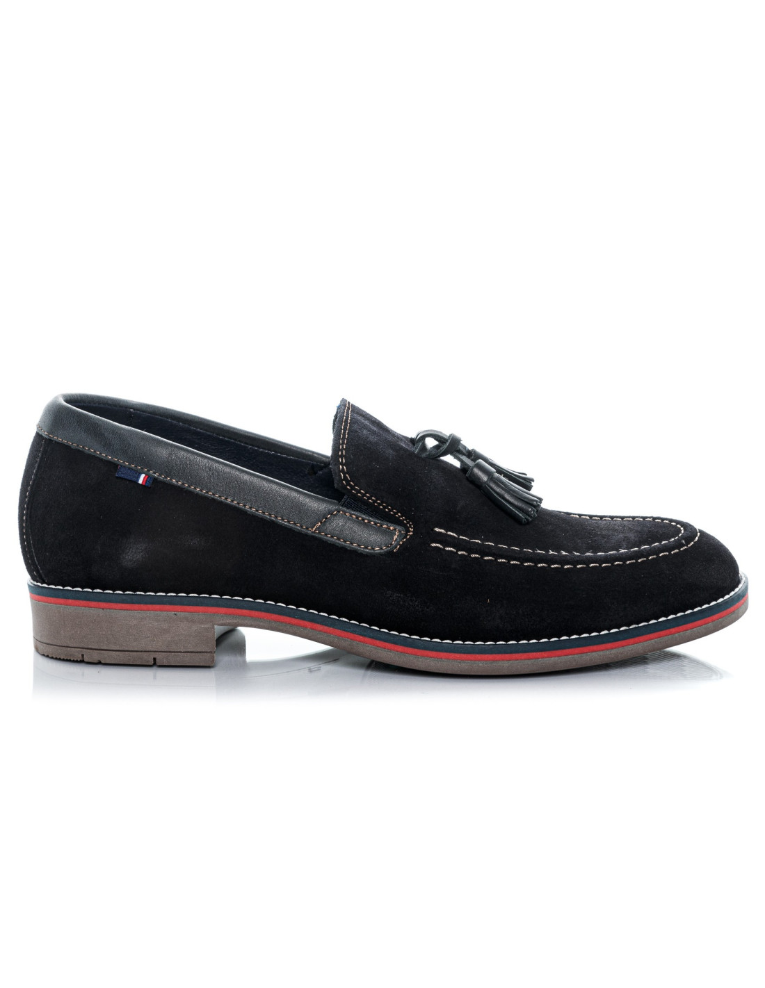 Mocasín para hombre modelo 0224 de R-STAR. Mocasín adorno borlas y vivo en piel flor, resto en piel 100%vacuno acabado afelpado y pespuntes contrastados. Forro antibacterias y plantilla acolchada, suela de goma flexible. HECHO EN ESPAÑA.