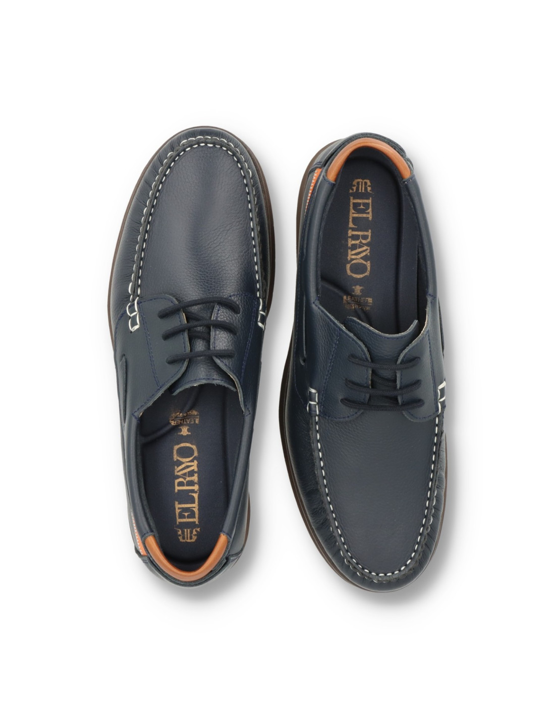 Zapato náutico 4227 de R-STAR. de PIEL 100%VACUNO en color Azul, plantilla memory foam extraíble. Suela de goma ligera y flexible cosida. HECHO EN ESPAÑA