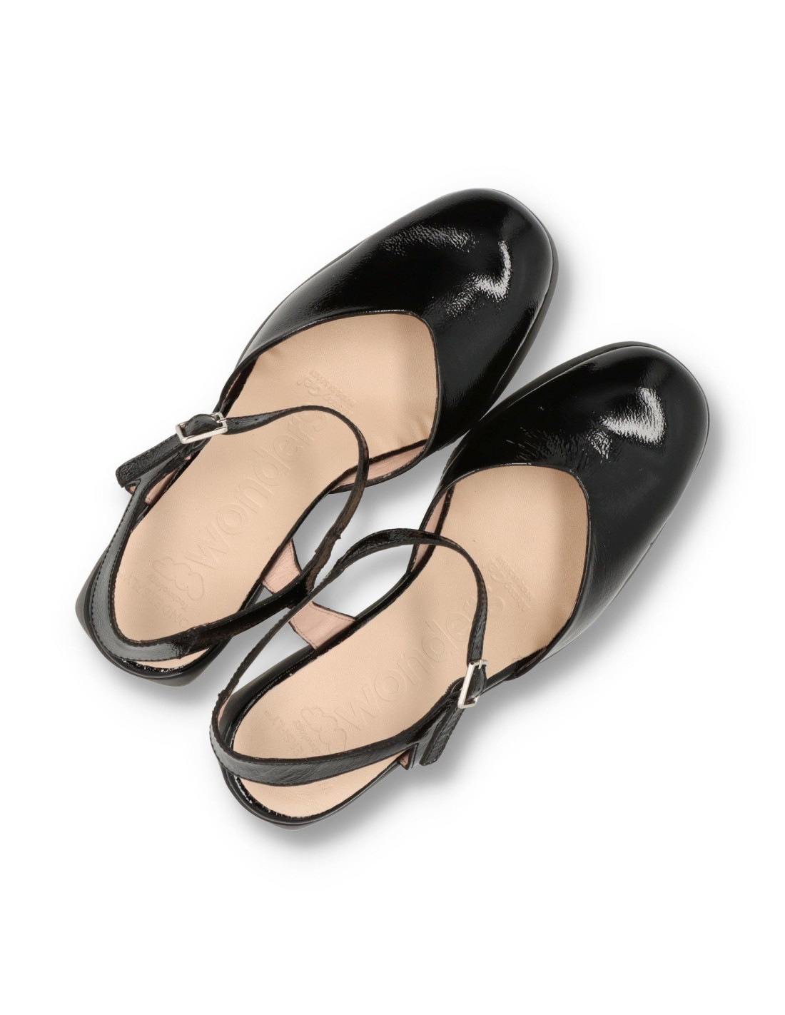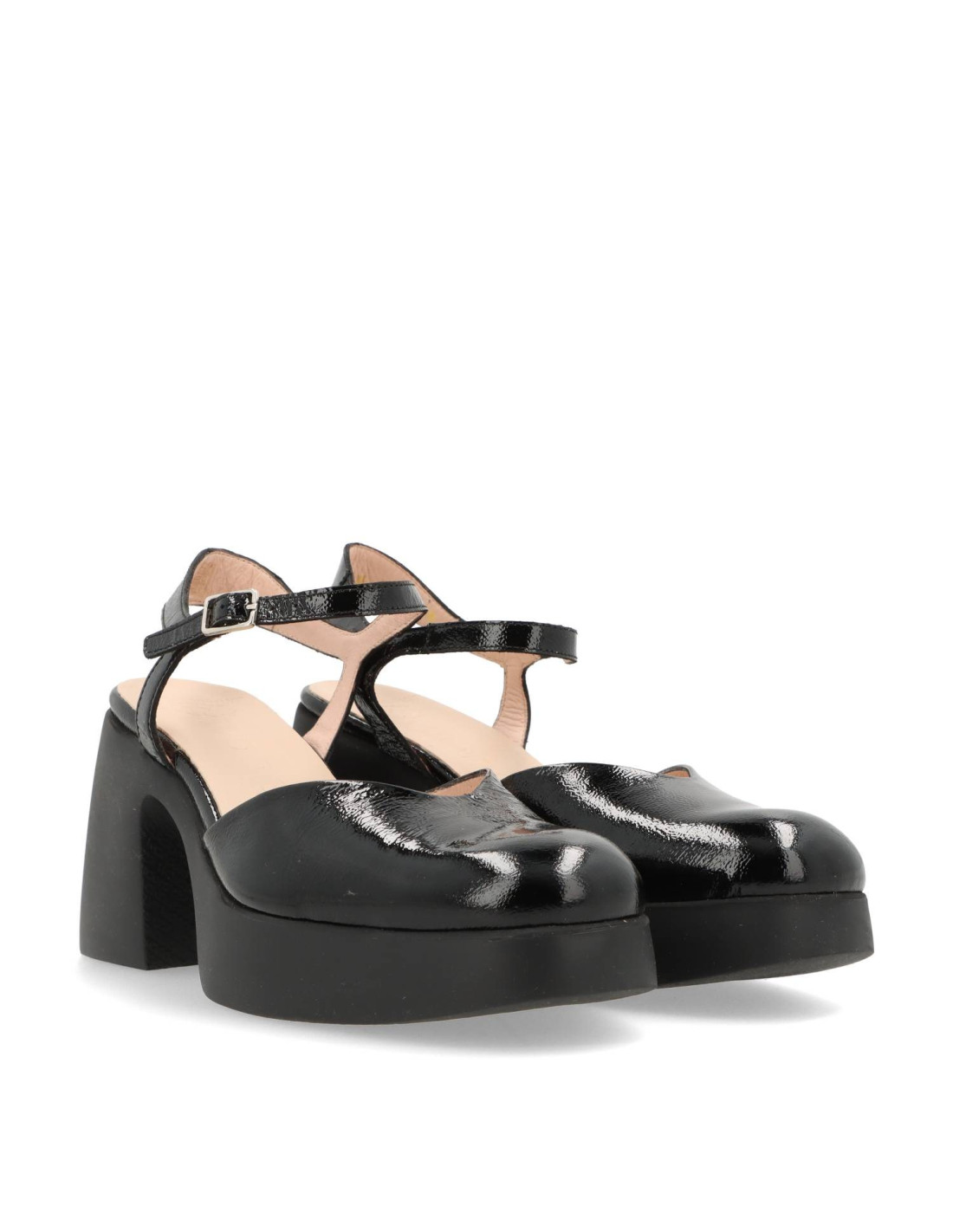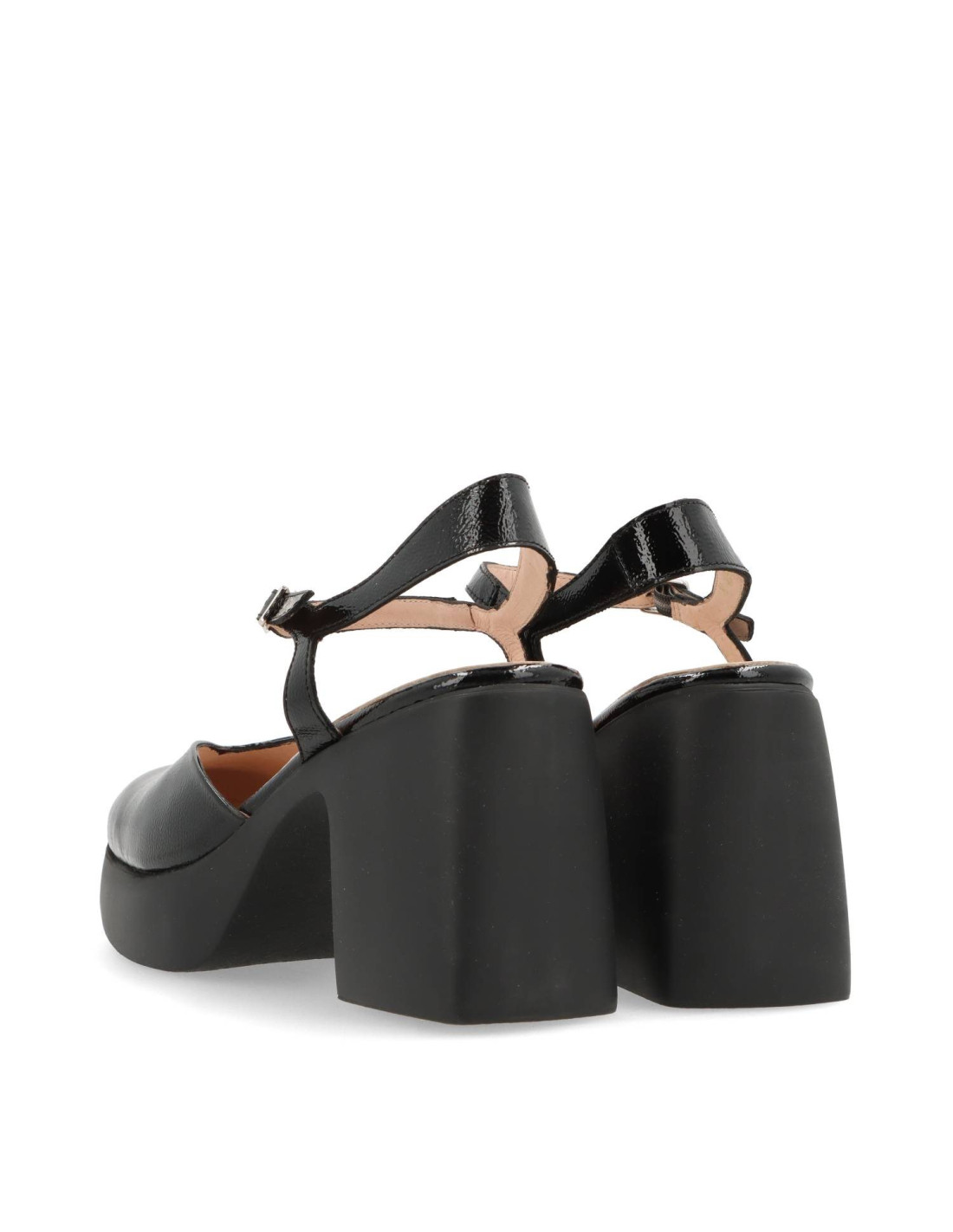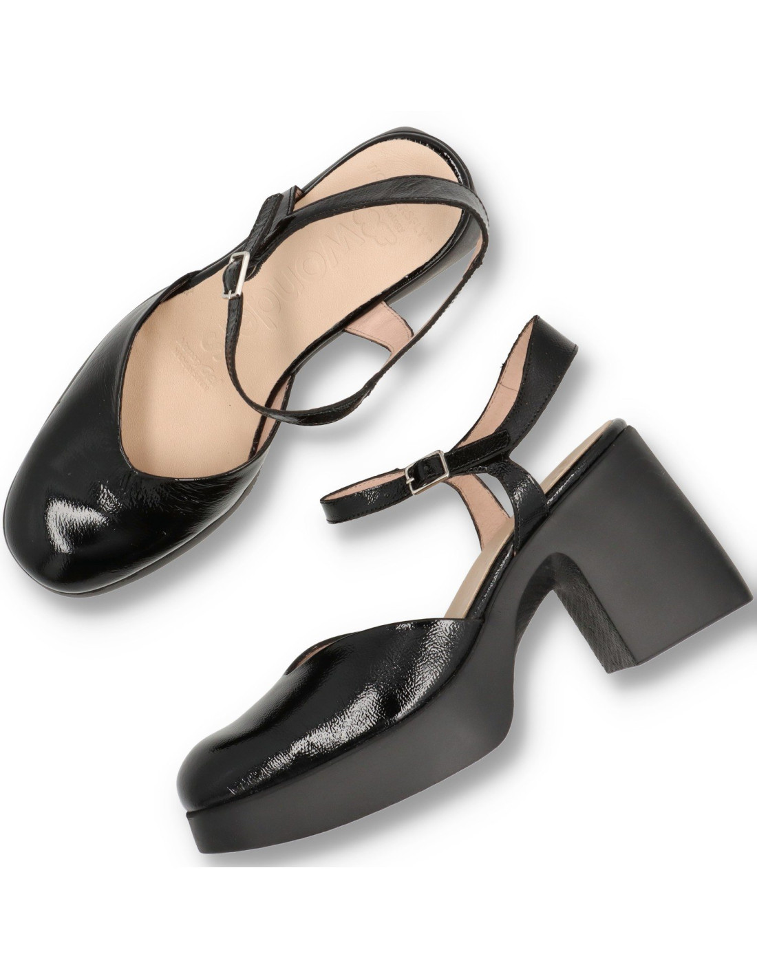 Zapatos de salón con plataforma para mujer H-4951 de Wonders. De piel 100%vacuno acabado charol. Planta acolchada que supone un extra de confort. Talón pulsera con hebilla ajustable y pala en v que mejora el calce. Suela super ligera con tacón ancho y comodo de unos 8cm de altura y 3cm en la parte delantera. HECHO EN ESPAÑA