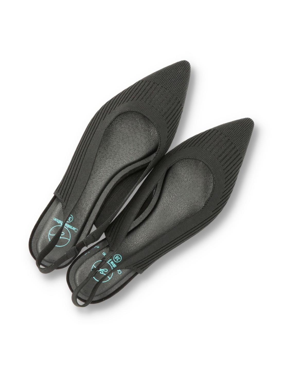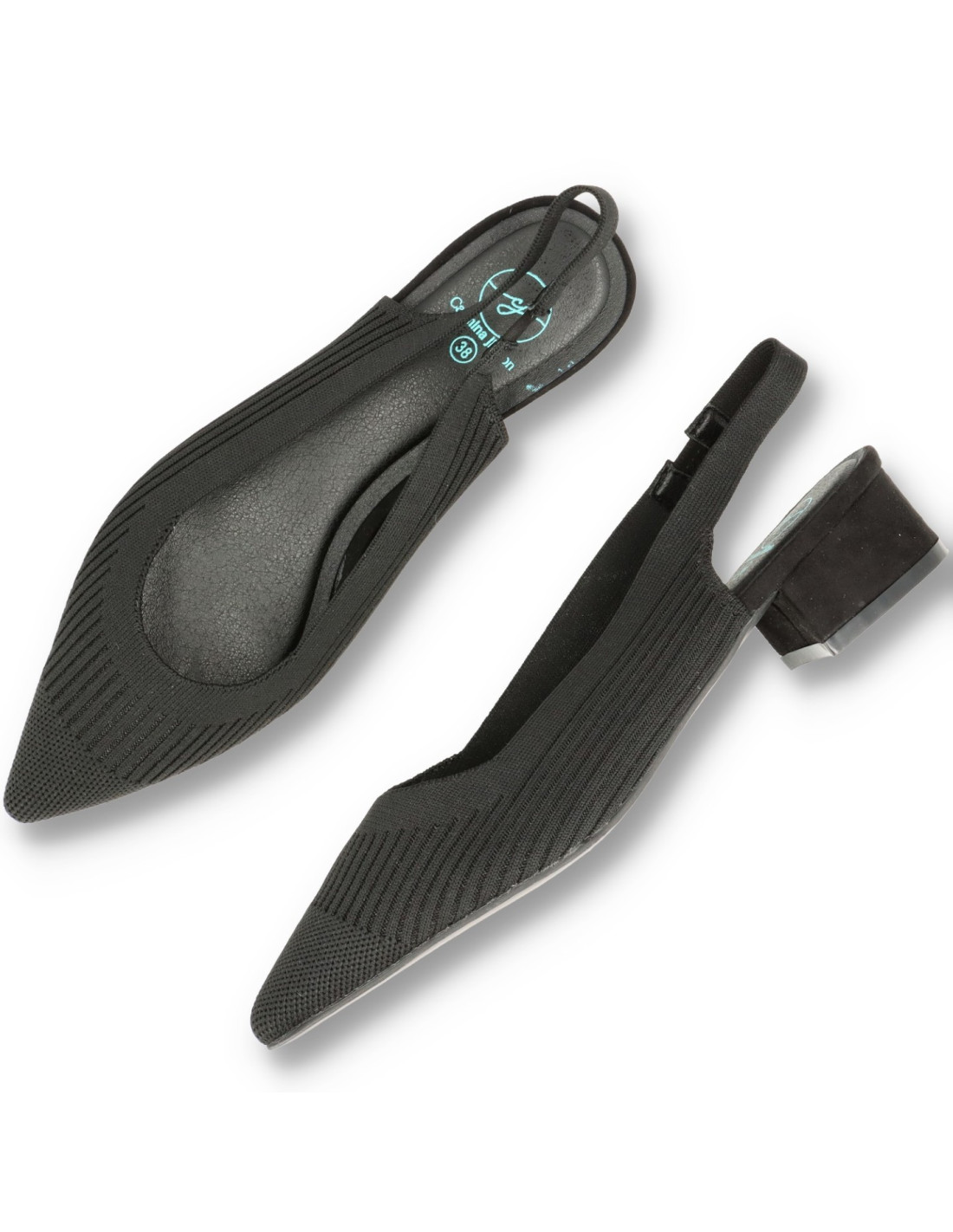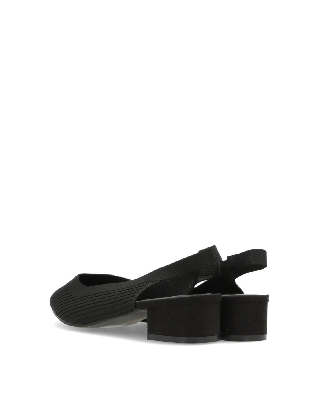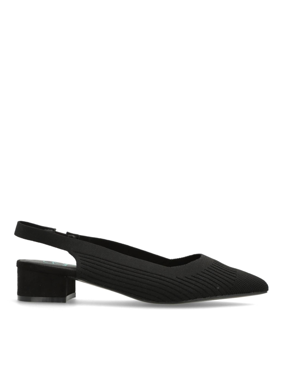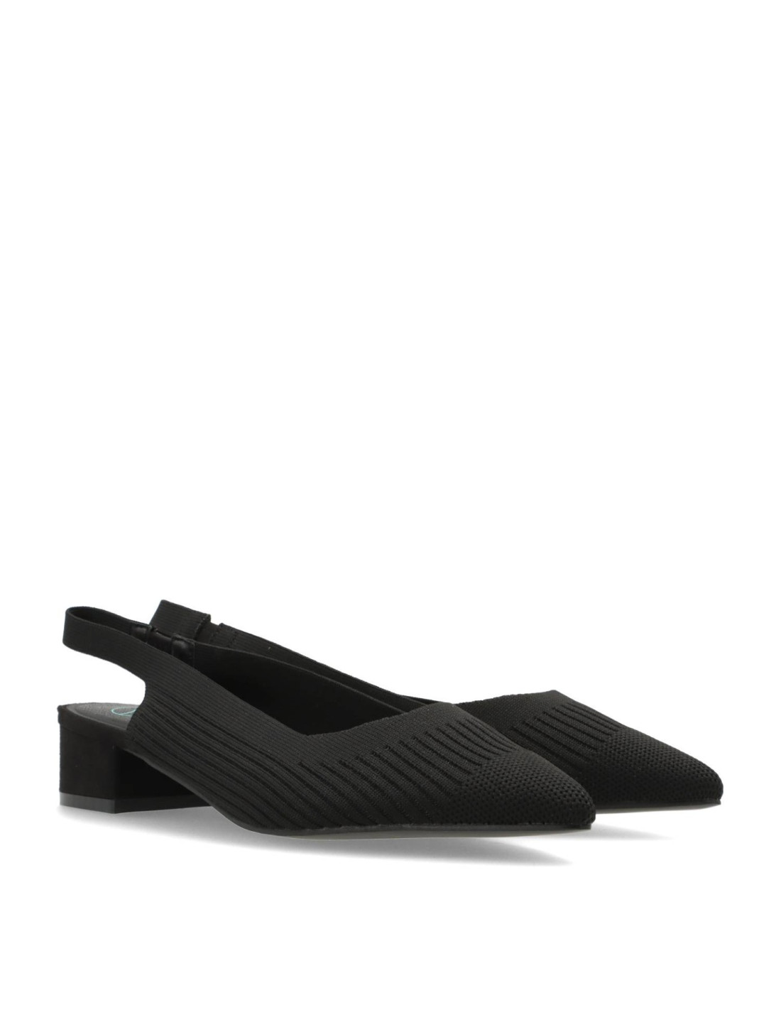 Zapatos de salón para mujer 63-3184 de Carmina Jhilton. Salón de talón descubierto fabricado en licra elástica, se presenta en color Negro y planta interior en memory foam, para una pisada más confortable. Tacón ancho y cómodo de unos 3cm de altura.