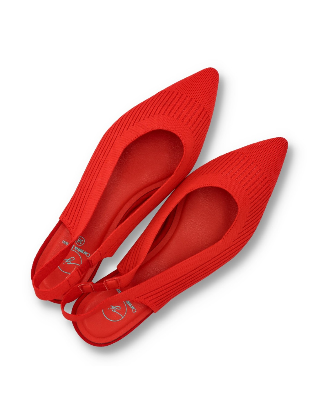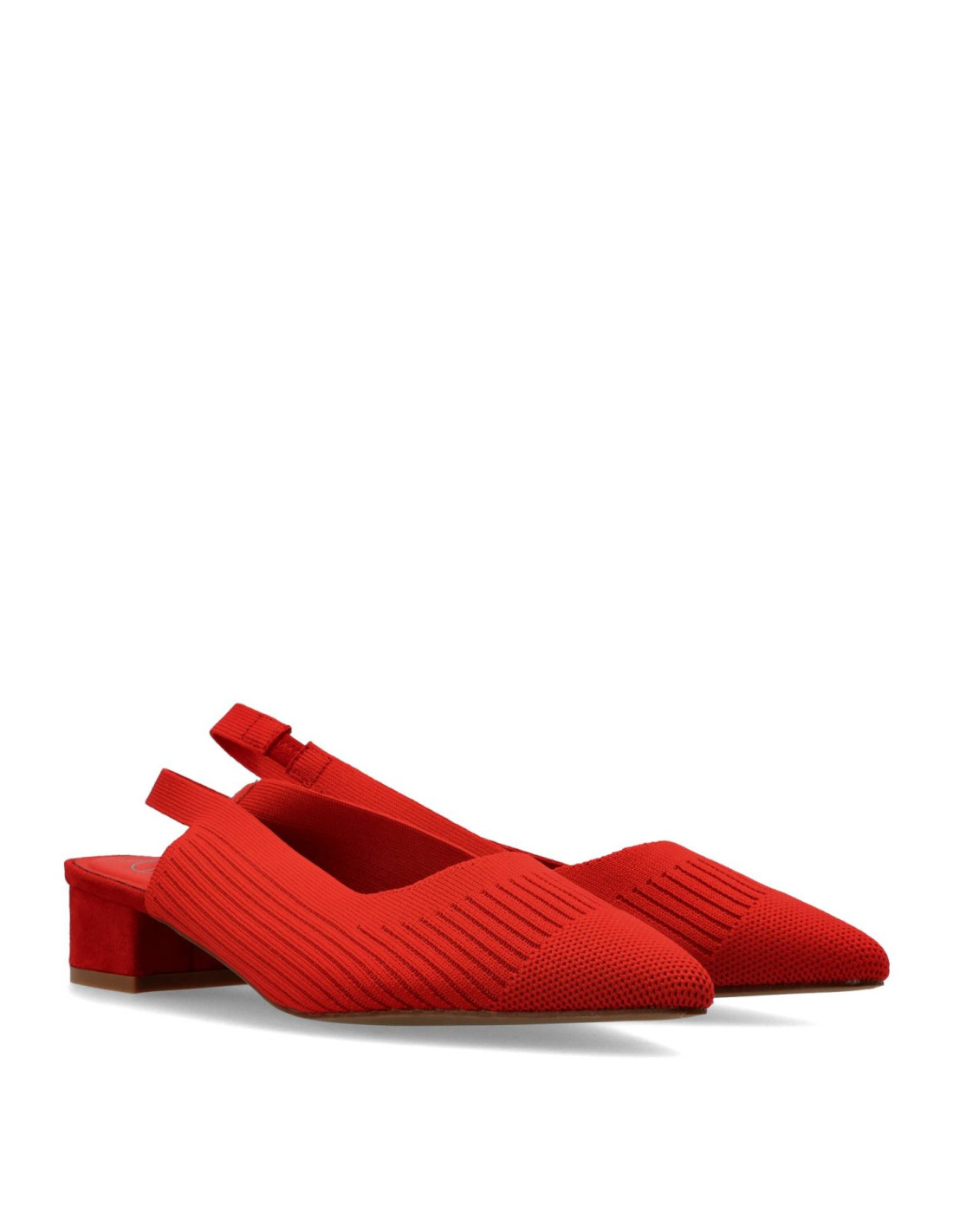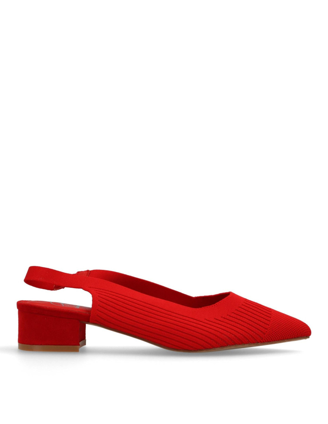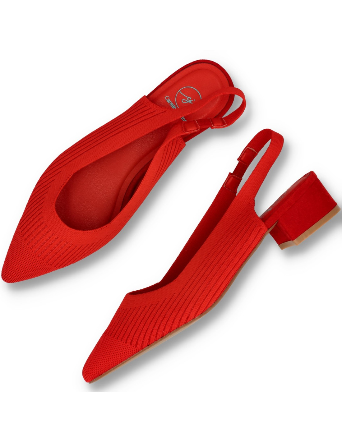 Zapatos de salón para mujer 63-3184 de Carmina Jhilton. Salón de talón descubierto fabricado en licra elástica, se presenta en color Rojo y planta interior en memory foam, para una pisada más confortable. Tacón ancho y cómodo de unos 3cm de altura.