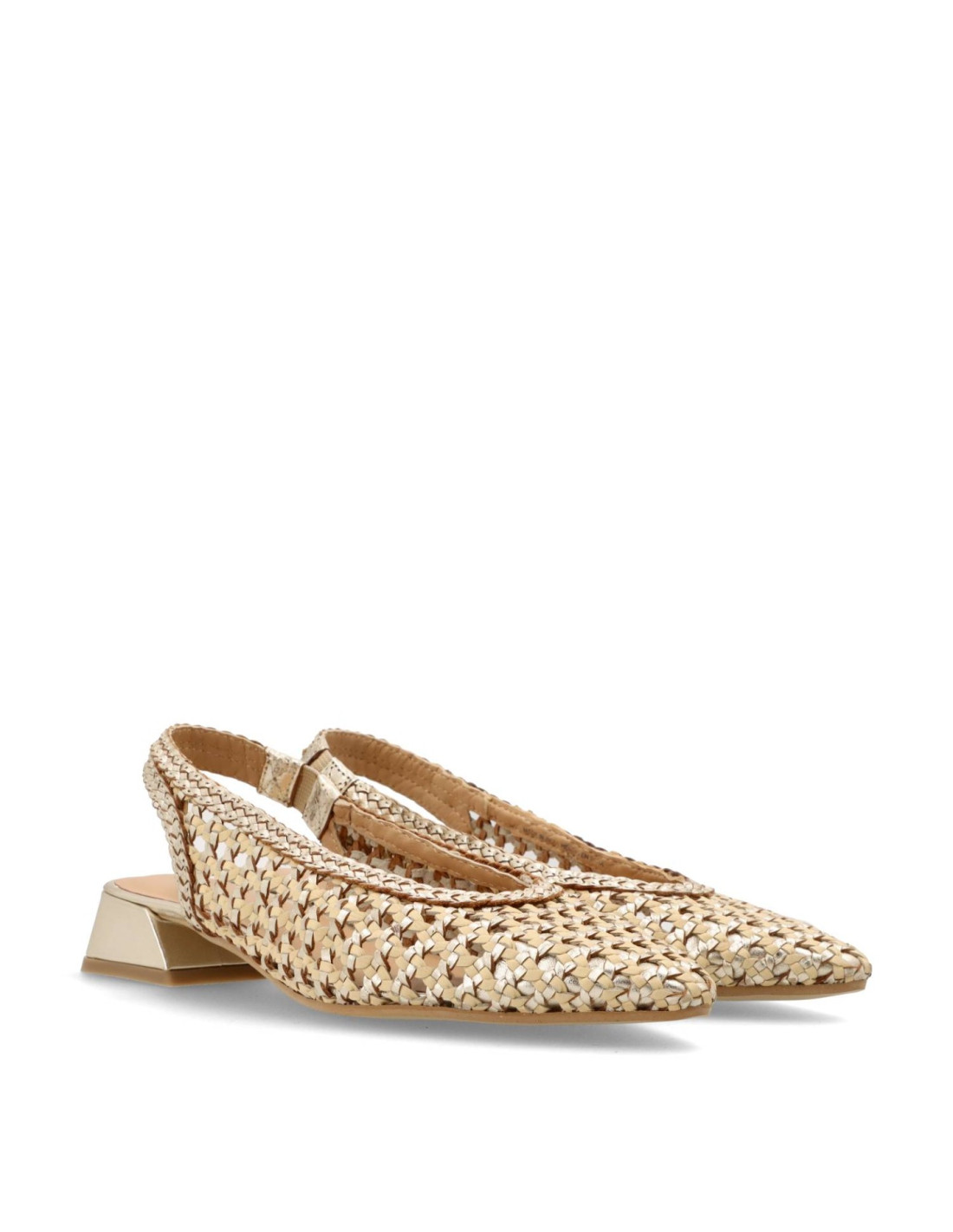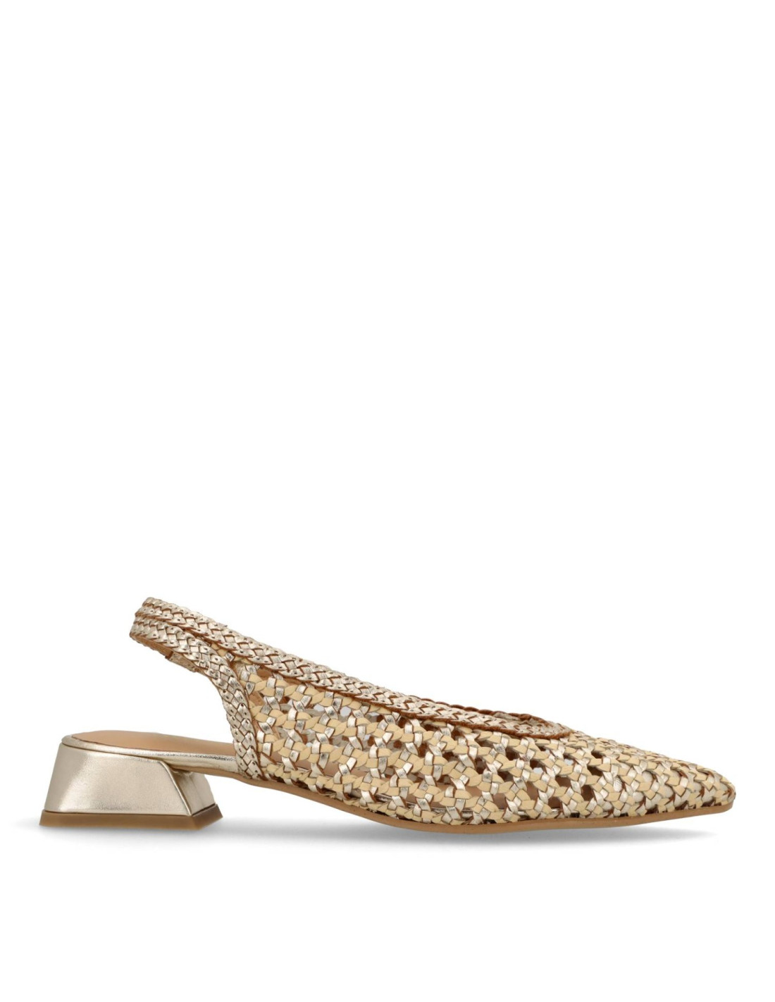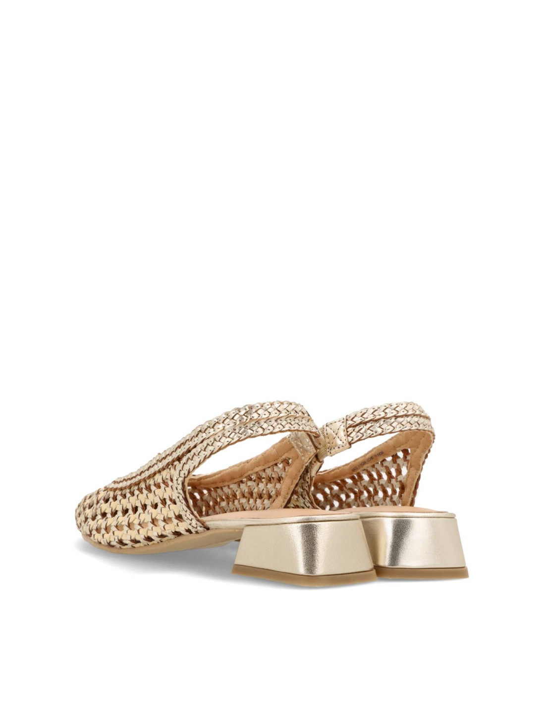 Zapatos de salón para mujer 79251-HOUNSLOW de Gioseppo. Zapatos de tacón estilo salones destalonados de piel metalizada trenzada a mano. Punta afilada. Tacón tipo bloque en forma de trapecio con acabado metalizado. Cuentan con planta acolchada y elástico en el tobillo. Altura tacón: 3 cm.