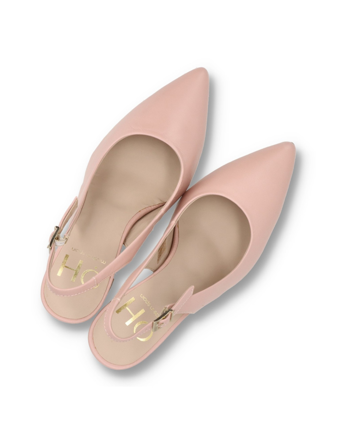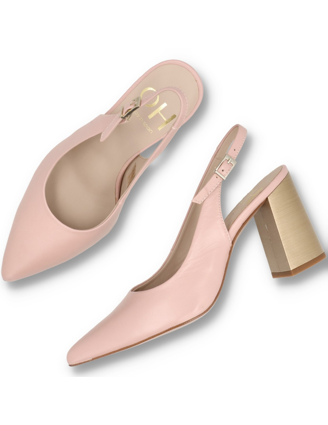 Salón de tacón para mujer modelo M-5020 de OH¡. Fabricado en terciopelo de color Rosa suave , plantilla interior de gel. Tacón ancho acabado metálico de unos 9cm de altura, horma de punta fina. HECHO EN ESPAÑA.