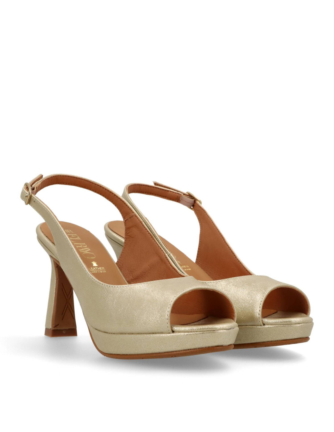 Salon destalonado con tacón para mujer 1615A de Daniela Vega. De PU Leather en distintas texturas, planta interior de piel 100%vacuno acolchada y forro de material sostenible. Salón tipo PEEPTOES con tacón de unos9cm de altura y plataforma de 2cm. Talón descubierto con hebilla ajustable. HECHO EN ESPAÑA