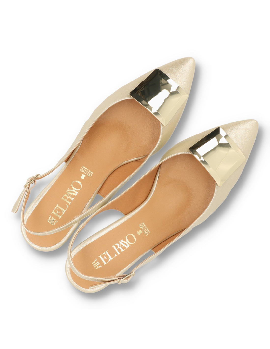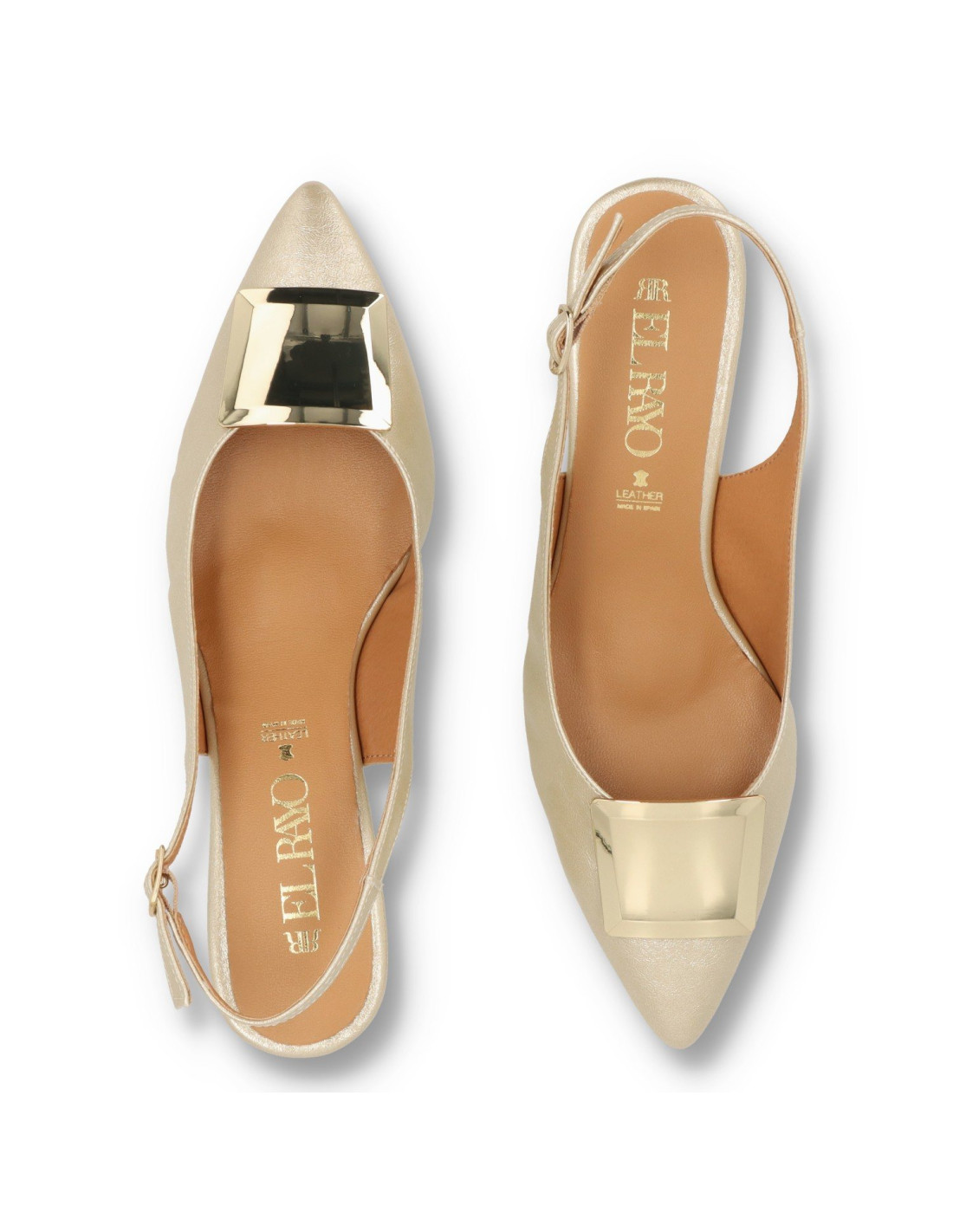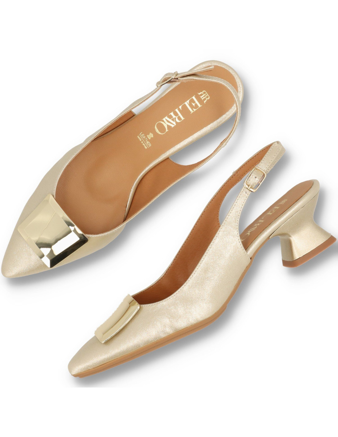 Salón con tacón para mujer 2628 de Daniela Vega. De Pu Leather y plantilla interior de piel 100%vacuno acolchada, forro de material sostenible. Taón tipo carrete lacado de unos 4cm de altura. Talón descubierto con hebilla ajustable. Suela de goma felxibe y horma de punta fina. HECHO EN ESPAÑA