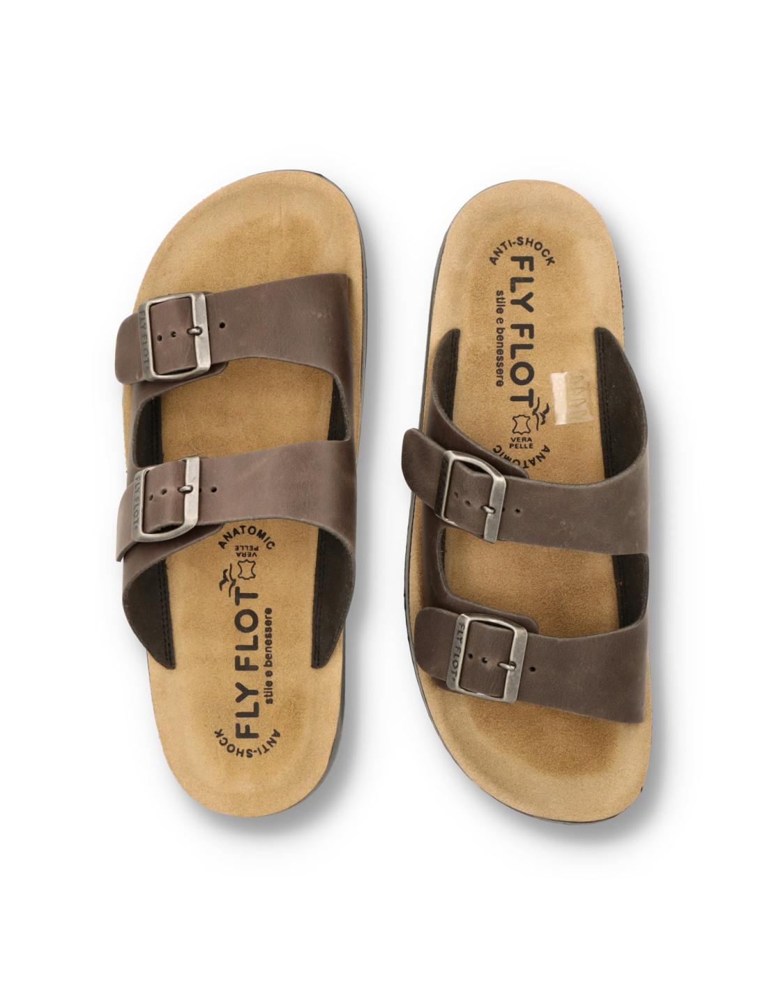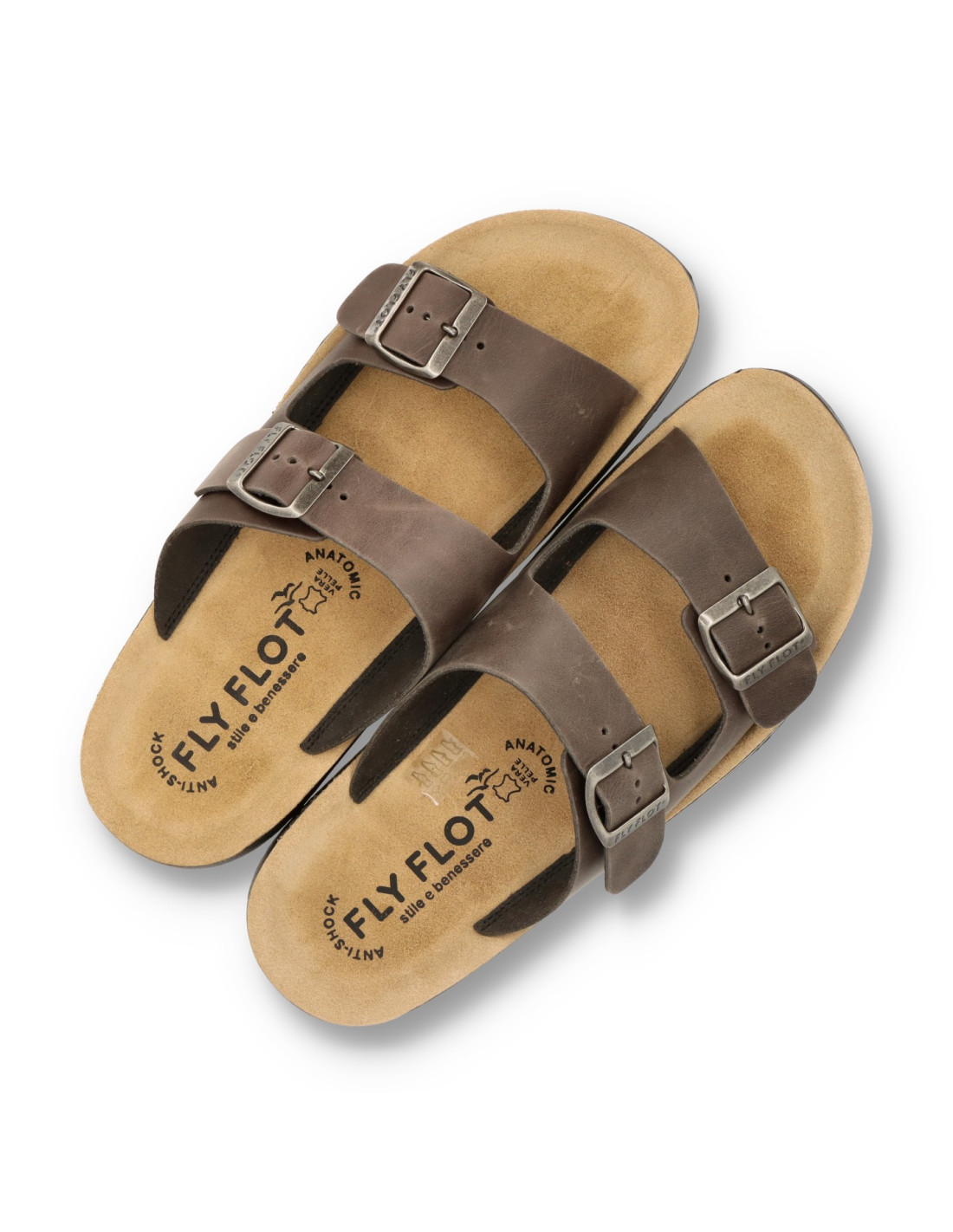 Sandalias para hombre 78-171 de Fly Flot. Sandalia clásica con el corte de piel acabado Nobuk, empeine con hebillas ajustables. Suela super ligera con sistema antishock. Made in Italy.