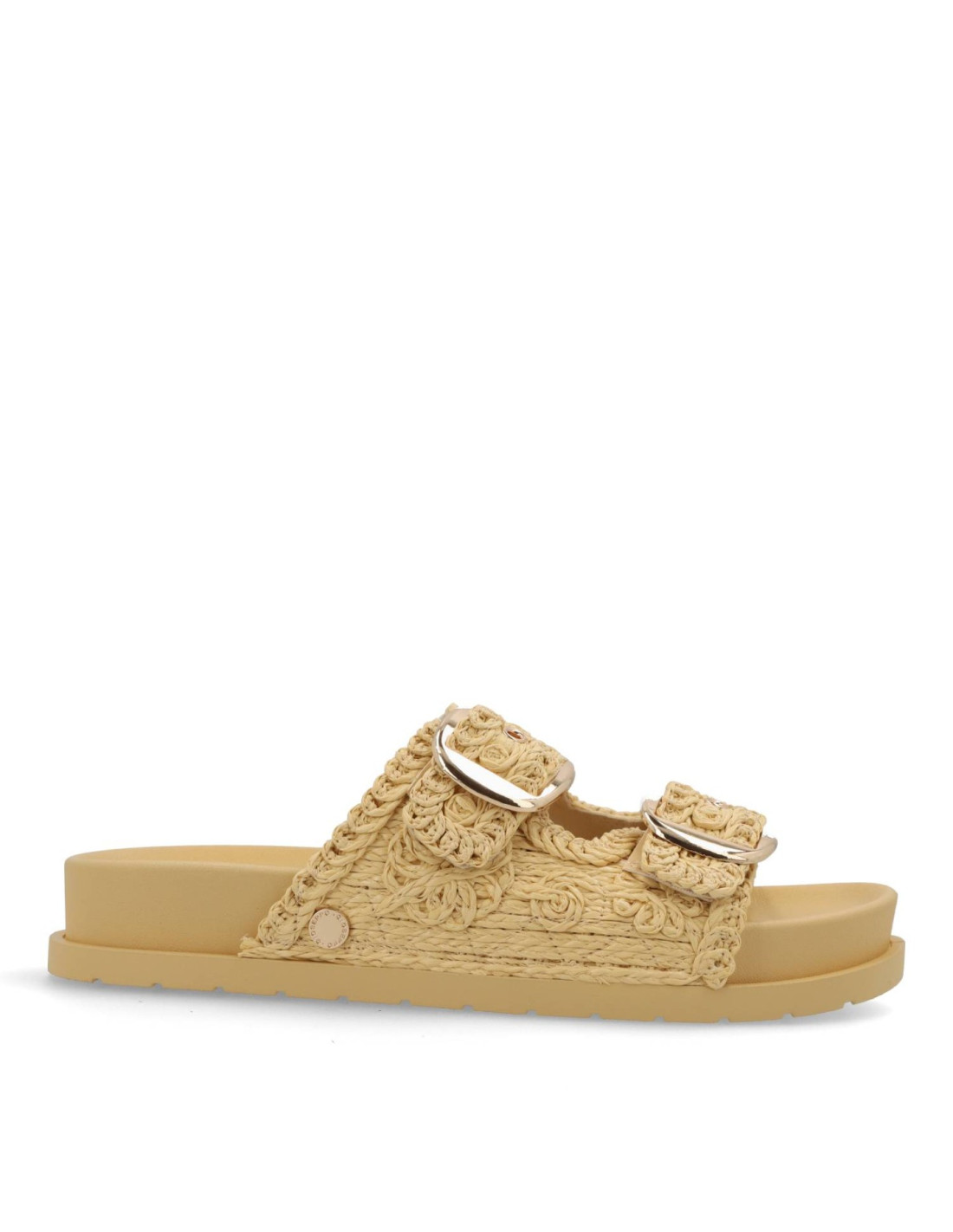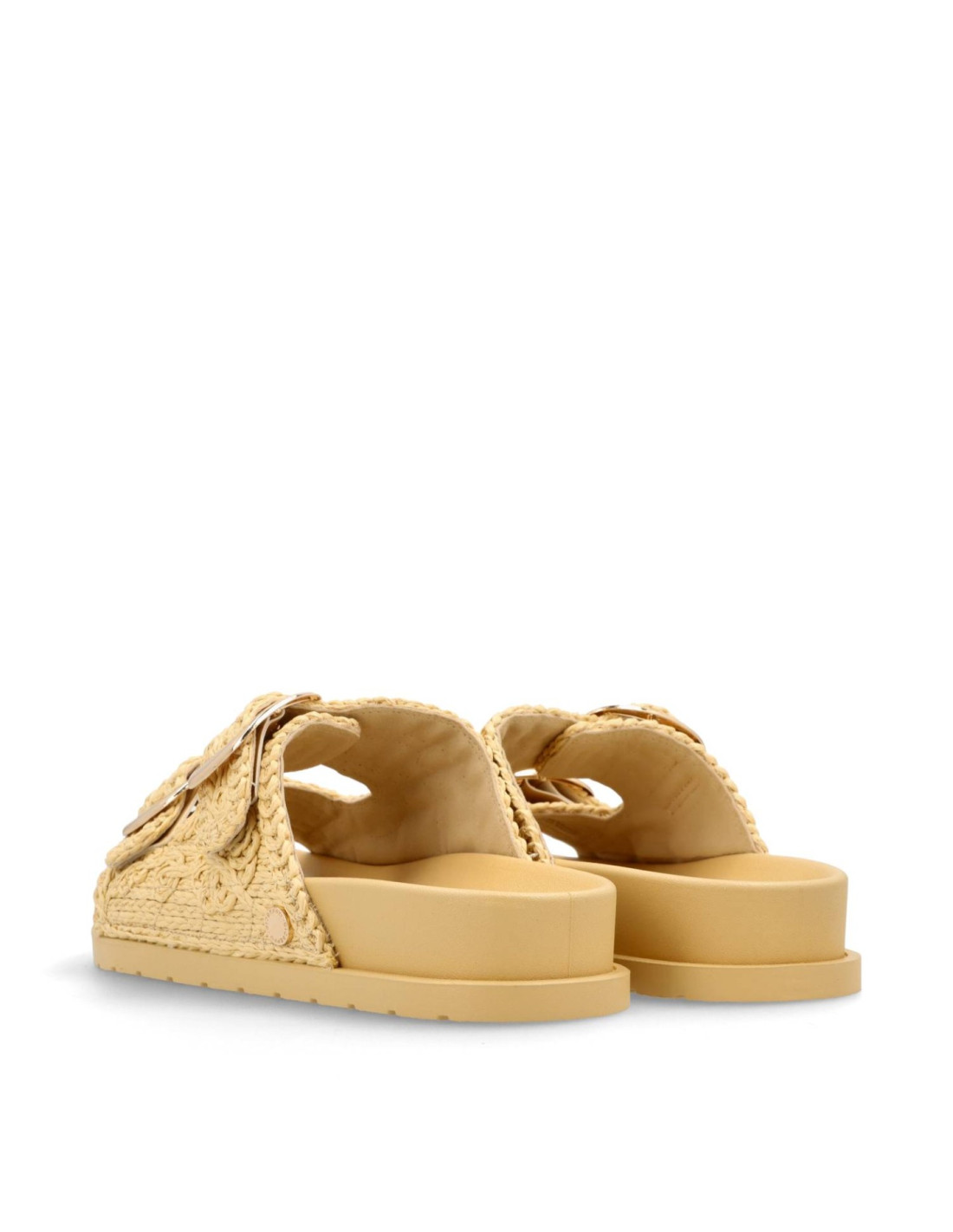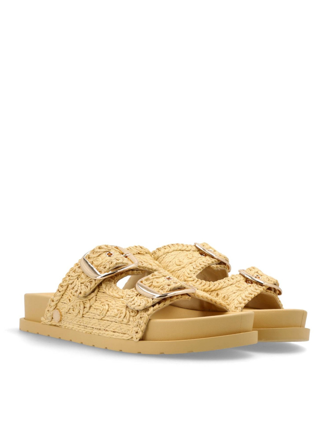 Sandalias Bio para mujer 78374-EULEN de Gioseppo. Sandalias efecto rafia trenzada con motivos florales y hebillas. Cuentan con planta tipo bio forrada y con diseño ergonómico para repartir el peso de manera equilibrada. Altura plataforma: 4 cm.