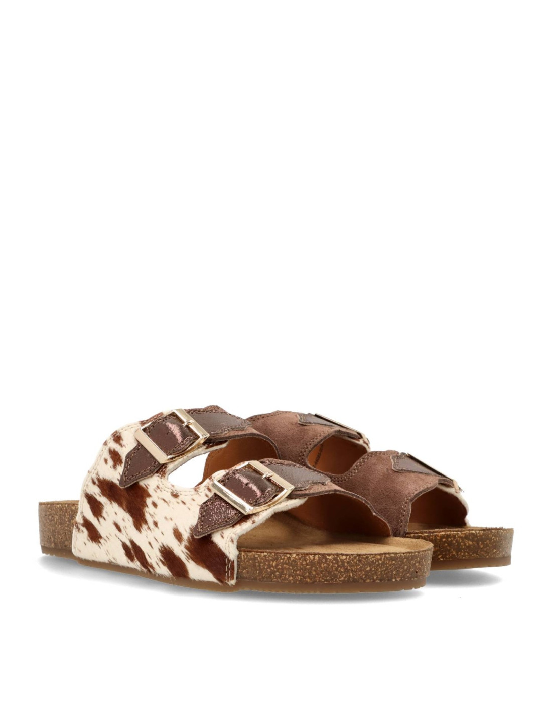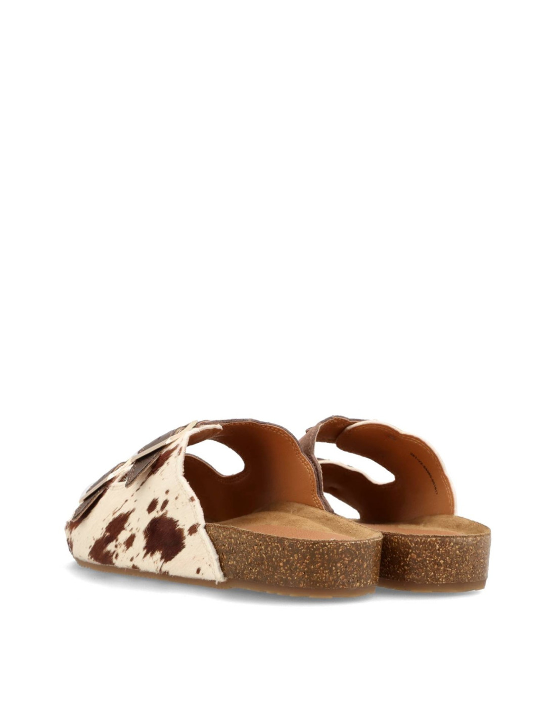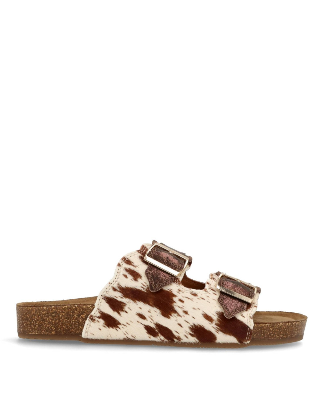 Sandalias para mujer 54085 LIN de Mustang. Sandalias tipo BIO para esta sandalia estilo UGGLY con planta anatómica que aporta una pisada super confortable. En acabado print animal vaca, con hebillas ajustables, piso de goma.