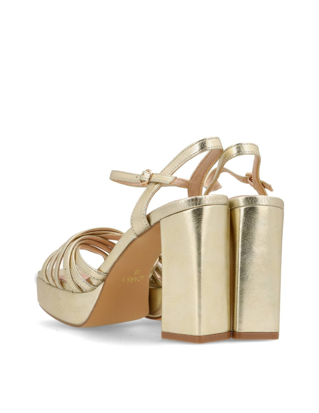 Sandalias de mujer con plataforma 494K911 de Azarey. Sandalia de PU Leather acabado metalizado. Plantilla interior de piel con memory gel para una pisada más confortable. Tacón ancho y cómodo de unos 12cm de altura, plataforma delantera de unos 3.5cm de altura.