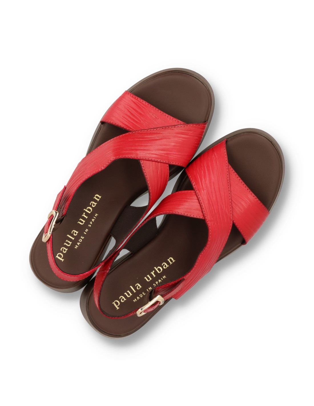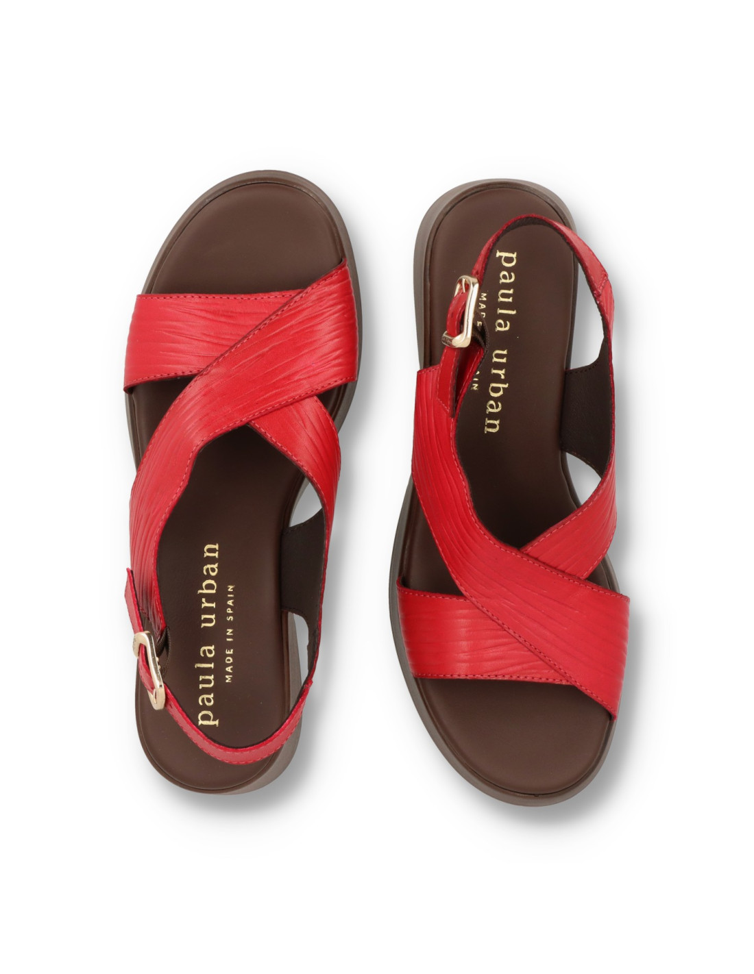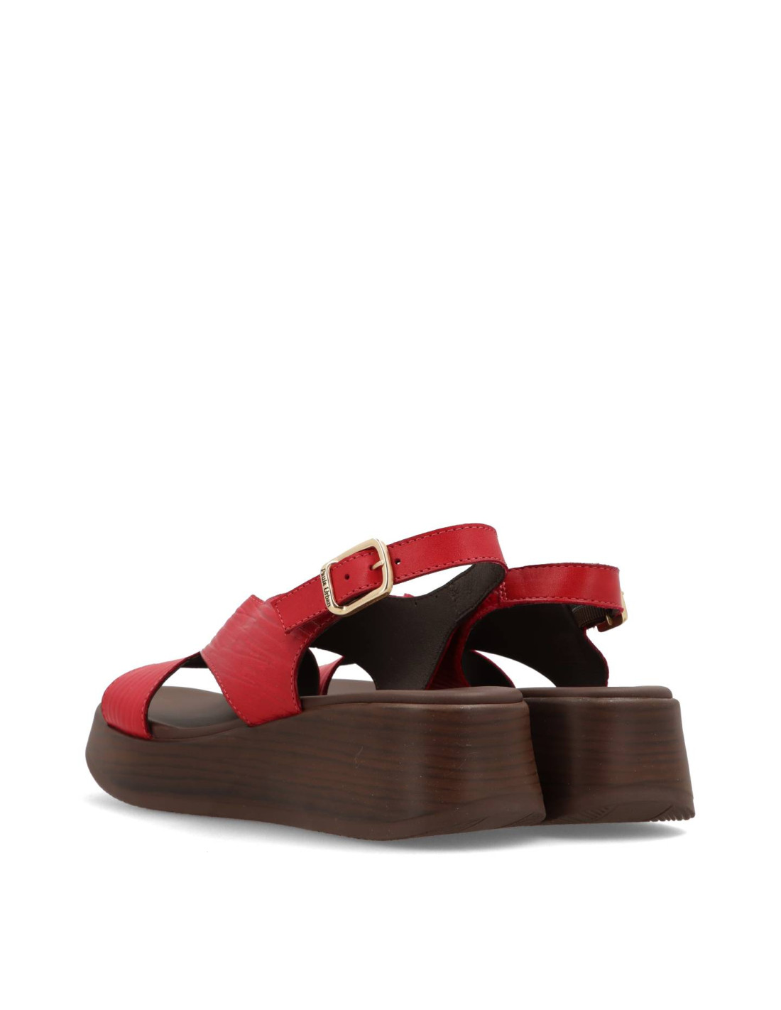 Sandalia de cuña para mujer 33-833 de PAULA URBAN. Sandalia toda de piel 100%vacuno en color CEREZA, con planta interior con tecnología Flot Up System. Piso super ligero de poliuretano con una altura de unos 5,5cm. FABRICADO EN ESPAÑA.