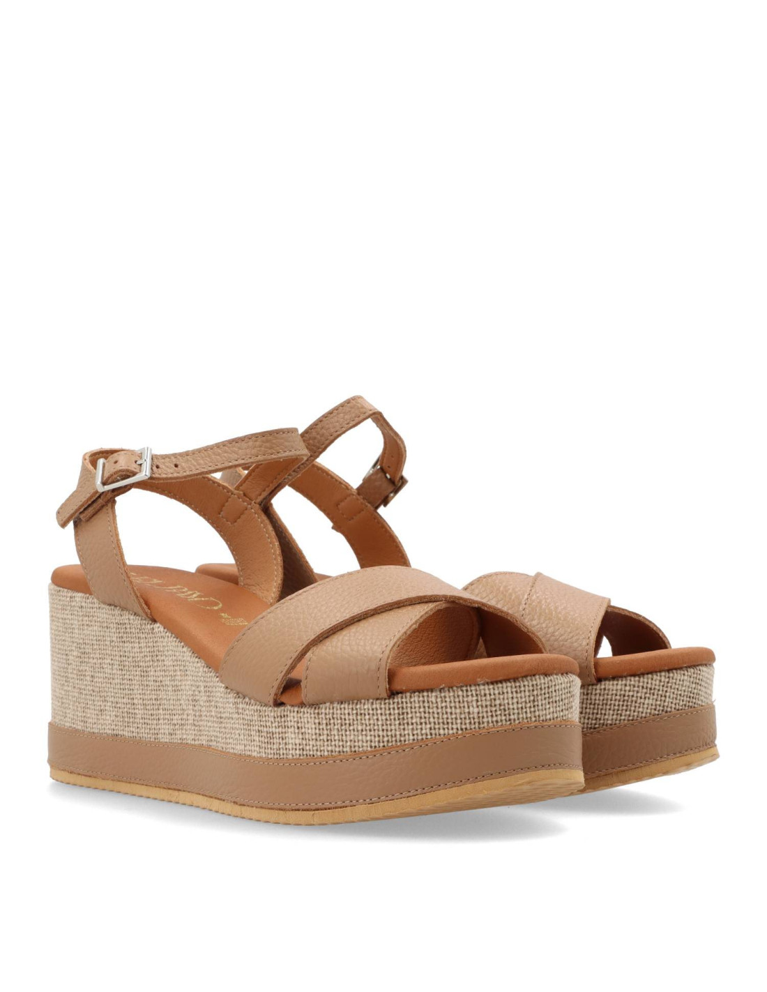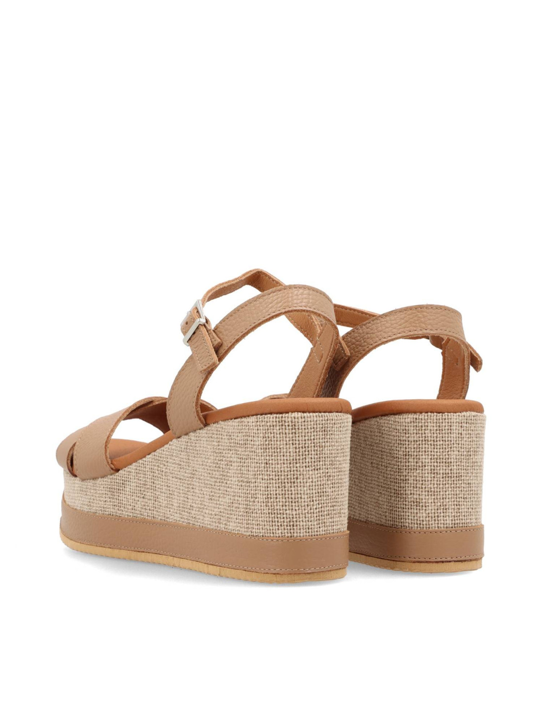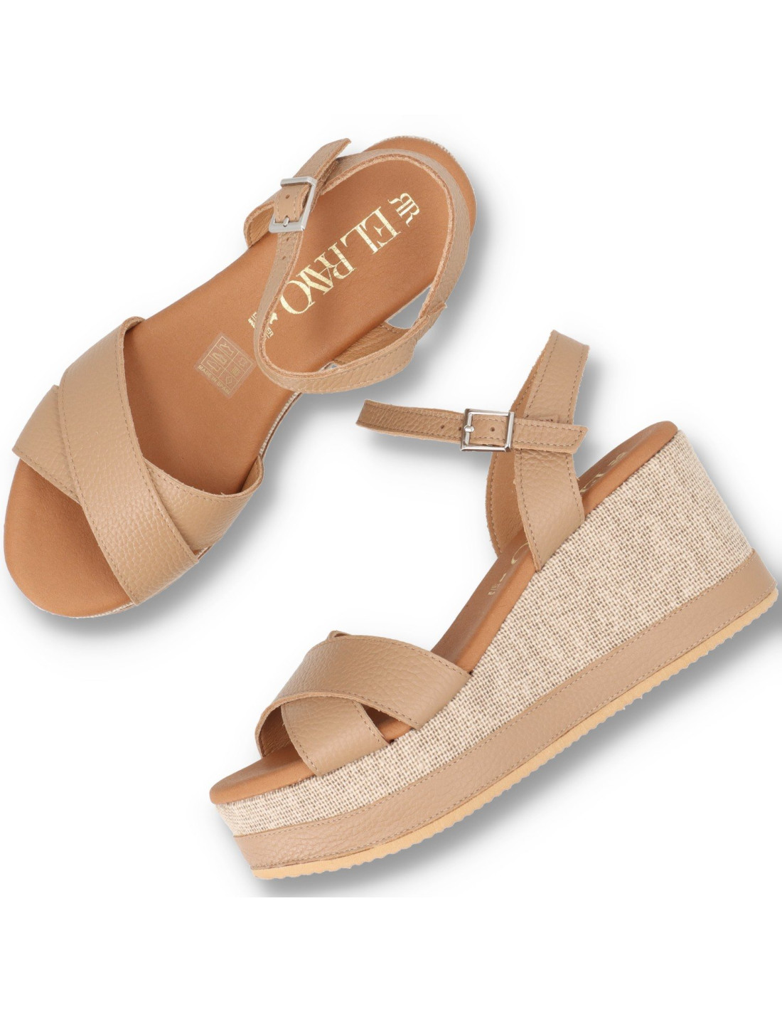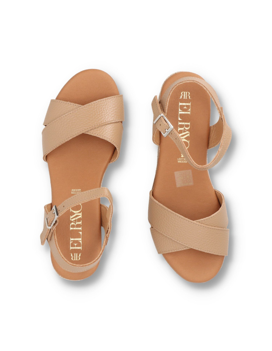 Sandalias con cuña para mujer 5736 de RAYO TRENDS. De piel 100%vacuno y planta de gel que aporta un plus de comodidad. Talón pulsera con hebilla ajustable, plataforma de unos 8cm de altura y 3cm en la parte delantera, forrada en tejido saco.HECHO EN ESPAÑA