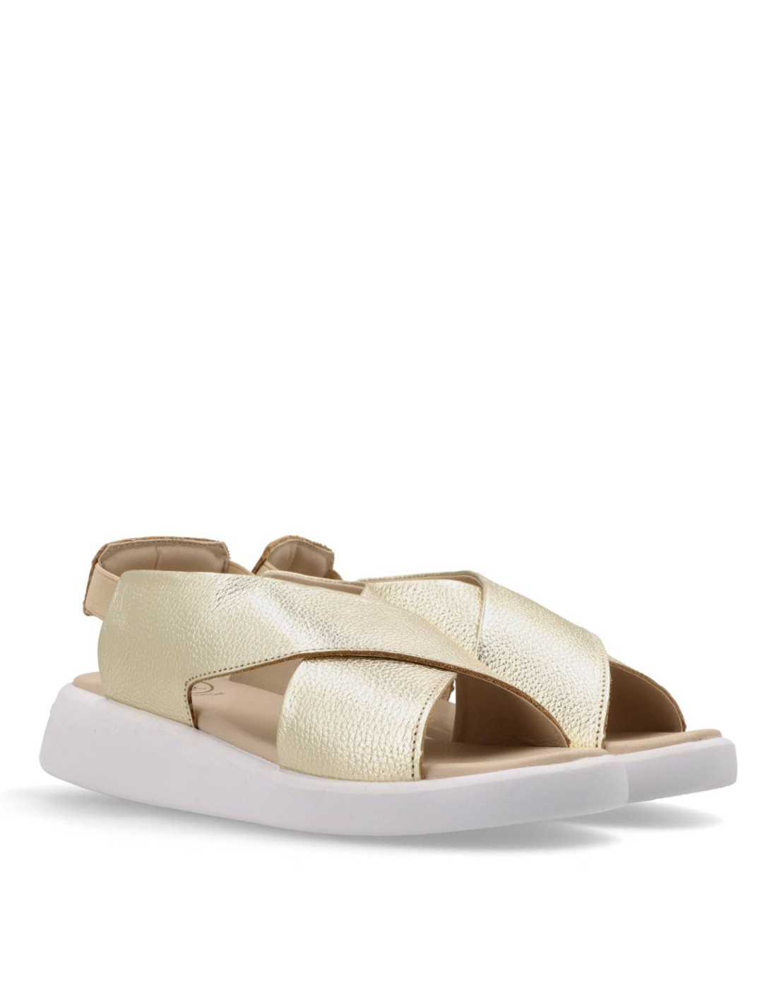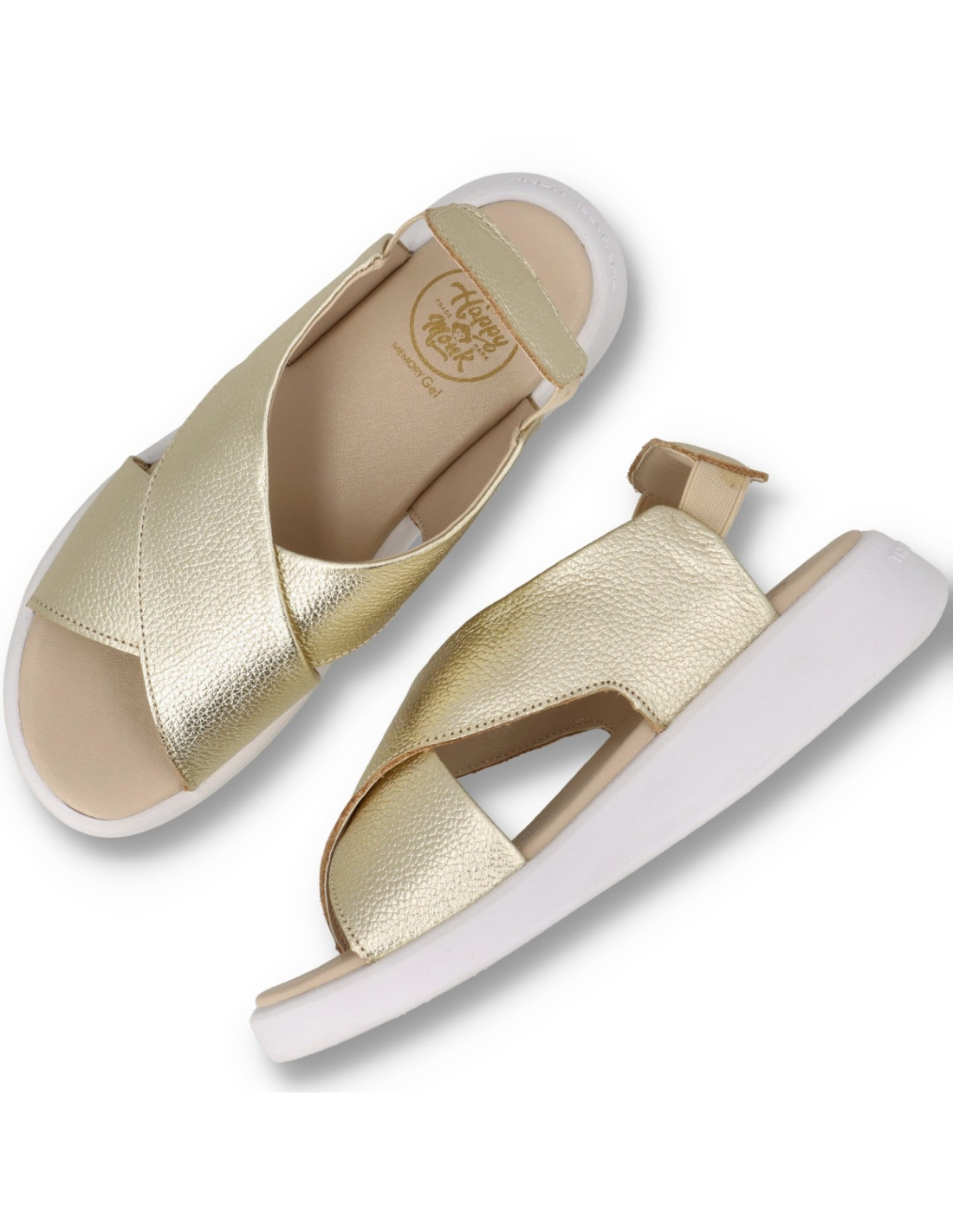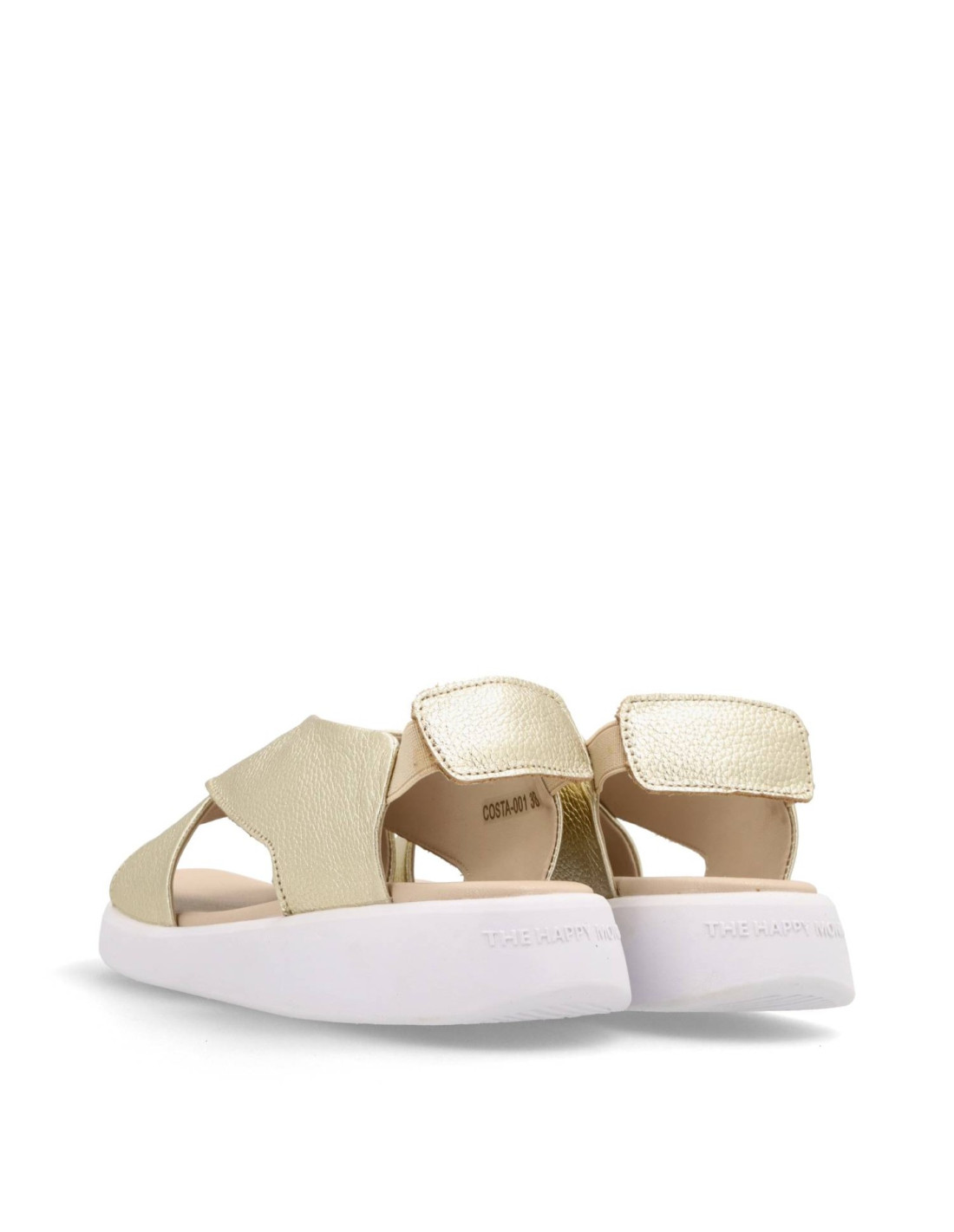 Sandalias con cuña para mujer COSTA-001 de THE HAPPY MONK. De piel 100%vacuno y planta memory gel para una pisada más confortable. Piso super ligero con cuña de unos 2,5cm de altura. Talón elástico para una mejor sujeción.