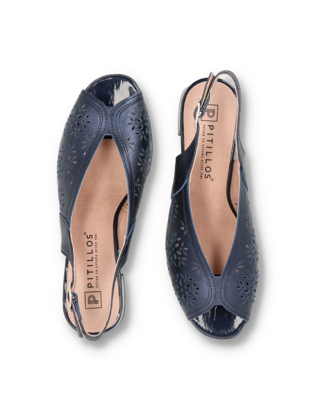 Sandalias de tacón para mujere 10532 de PITILLOS. Sandalias de piel 100%vacuno con detalles calados, planta interior acolchada. Destalonada con cierre de hebilla ajustable, tacón metálico de unos 5cm de altura. suela de goma flexible. HECHO EN ESPAÑA