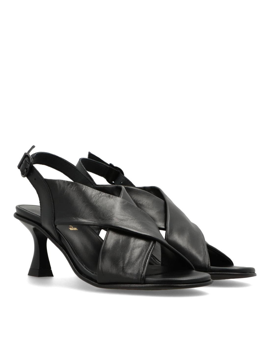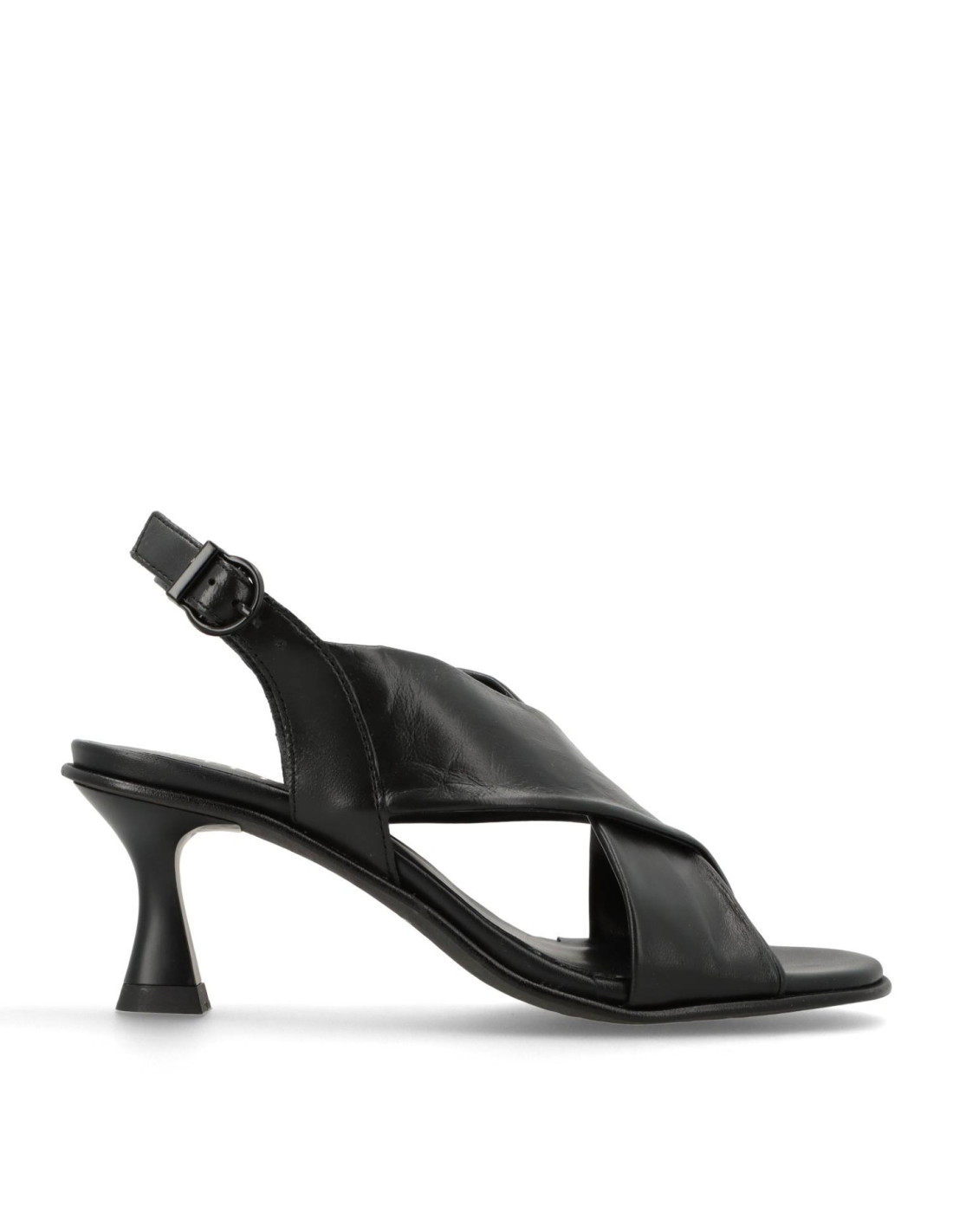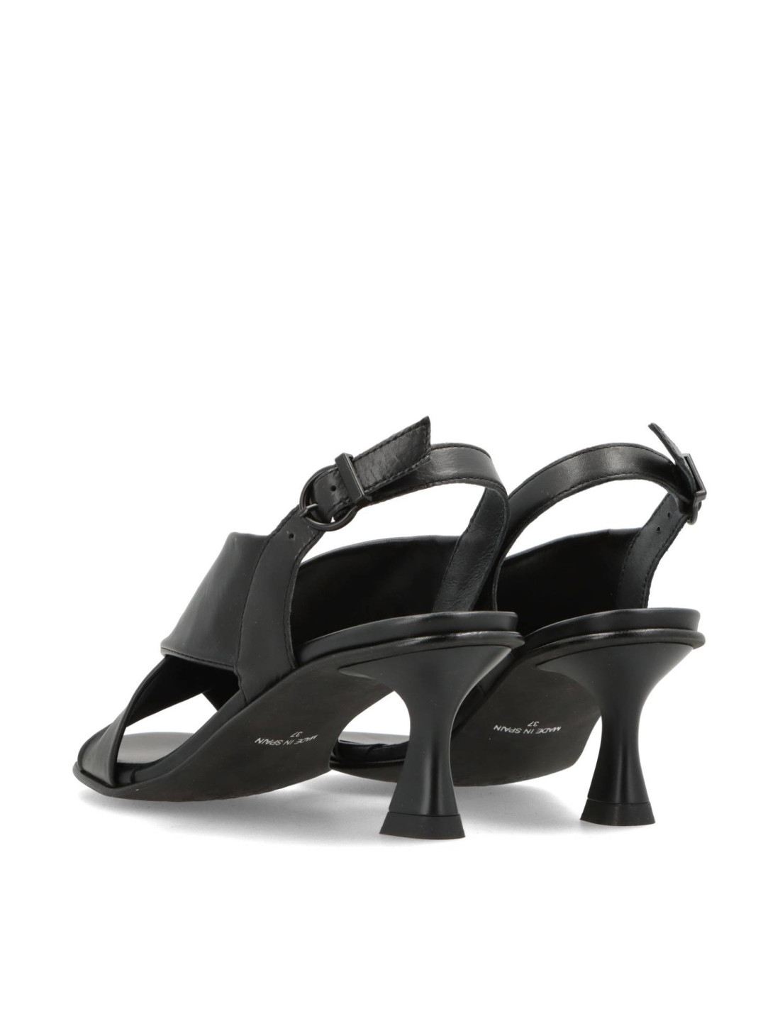 Sandalias de tacón para mujer 45451 de EL RAYO TRENDS. Confeccionada toda en piel 100%vacuno en distintas texturas en color Negro y planta acolchada con espuma de doble densidad para una pisada más comoda. Talón con cierre de hebilla ajustable, el tacón de carrete lacado al tono y de unos 6cm de altura y suela antideslizante flexible. HECHO EN ESPAÑA