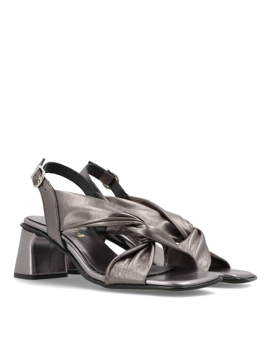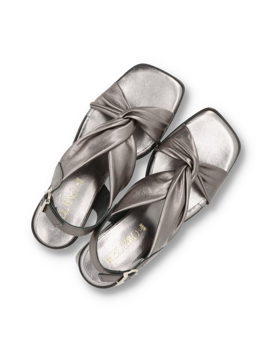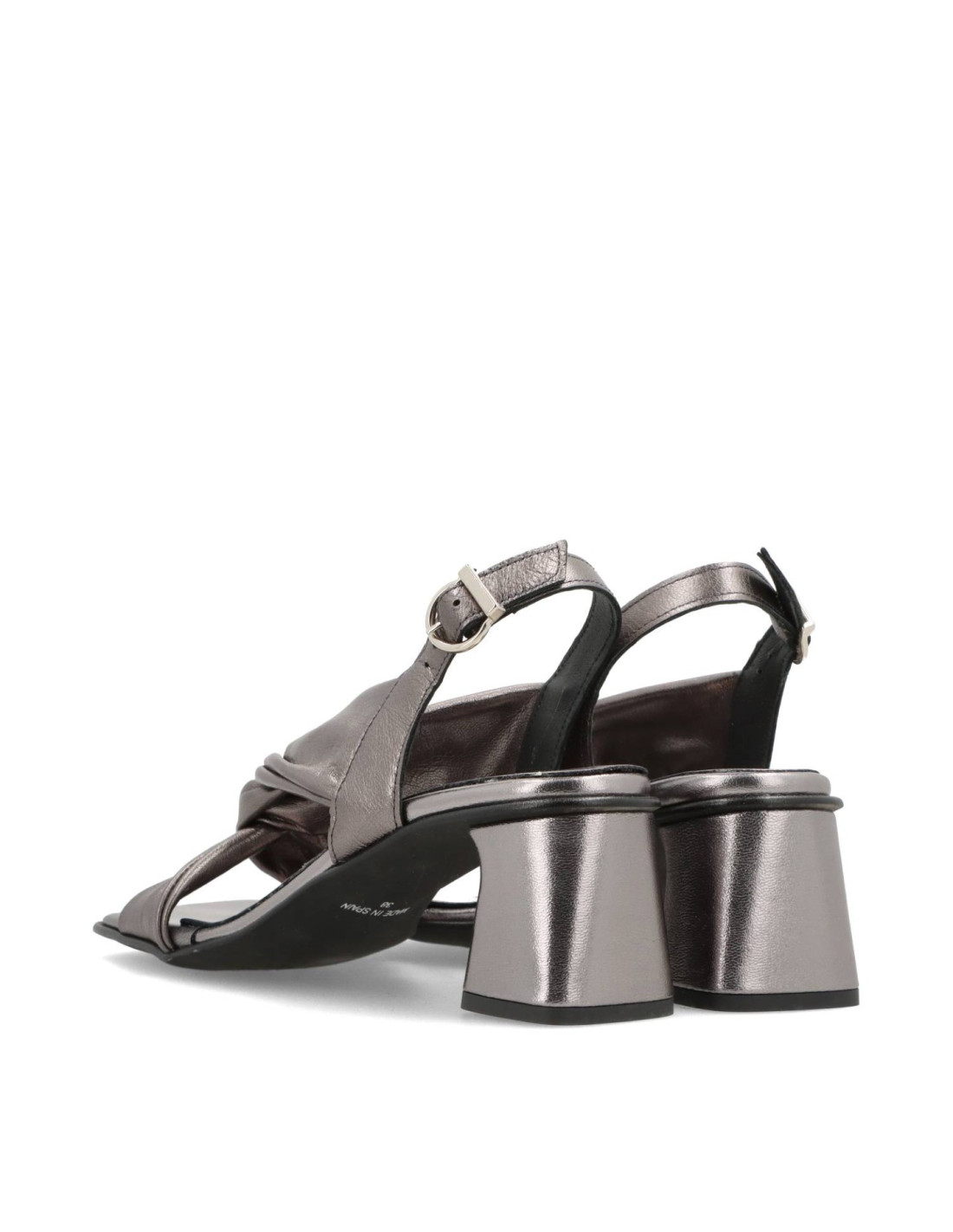 Sandalia de tacón para mujer 65653 de EL RAYO TRENDS. Sandalia de piel 100%vacuno acabado metalizado Plomo, plantilla de doble densidad que garantiza una pisada cómoda y confortable. Talón ajustable con hebilla, tacón ancho y cómodo lacado al tono con una altura de unos 5cm. HECHO EN ESPAÑA.